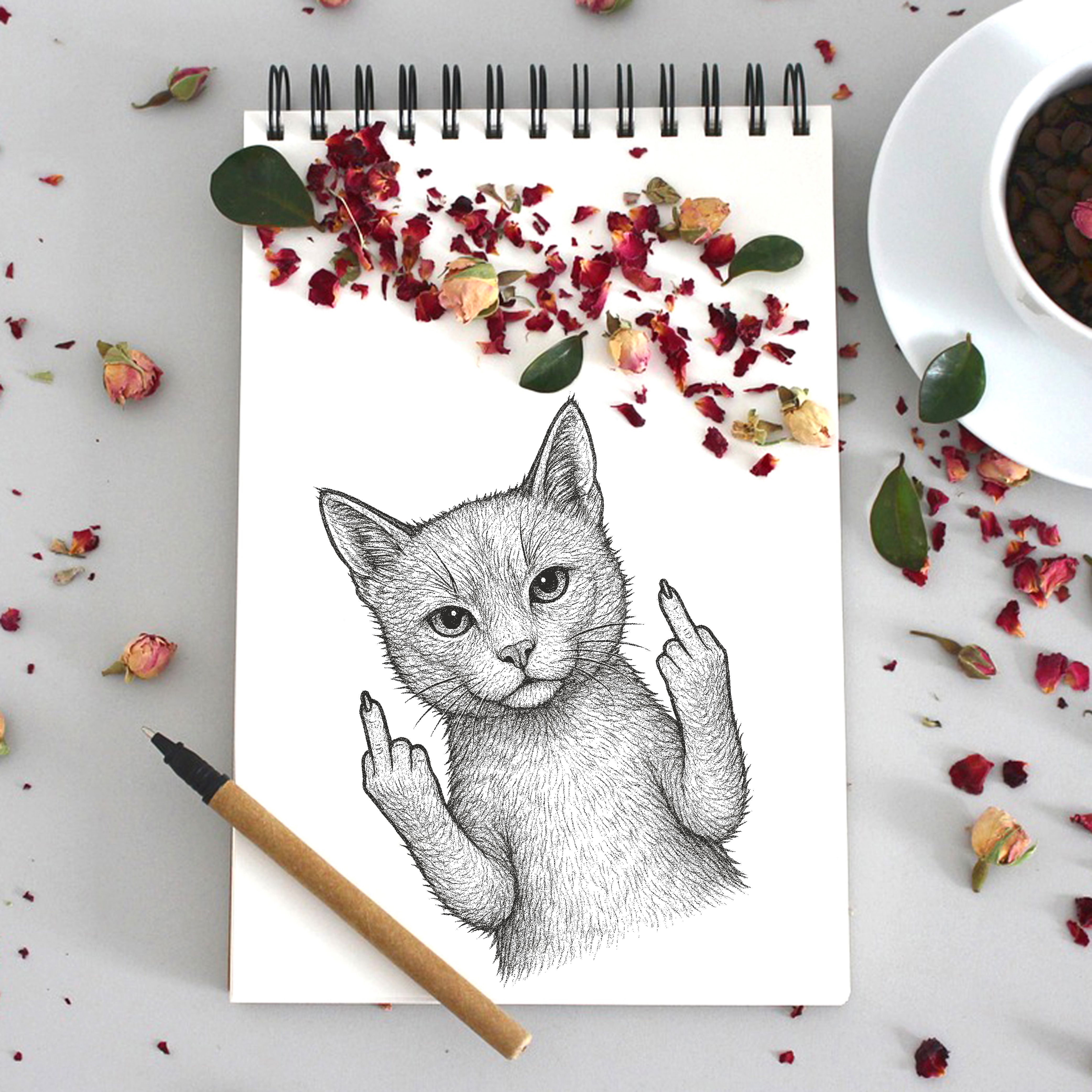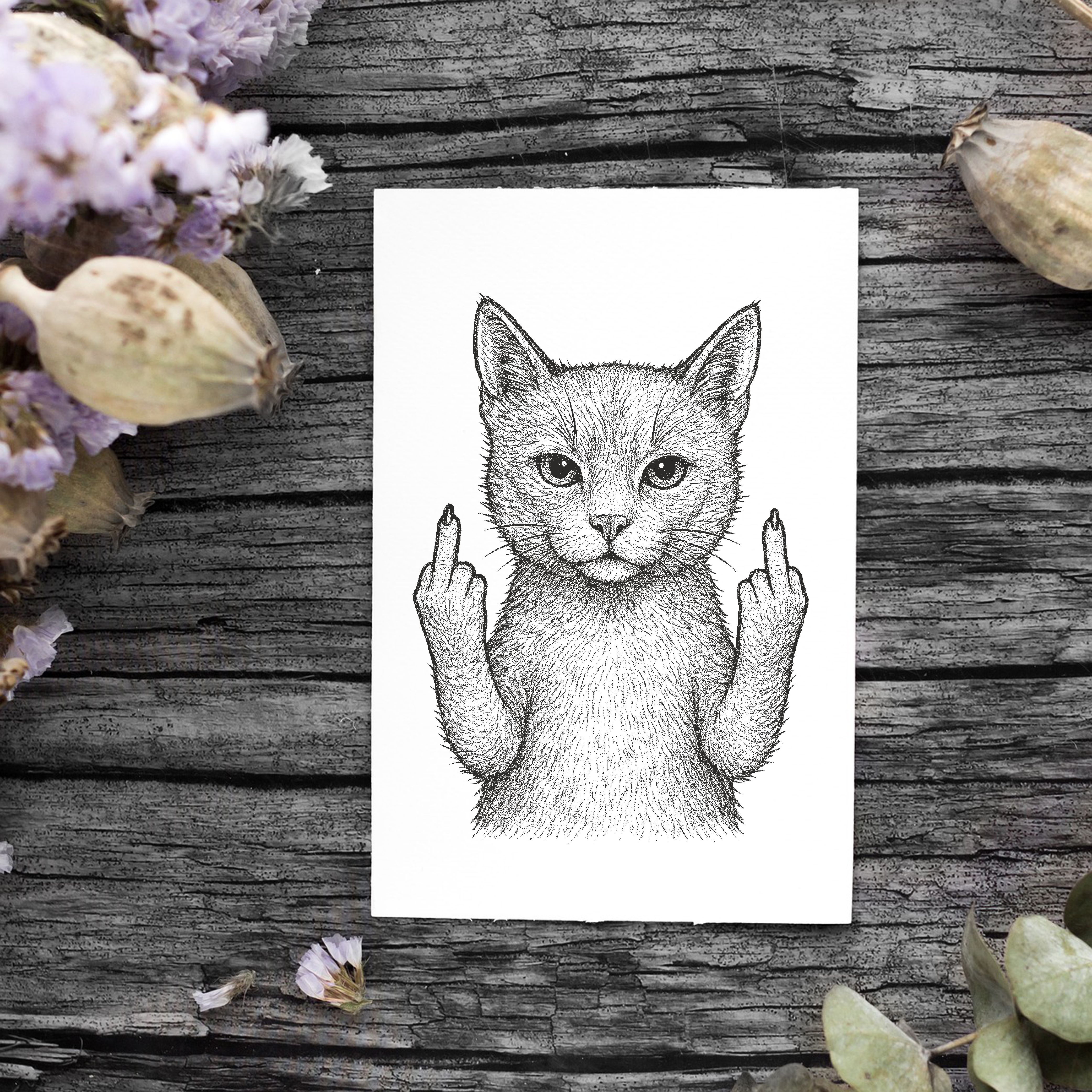 Motivstempel Tierstempel Katze Stinkefinger Mittelfinger Stempel lustig - ca. 40 x 50 mm