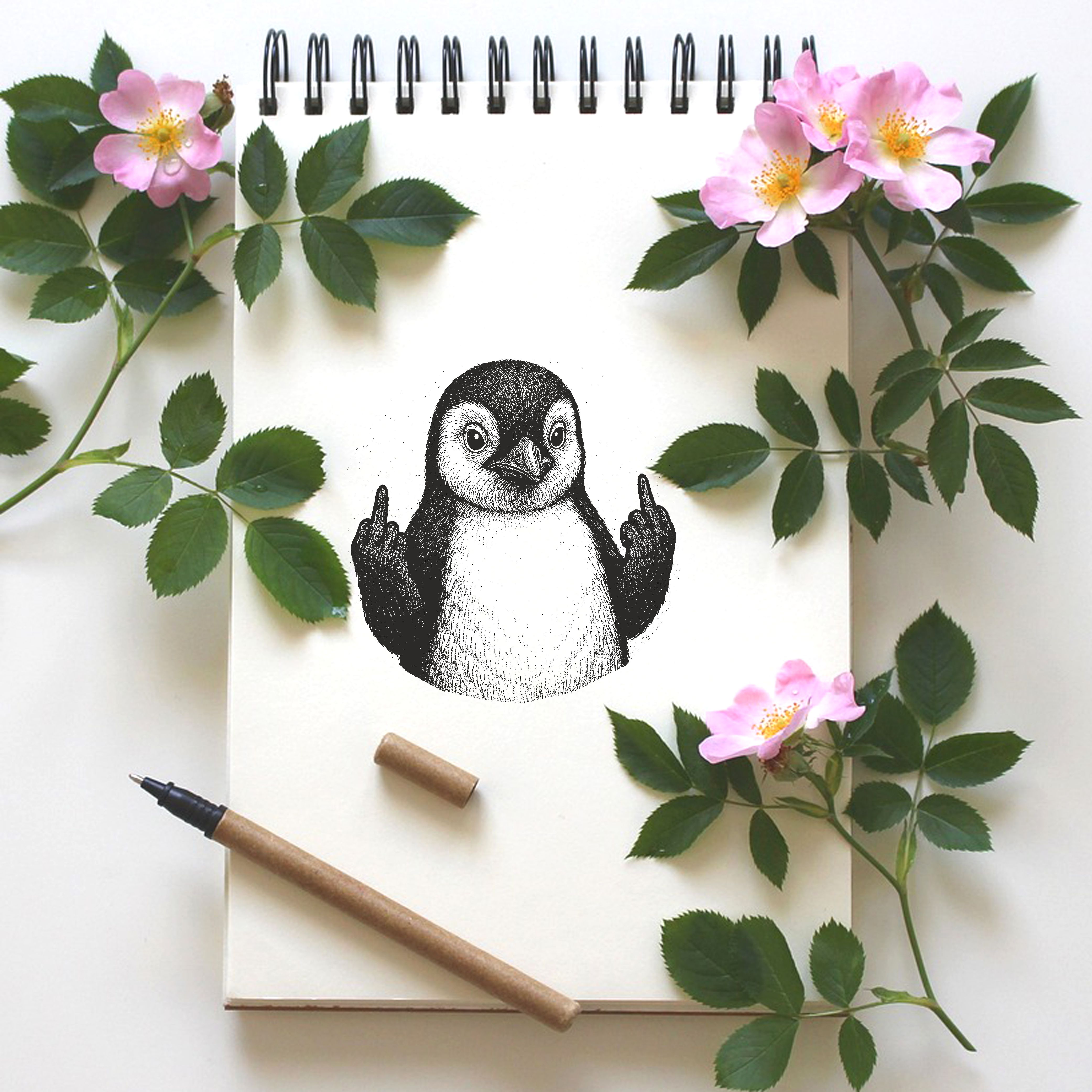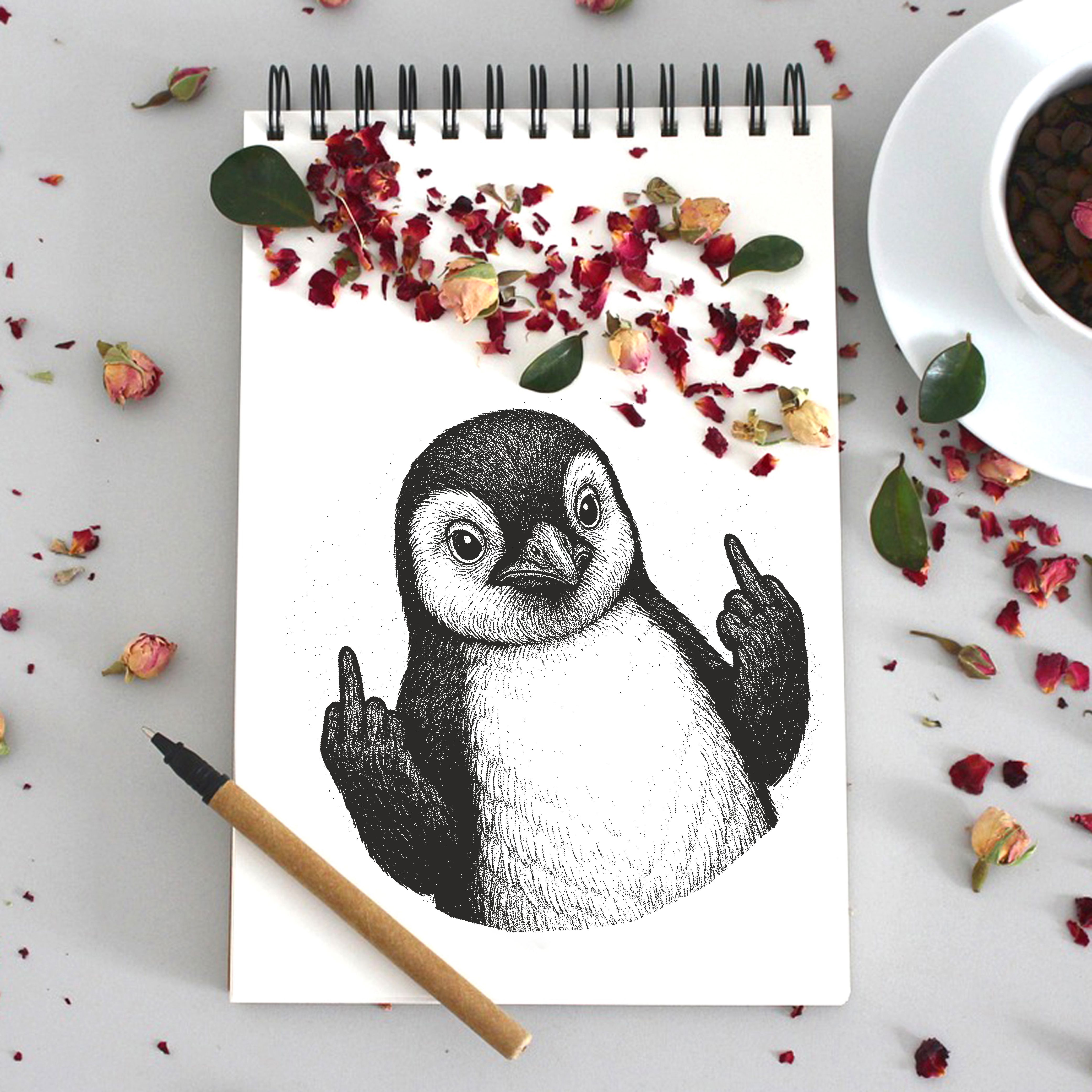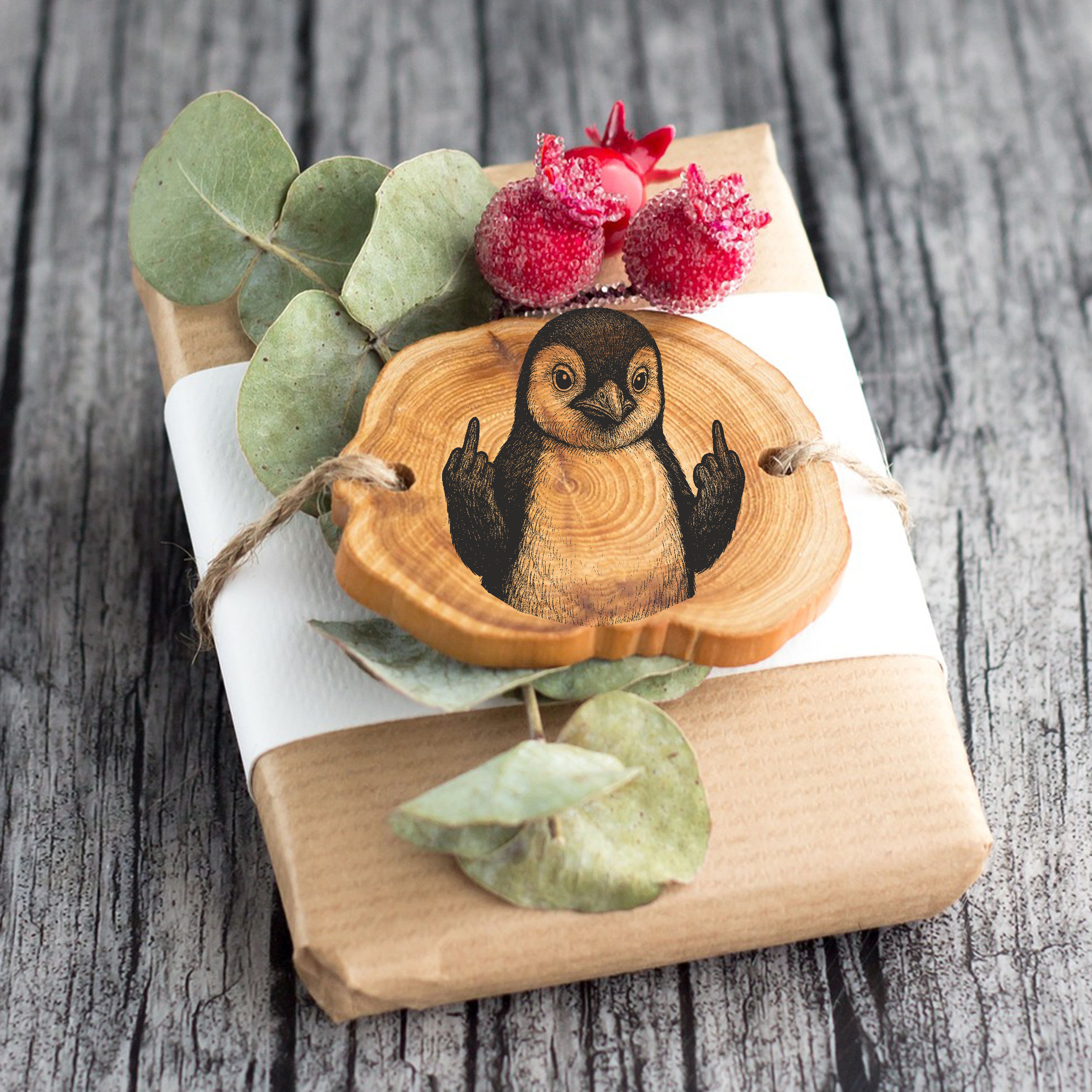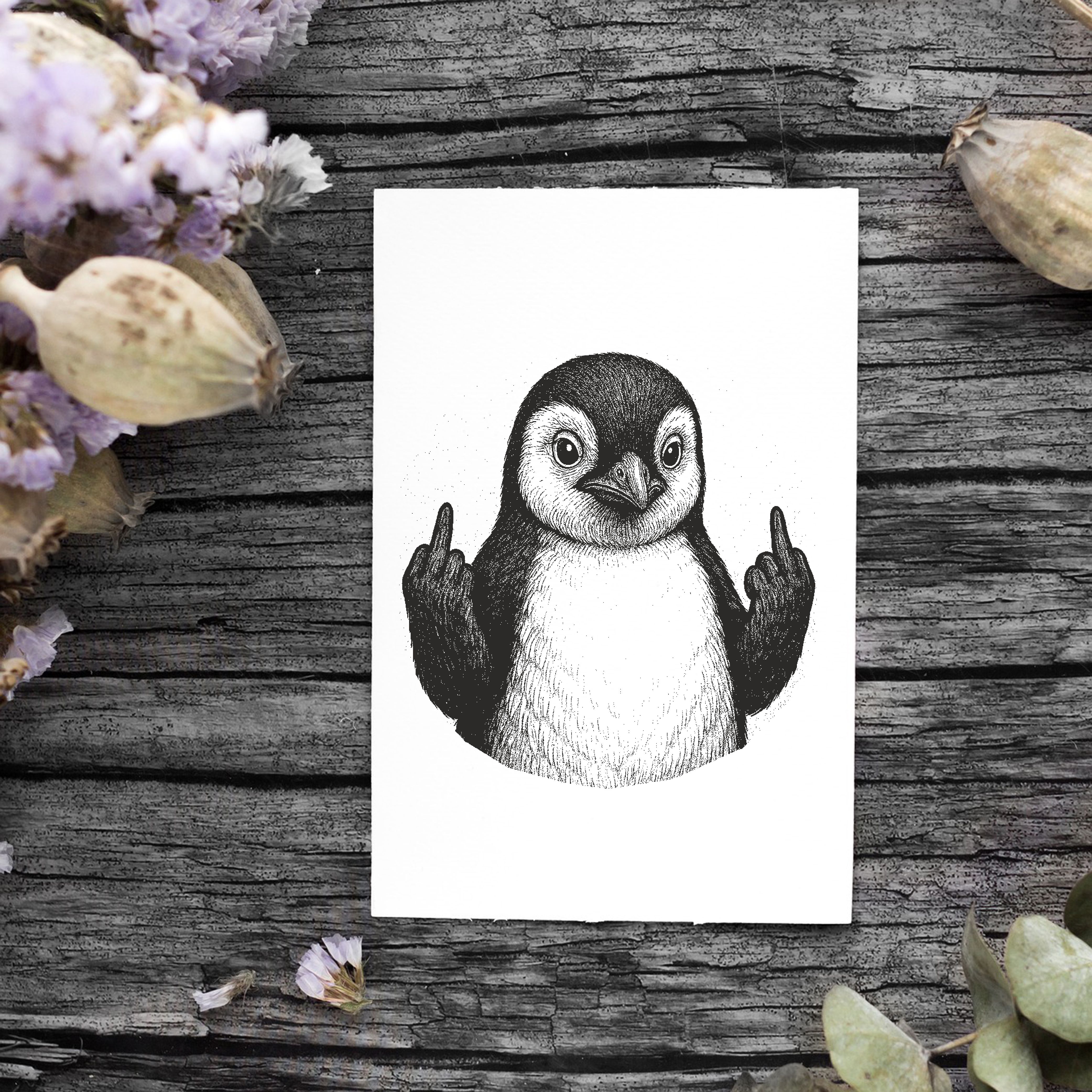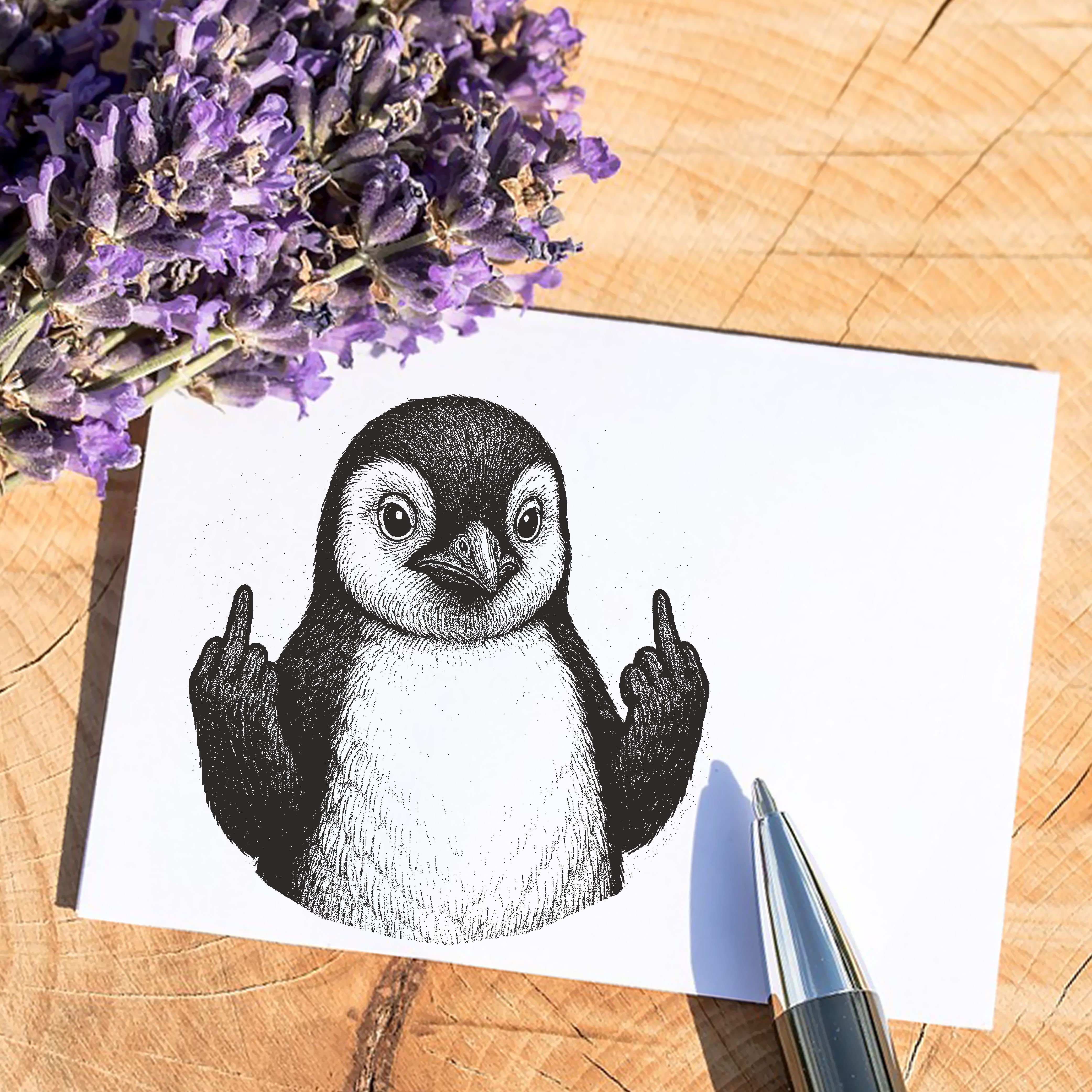 Motivstempel Tierstempel Pinguin Stinkefinger Mittelfinger Stempel lustig - ca. 40 x 50 mm