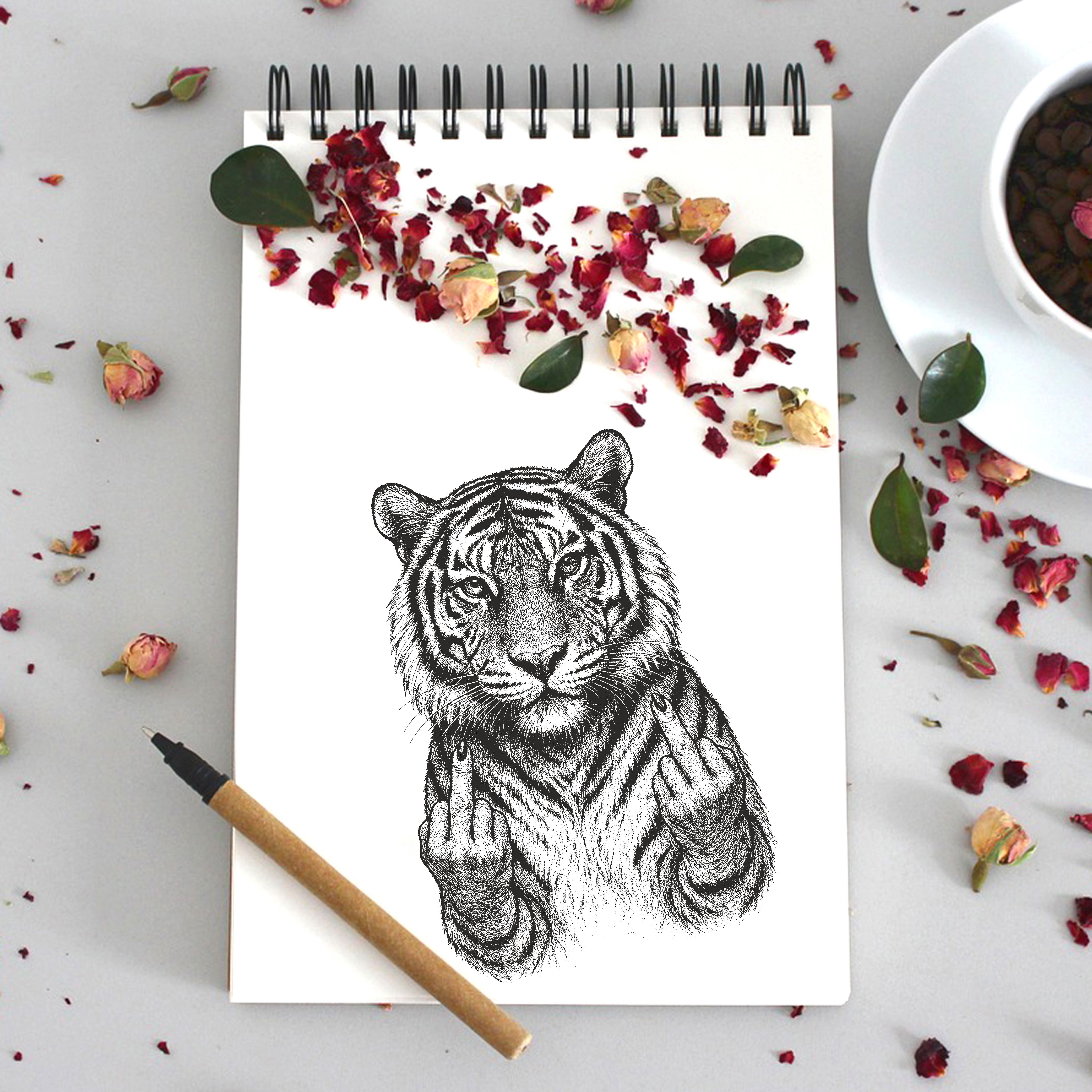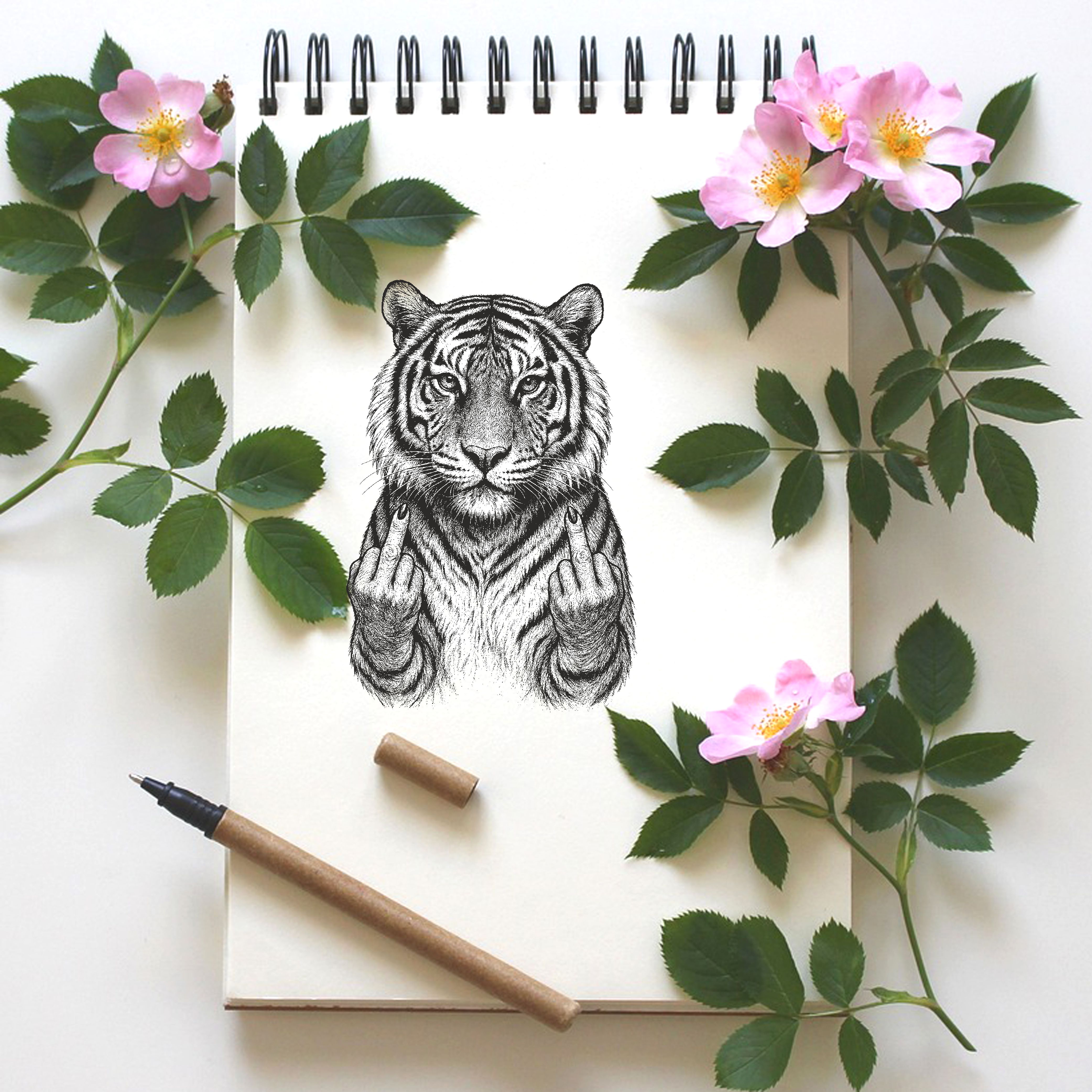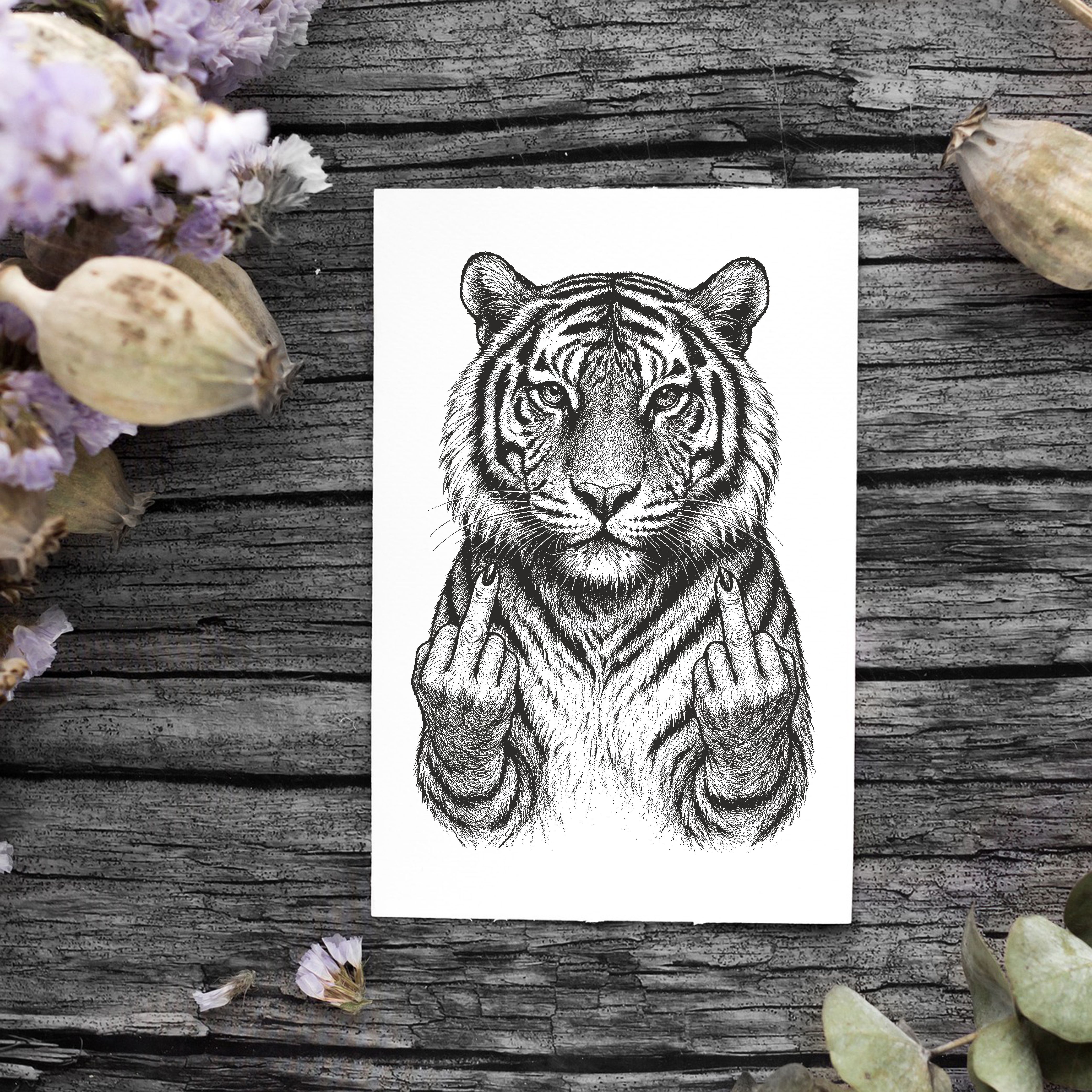 Motivstempel Tierstempel Tiger Stinkefinger Mittelfinger Stempel lustig - ca. 40 x 50 mm