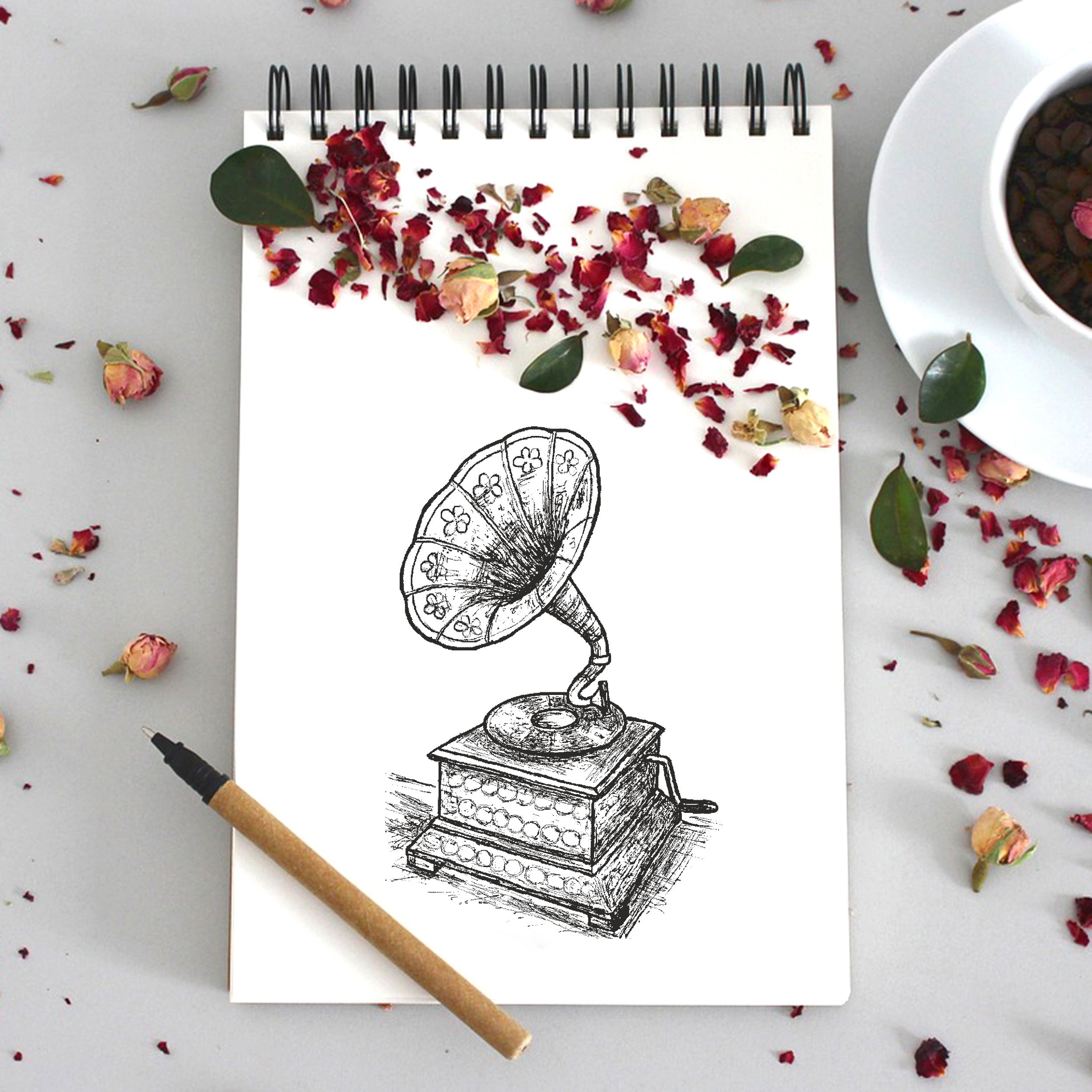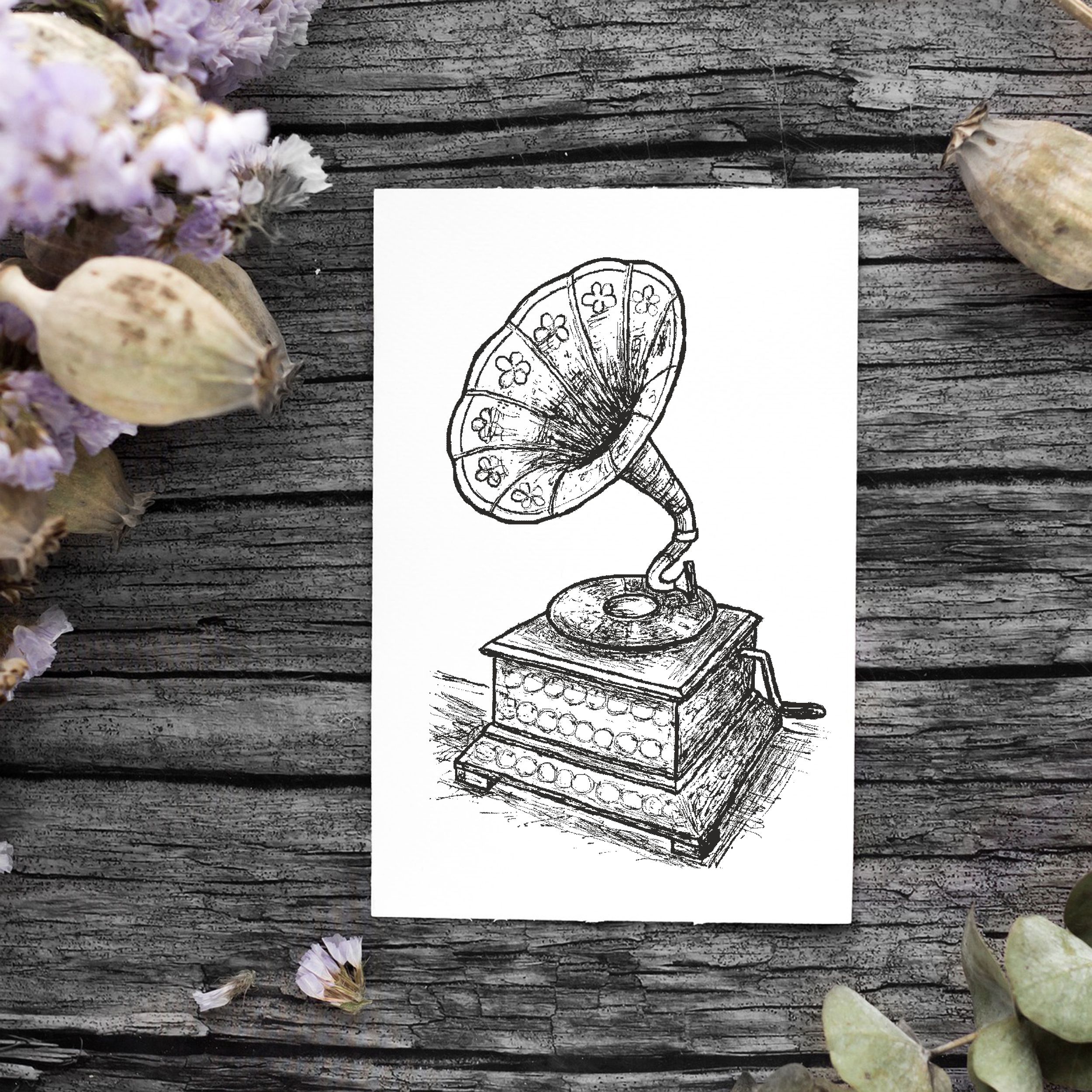 Motivstempel Vintage Grammophon - Stempel Holzstempel 38 x 58 mm