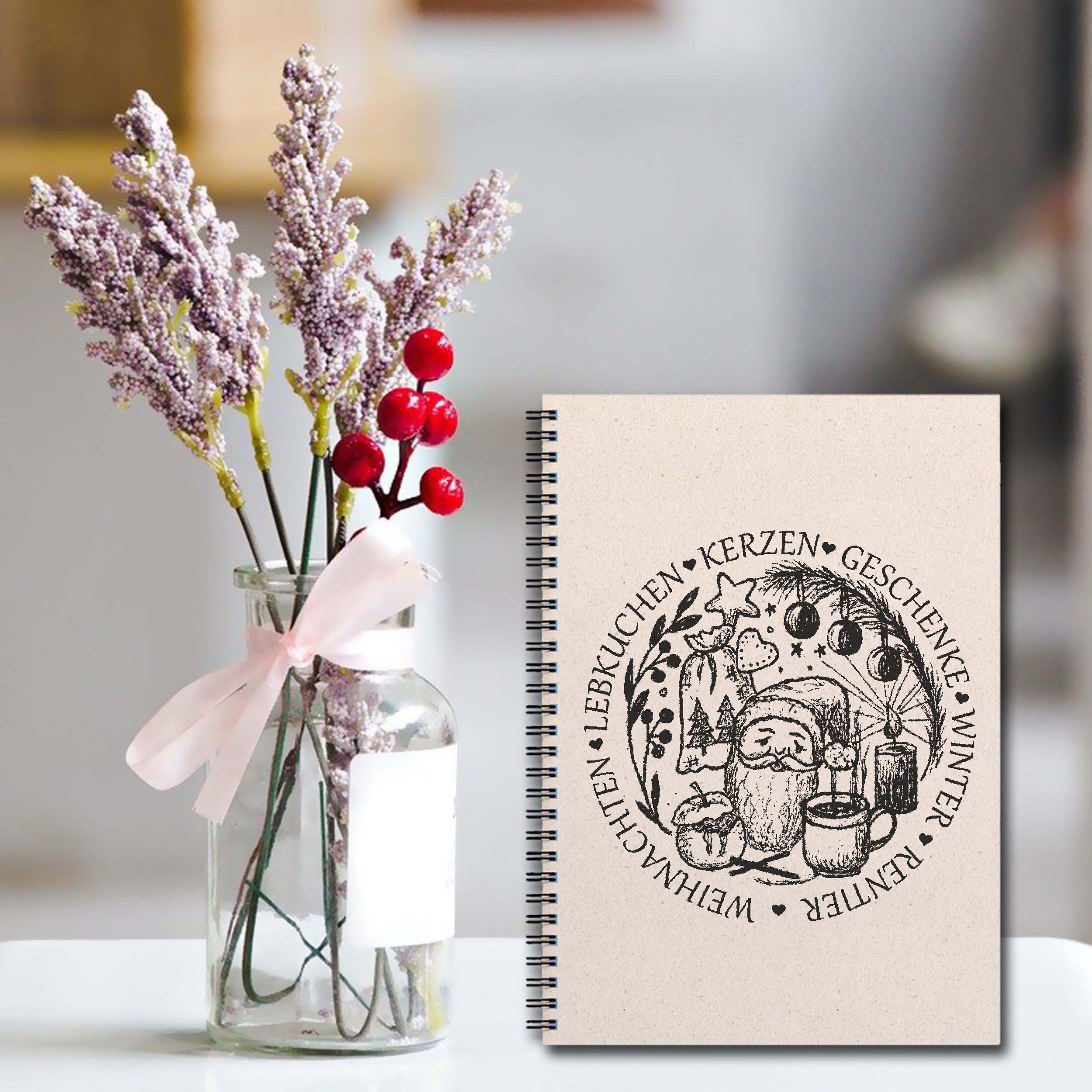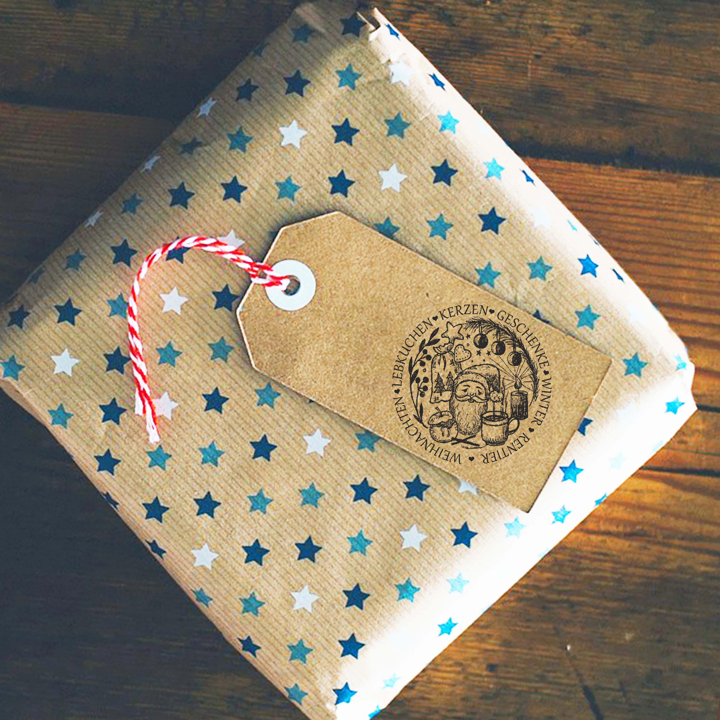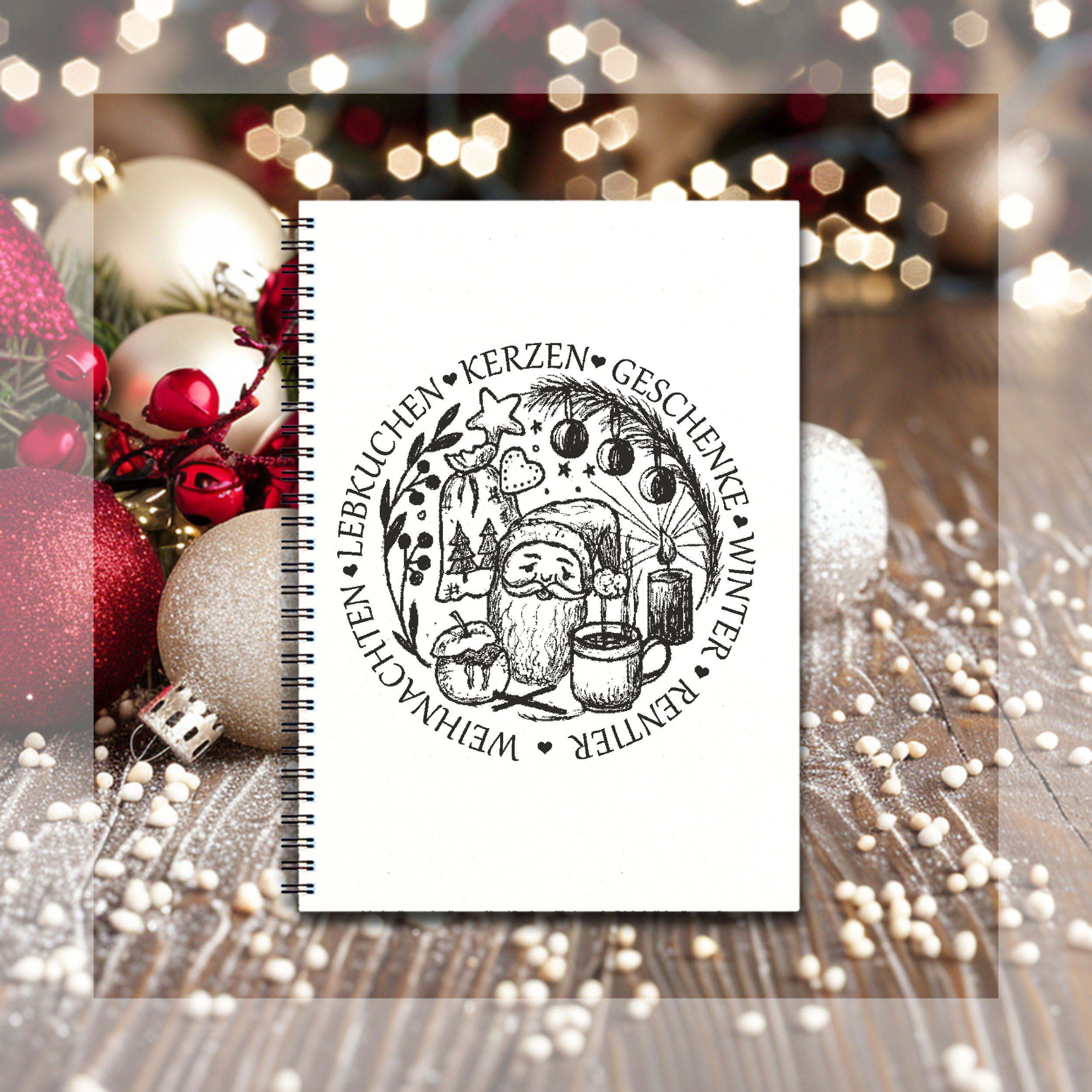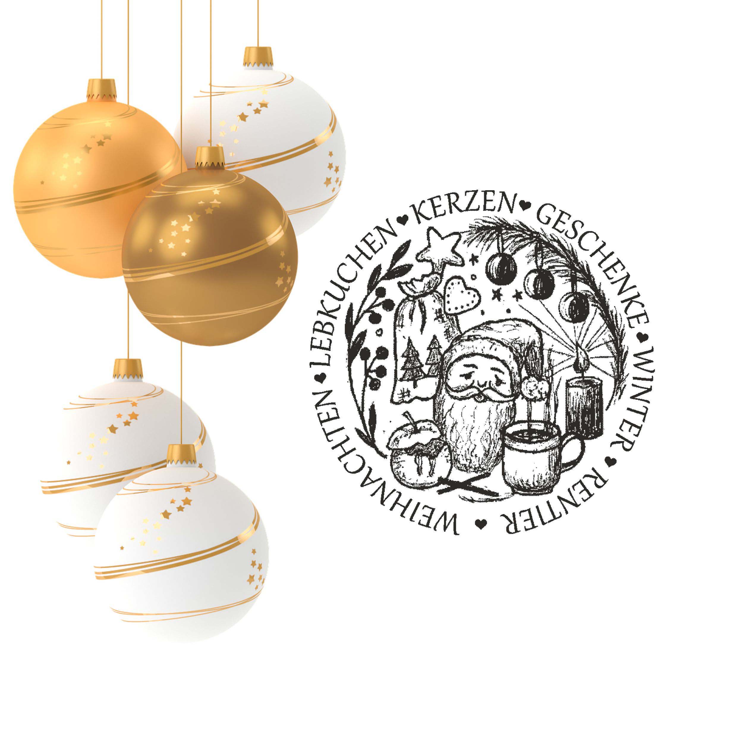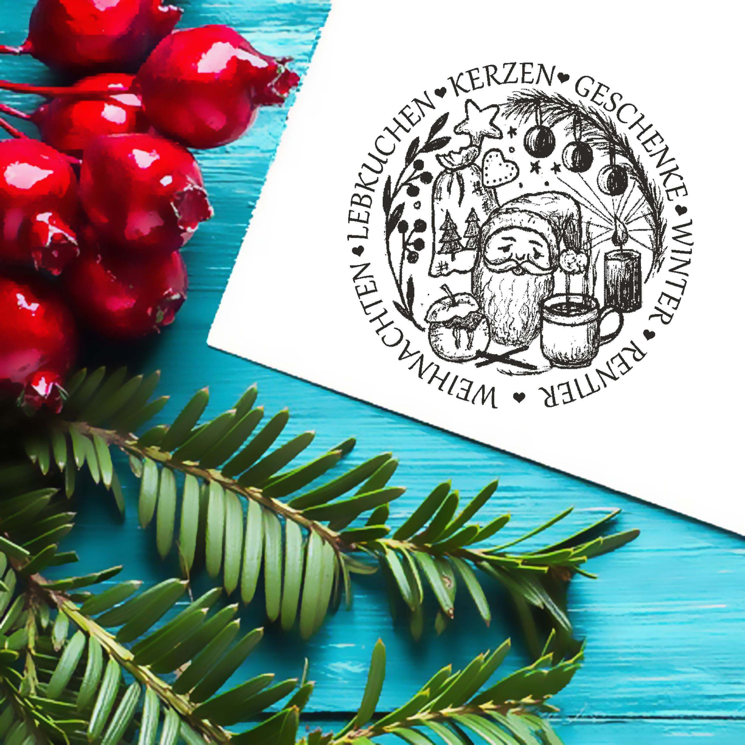 Motivstempel Weihnachten Lebkuchen Kerzen Winter Geschenke - Weihnachtsmann Stempel Holzstempel Ø 68 mm