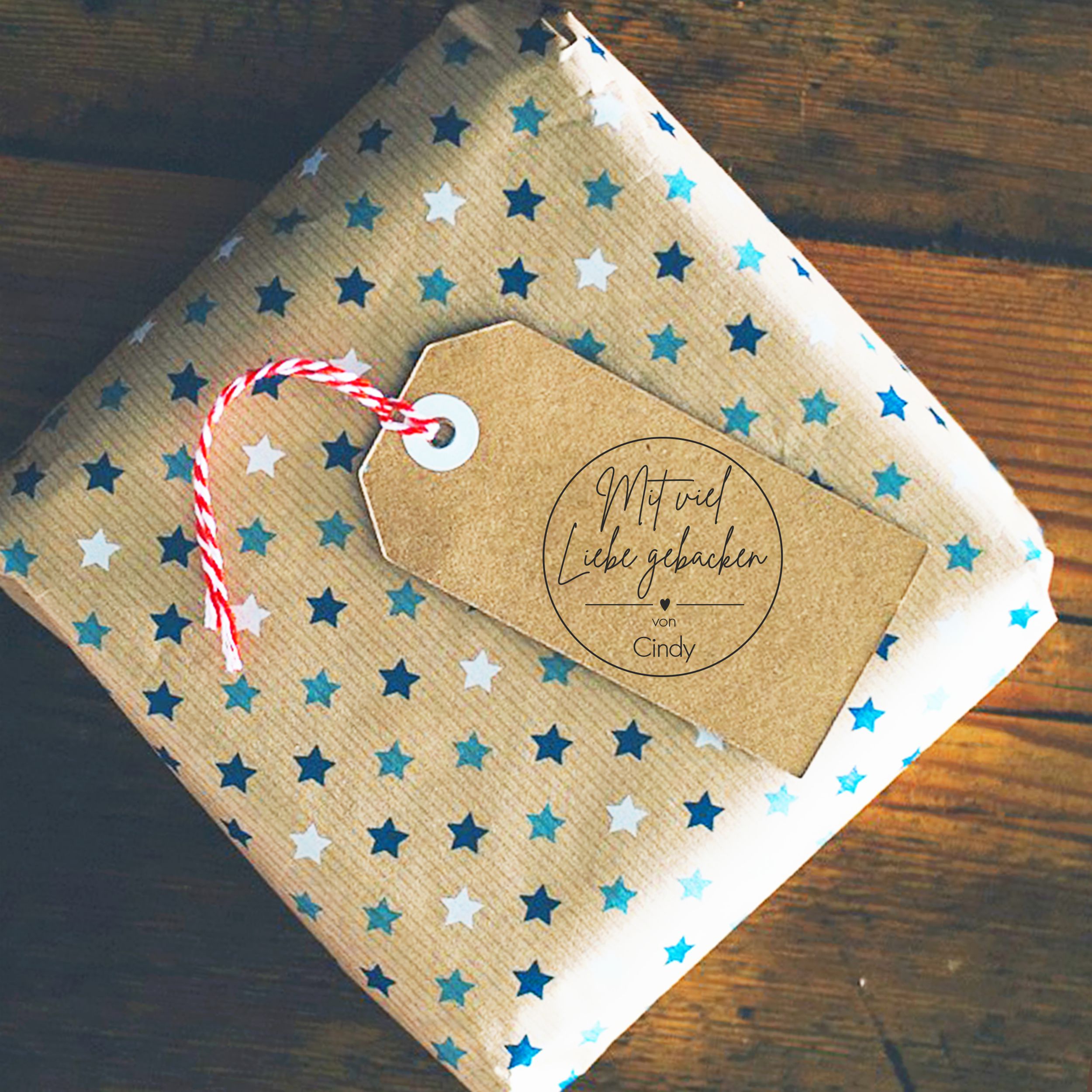 Motivstempel personalisiert Mit viel Liebe gebacken von - personalisierter Stempel mit Name Holzstempel Ø 48 mm