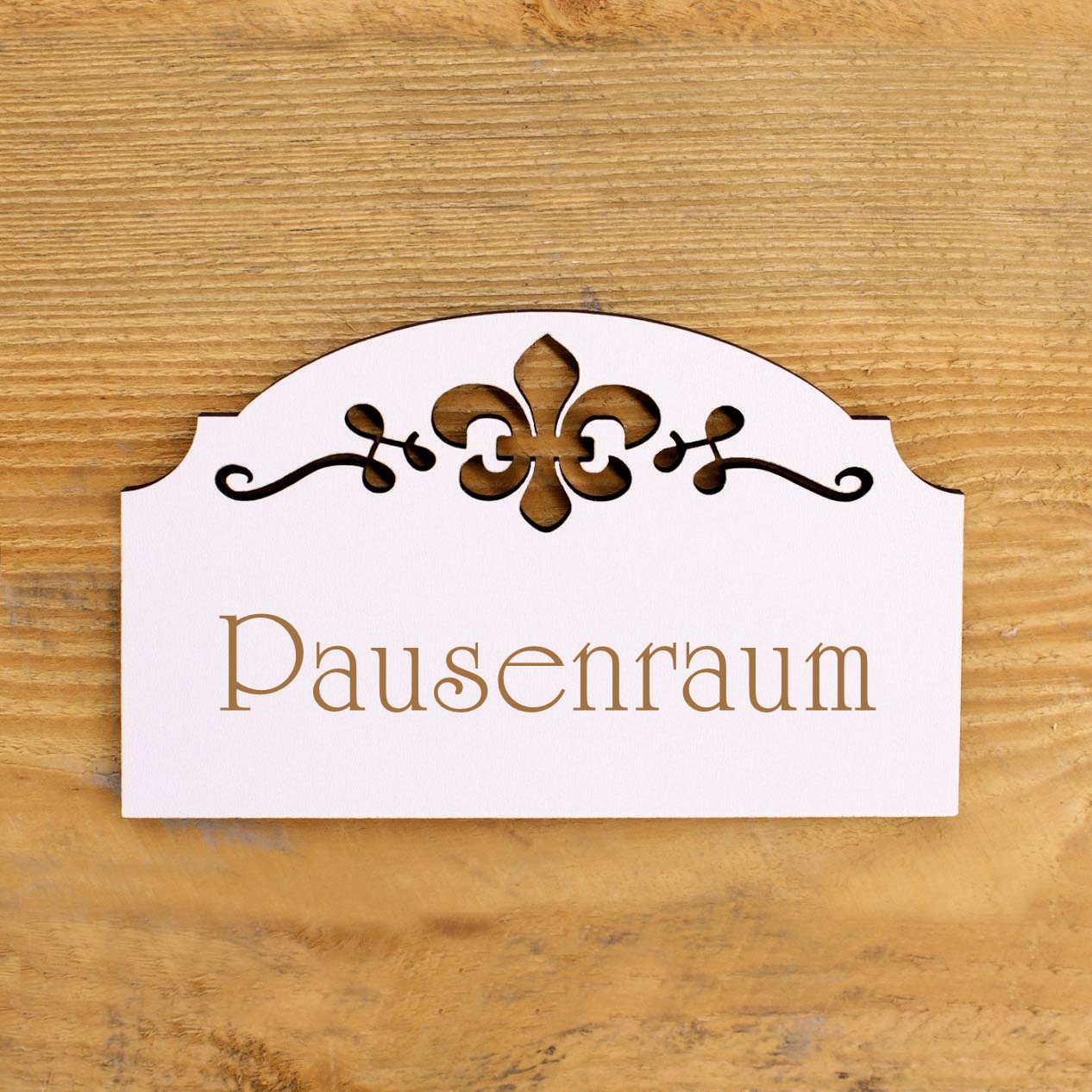 Pausenraum Türschild Schild Holz Gravur Ornament selbstklebend Deko Pause 15,5 x 9,5 cm