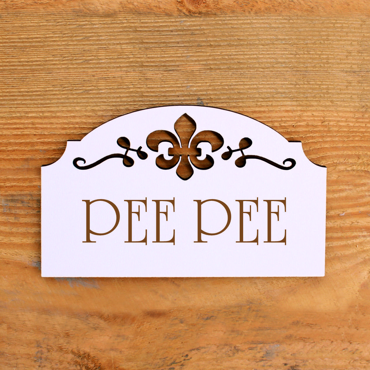 Sie sind auf der Suche nach einer Deko Idee für Ihre Türen im Haus oder einer Orientierungshilfe bzw. Hinweisschildern im Hotel oder der Firma? Unser selbstklebendes „Pee Pee“ Toiletten-Türschild mit Ornamenten ist dafür eine ideale Lösung. Unsere gravierten Vintage Türschilder aus Holz mit Schriftzug eignen sich ebenso als Wand Deko oder Zimmer Deko.