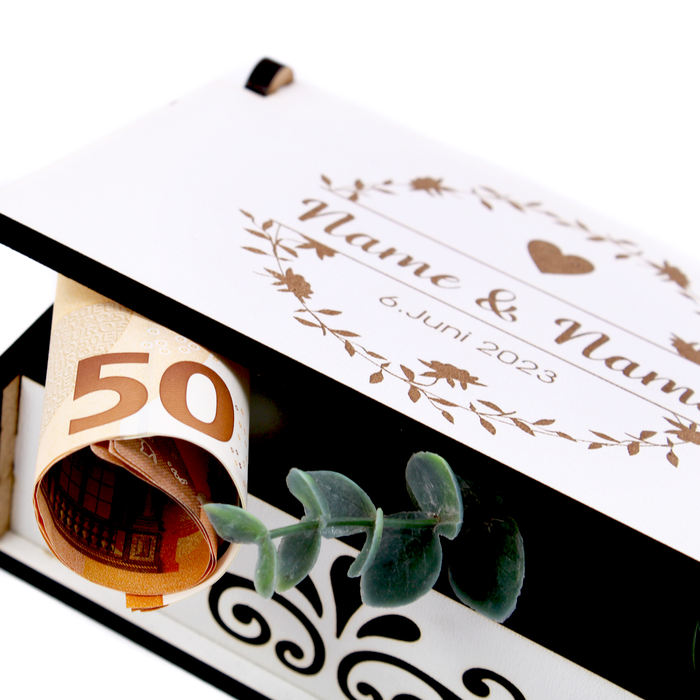 Hochwertiges HDF-Material: Stabil, langlebig & fein verarbeitet. Maße: 15 x 10 x 5 cm - perfekt zum Befüllen mit Geld, Gutscheinen, Schmuck oder kleinen Geschenken.