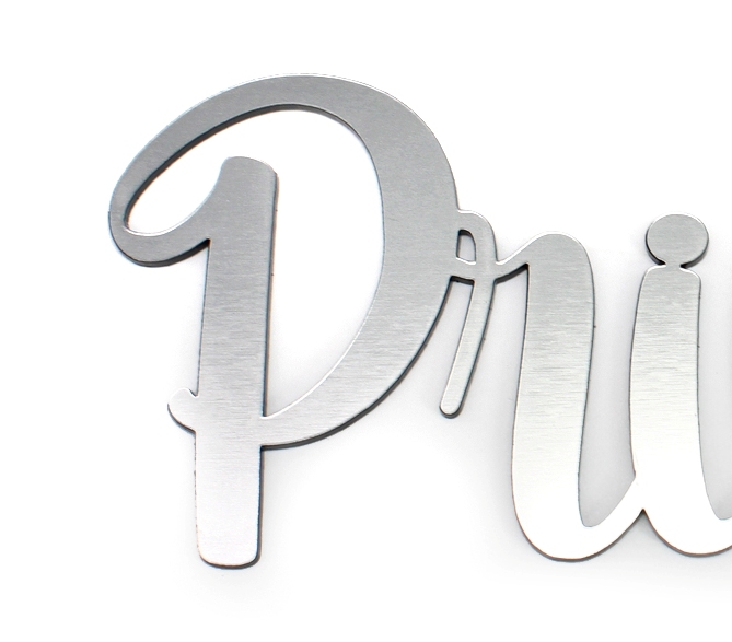 Der Schriftzug wird mittels Lasertechnik ausgeschnitten und es entstehen schöne, saubere und glatte Kanten sowie Ränder.