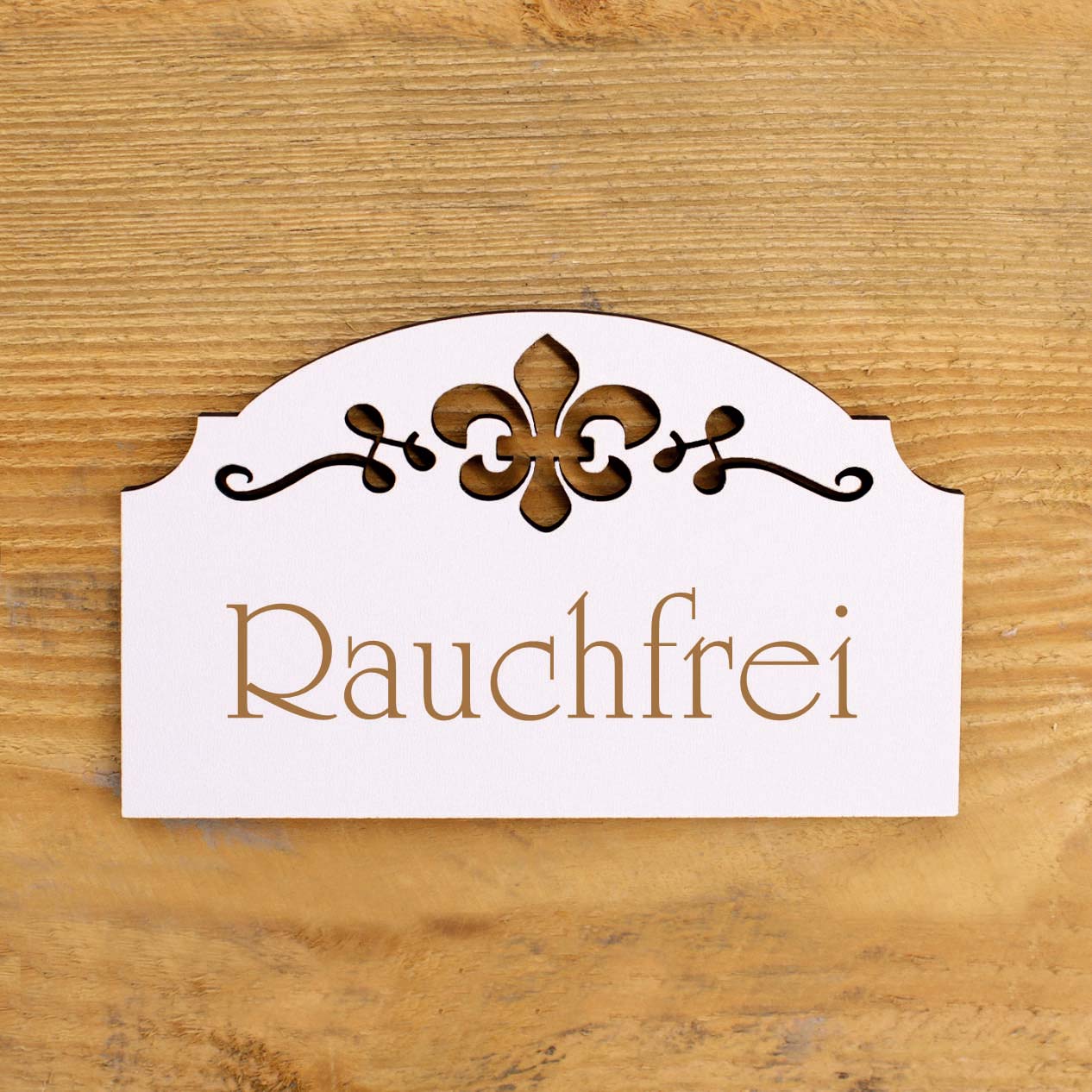 Rauchfrei Türschild Schild Holz Gravur Ornamente selbstklebend Türdeko 15,5 x 9,5 cm