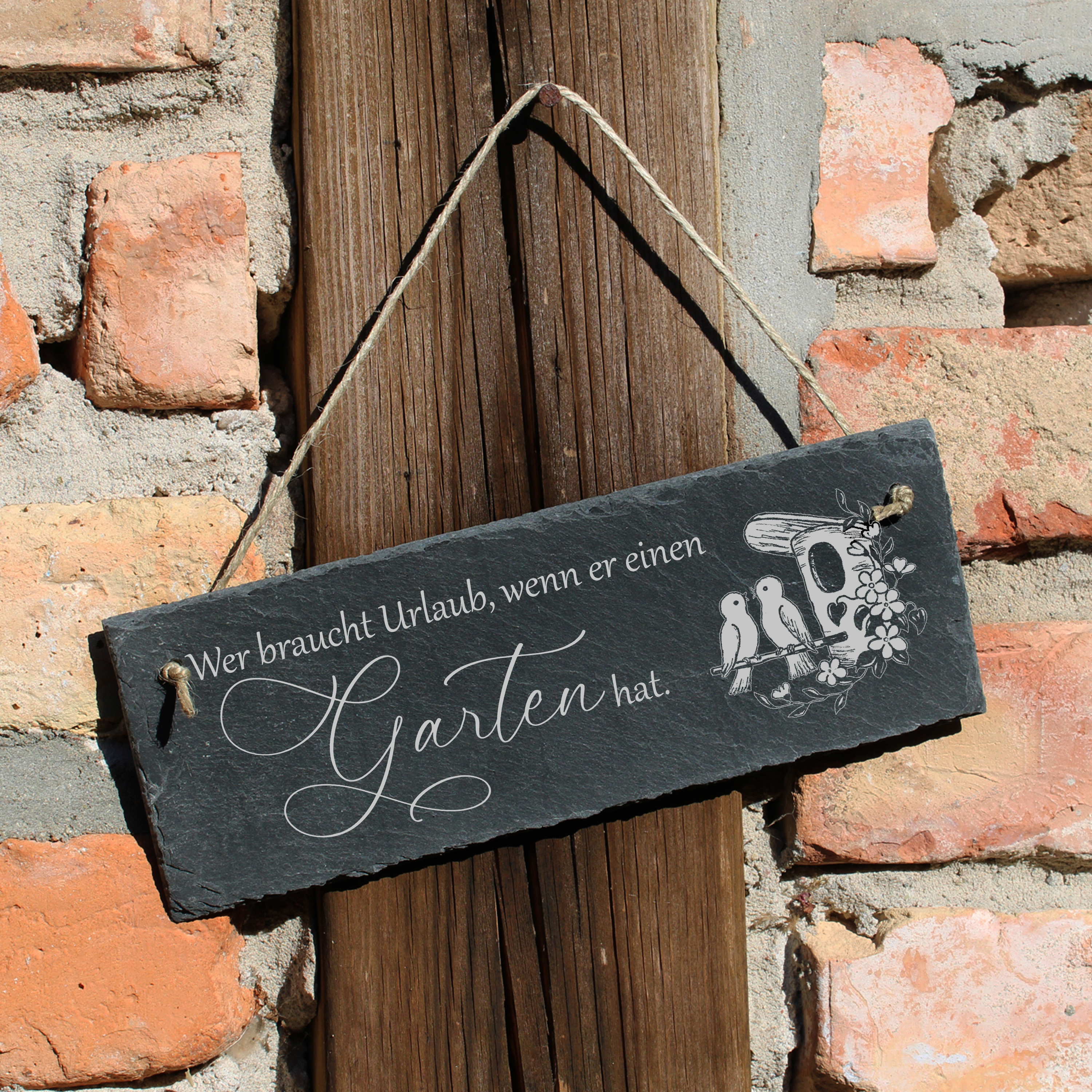 Humorvolles Statement für echte Gartenfans: Dieses hochwertige Schieferschild bringt es auf den Punkt: „Wer braucht Urlaub, wenn er einen Garten hat“. Perfekt für alle, die ihren Garten als persönlichen Rückzugsort und Lieblingsplatz sehen.