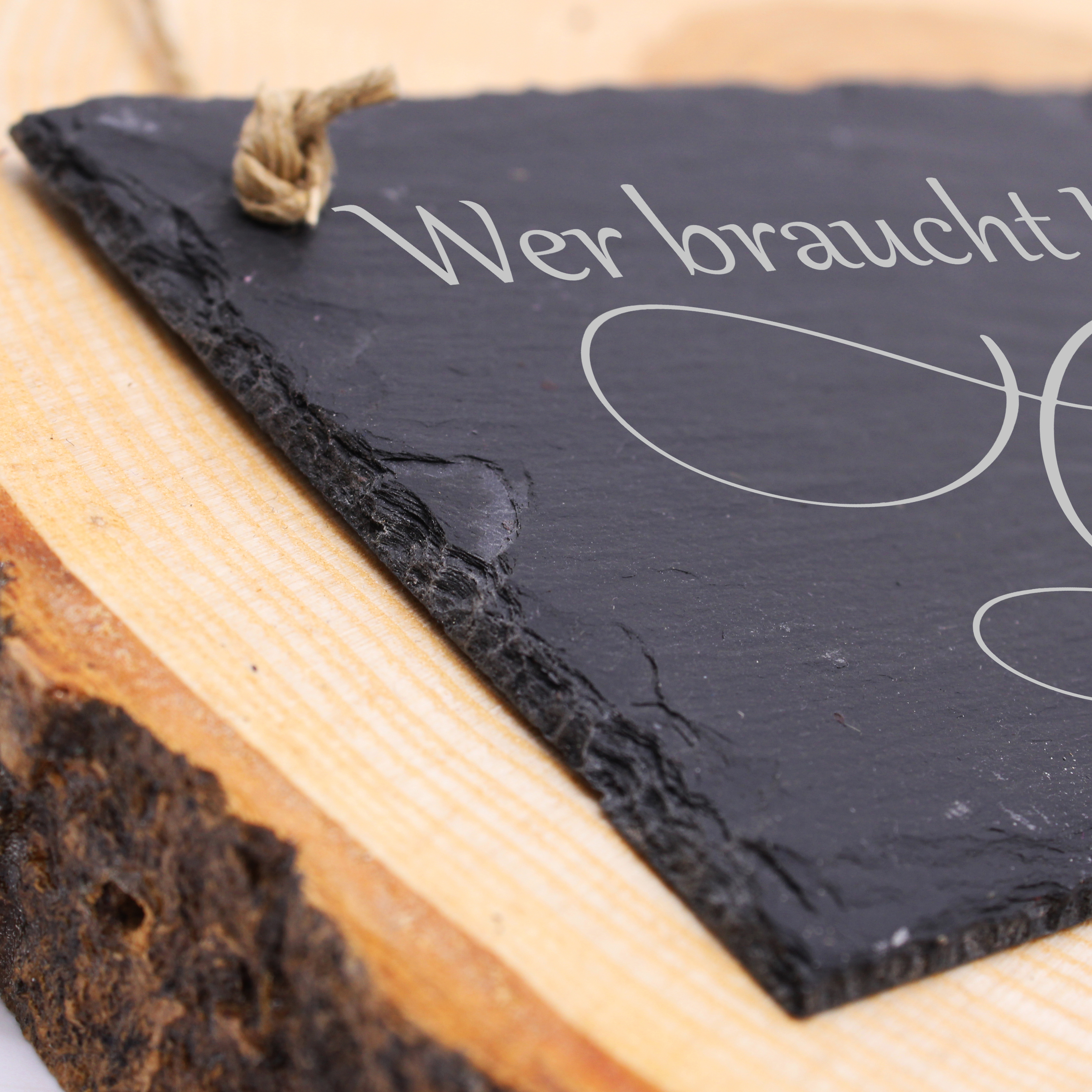 - Farbe: naturbelassener Schiefer (dunkel) mit heller Gravur