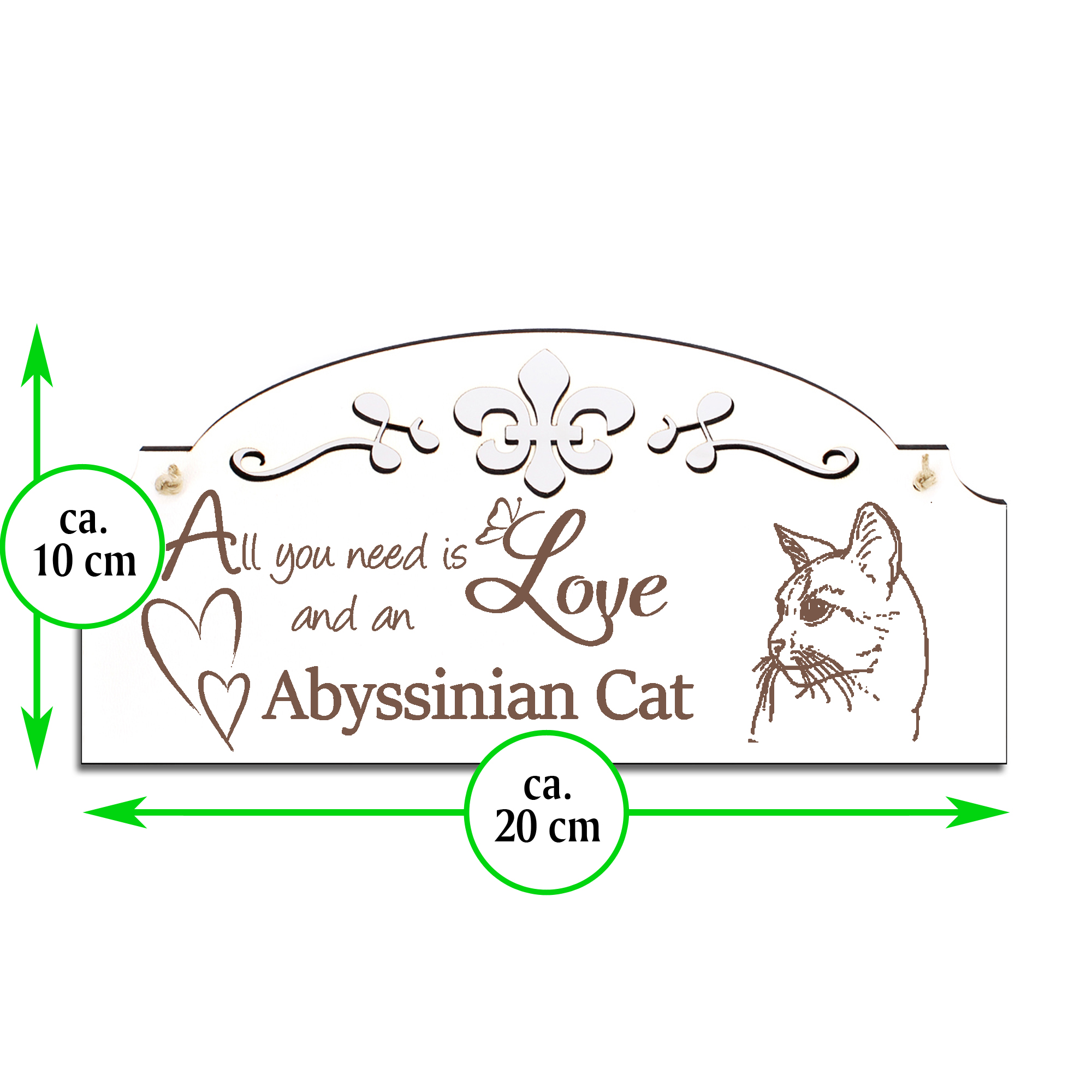 Schild Abessinierkatze Deko 20x10cm - All you need is Love and an Abyssinian Cat - Holz