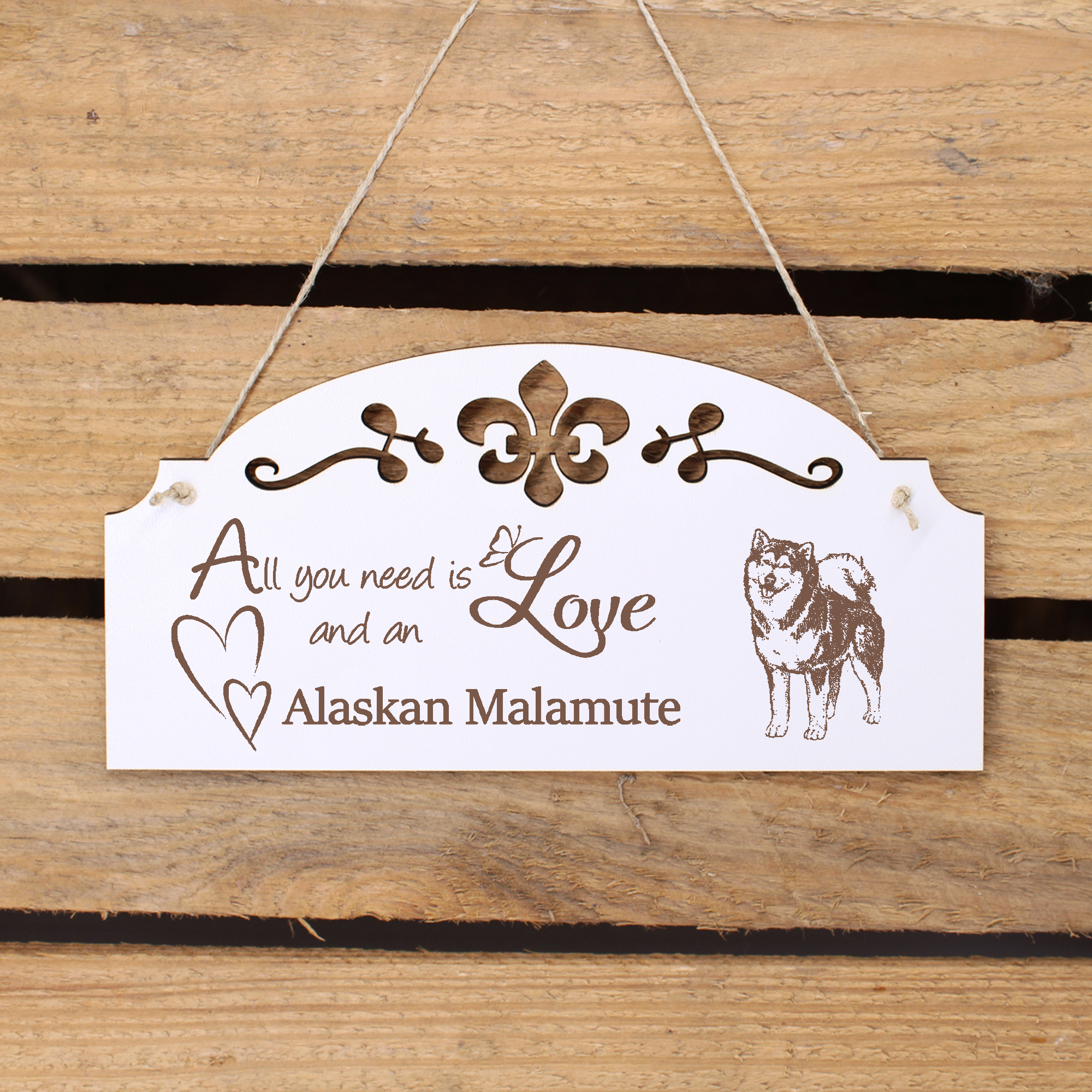 - WANDDEKO: schöne Dekoration im Retro oder Vintage Stil mit dem Spruch - All you need is Love and an Alaskan Malamute - die Türdeko ist nicht nur lustig, sondern auch modern