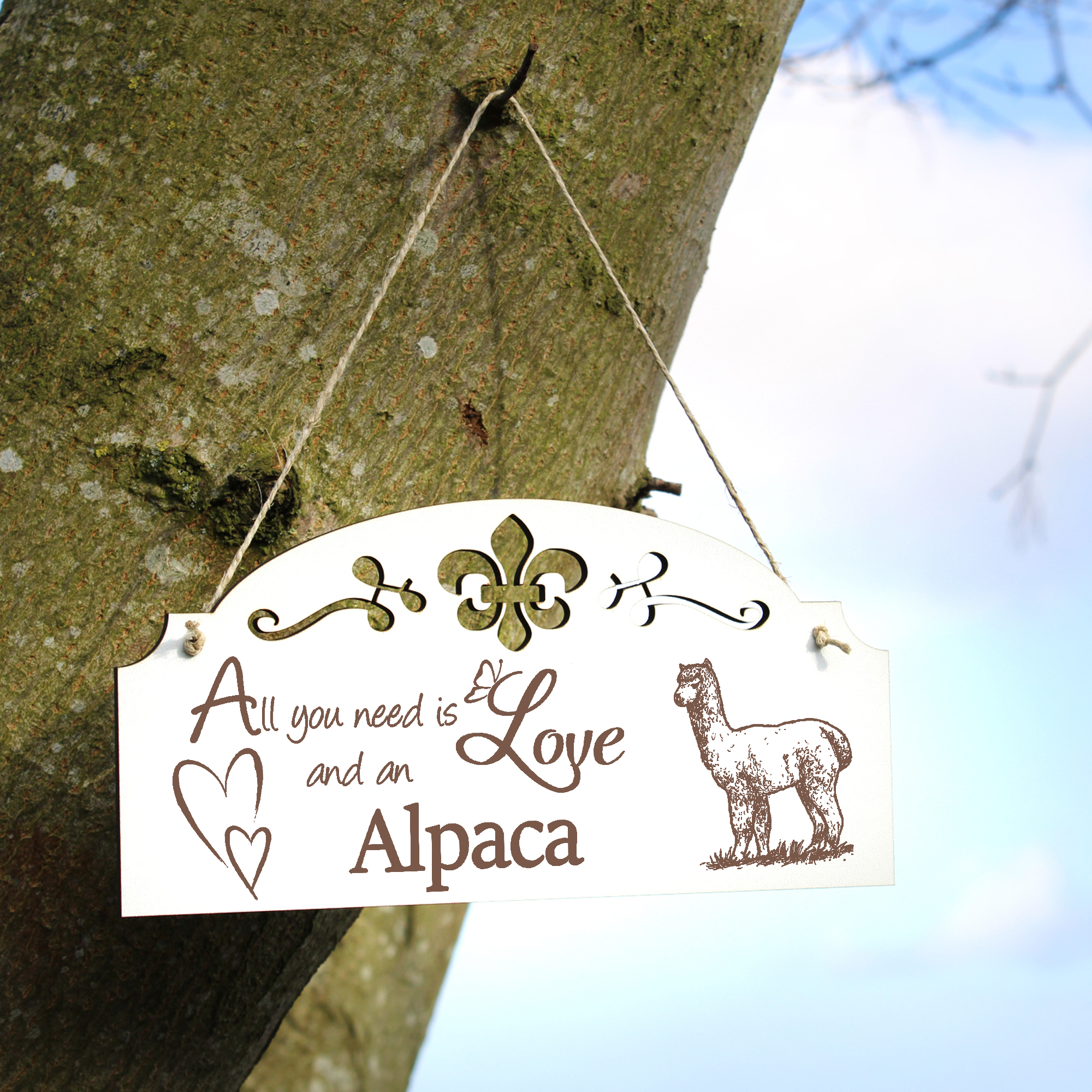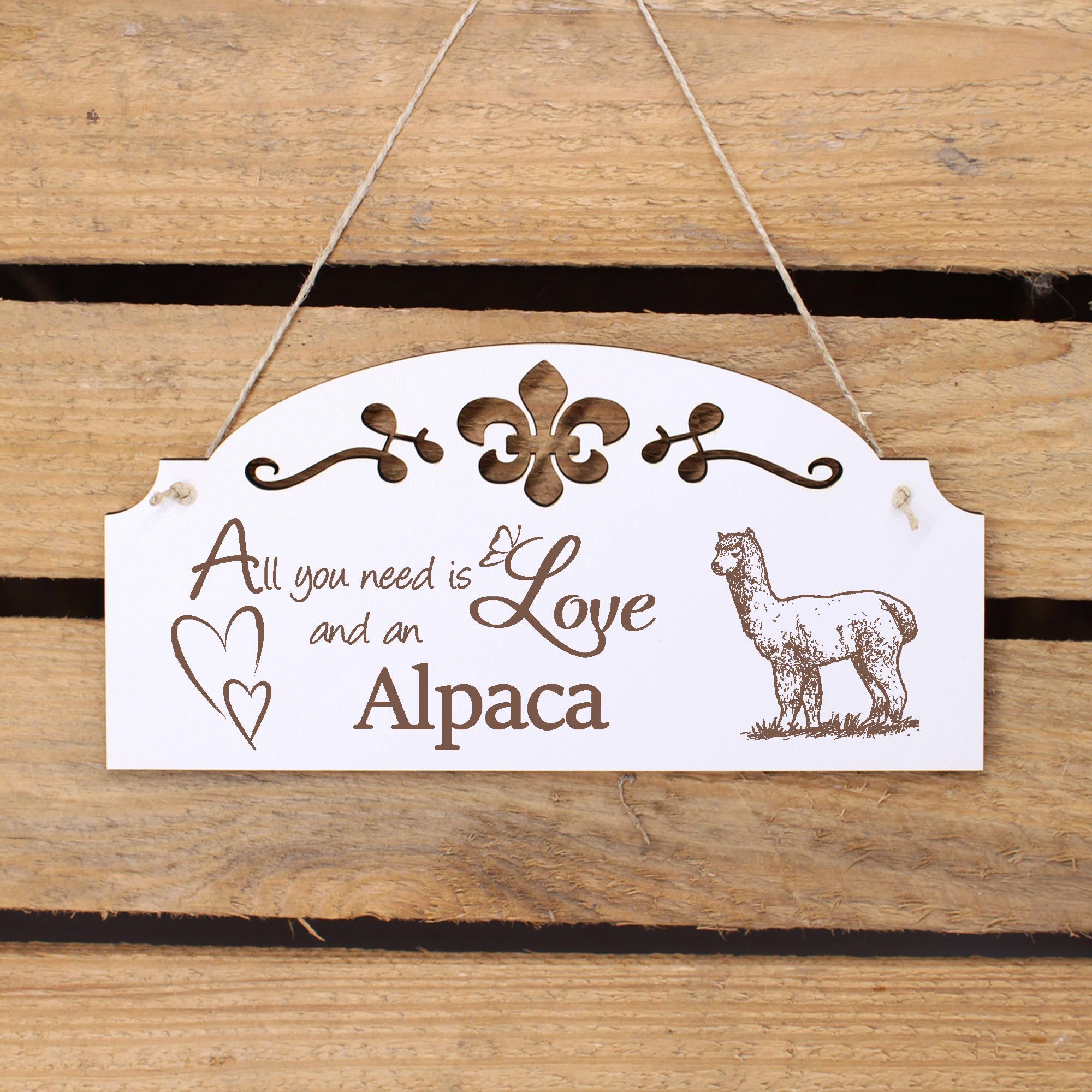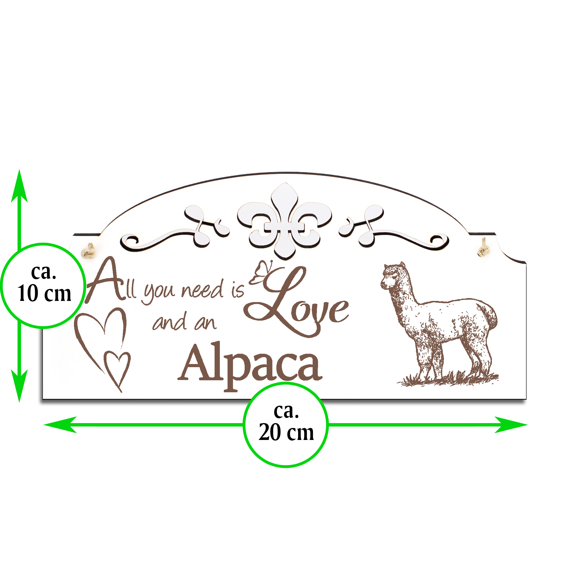 Schild Alpaka Lama auf einer Wiese Deko 20x10cm - All you need is Love and an Alpaca - Holz