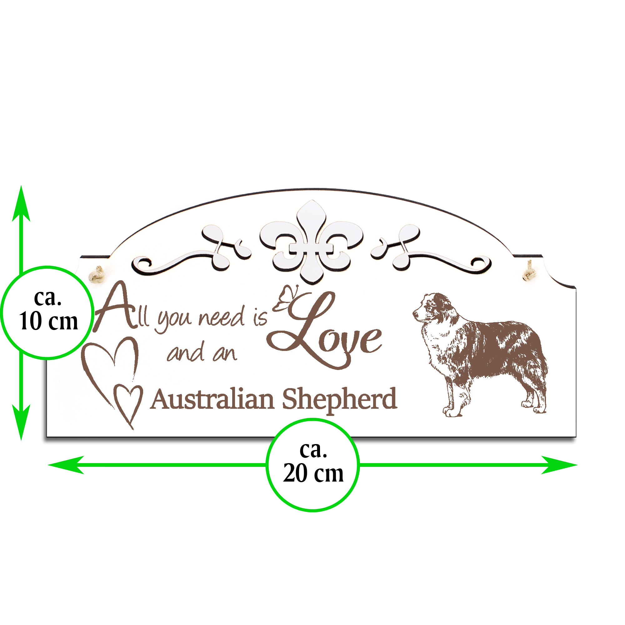 Schild Australian Shepherd Deko 20x10cm - All you need is Love and an Australian Shepherd - Holz