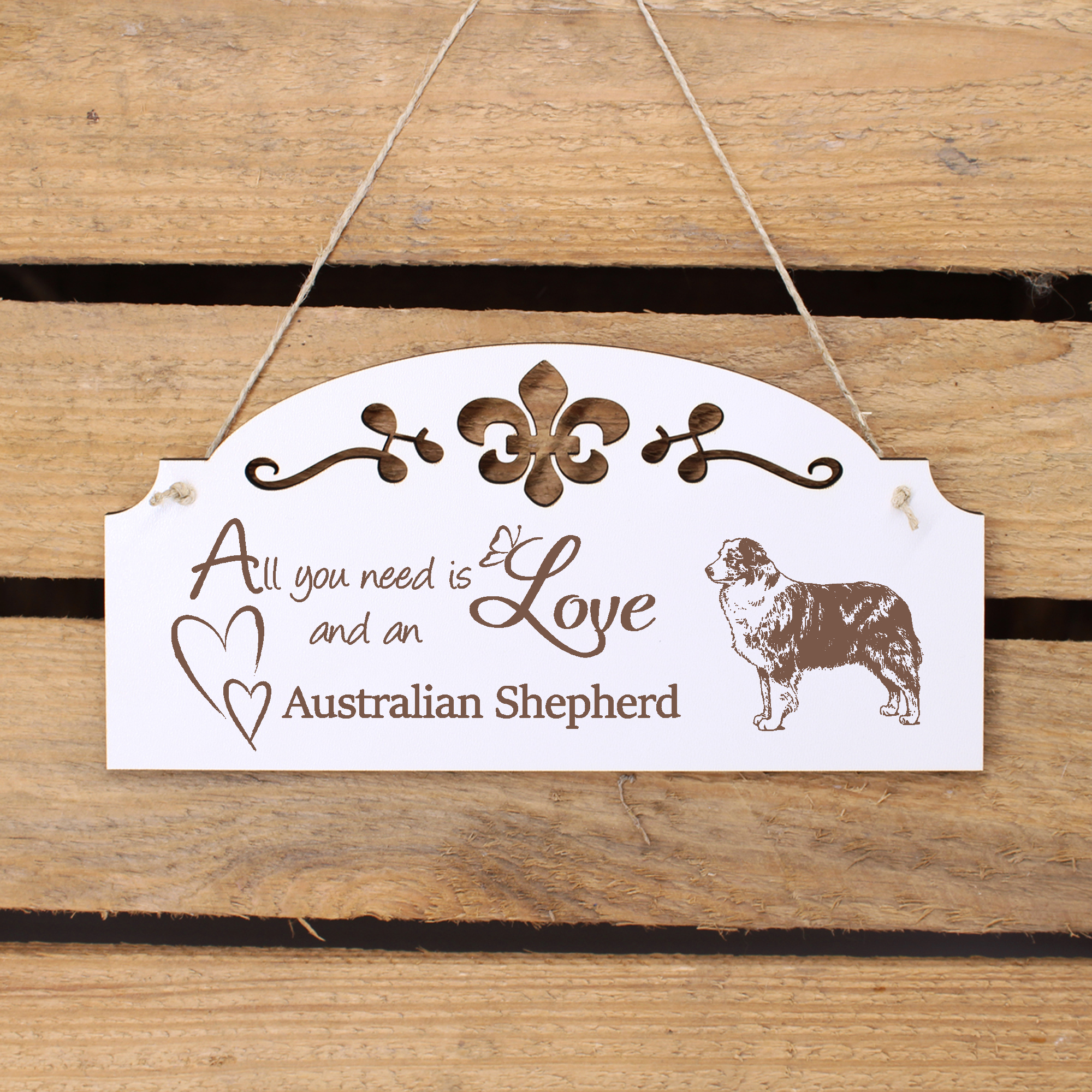 • WANDDEKO: schöne Dekoration im Retro oder Vintage Stil mit dem Spruch - All you need is Love and an Australian Shepherd - die Türdeko ist nicht nur lustig, sondern auch modern