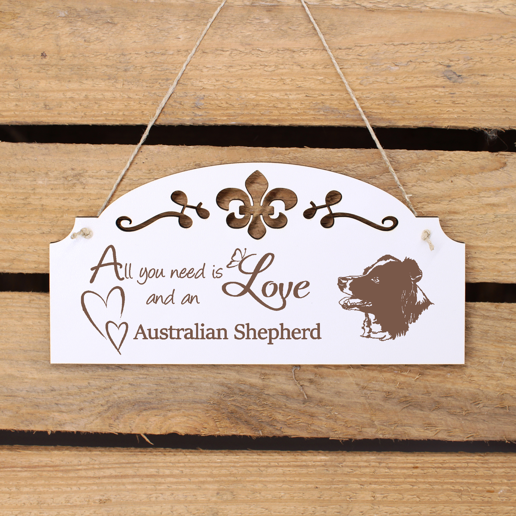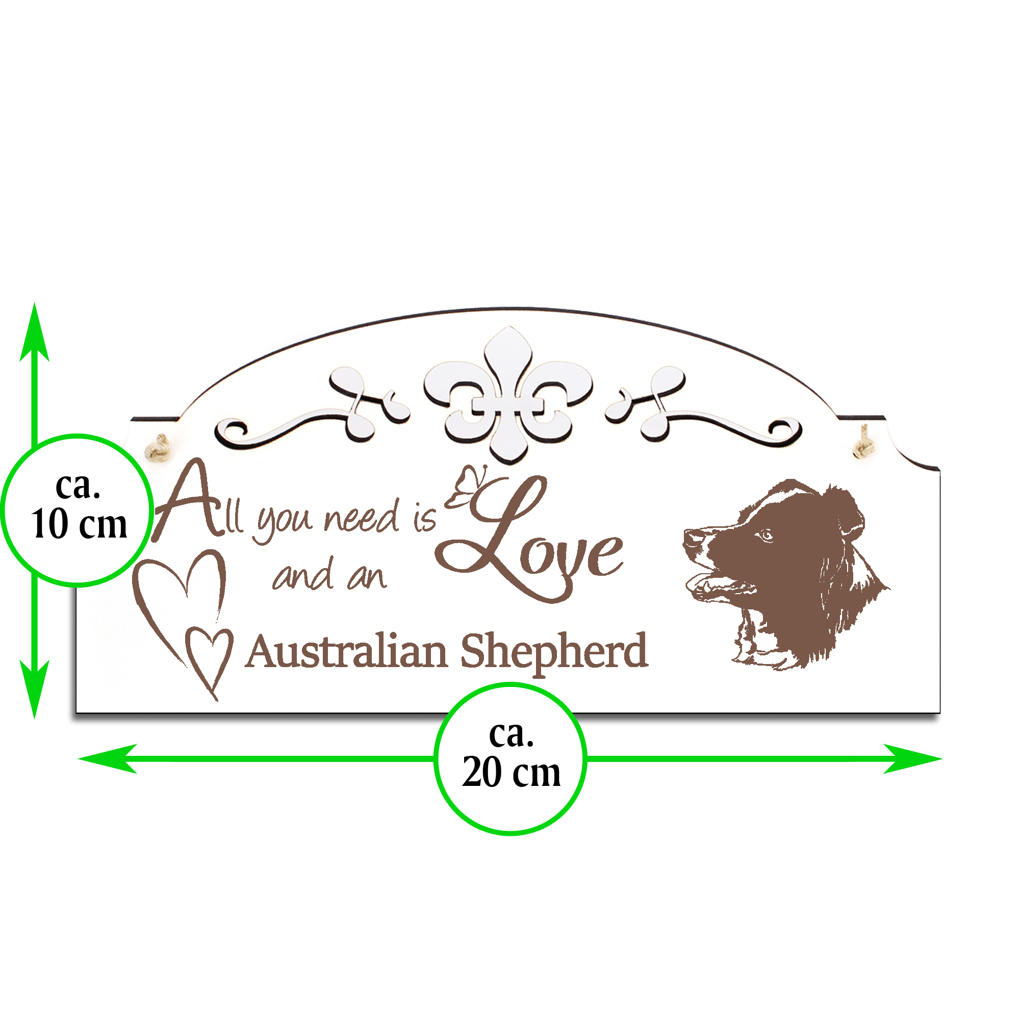 Schild Australian Shepherd Deko 20x10cm - All you need is Love and an Australian Shepherd - Holz