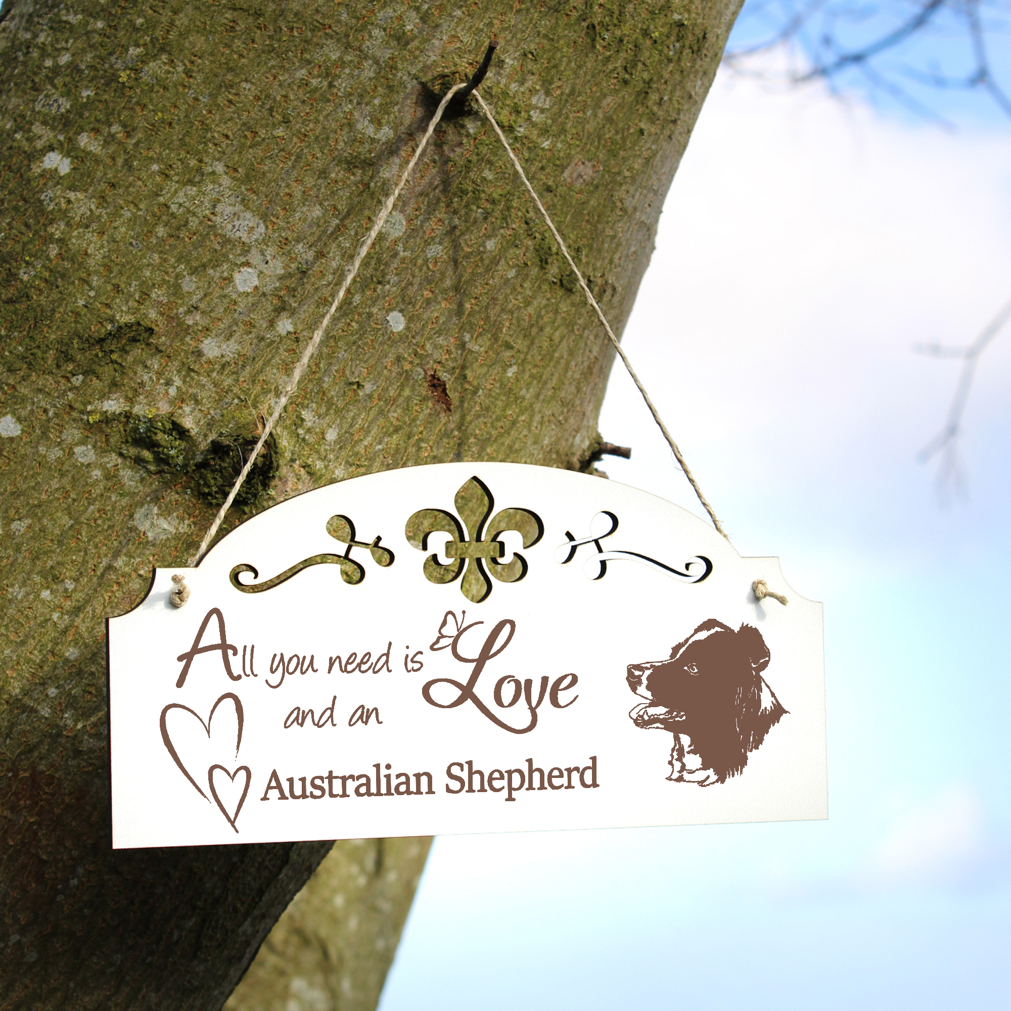 - WANDDEKO: schöne Dekoration im Retro oder Vintage Stil mit dem Spruch - All you need is Love and an Australian Shepherd - die Türdeko ist nicht nur lustig, sondern auch modern