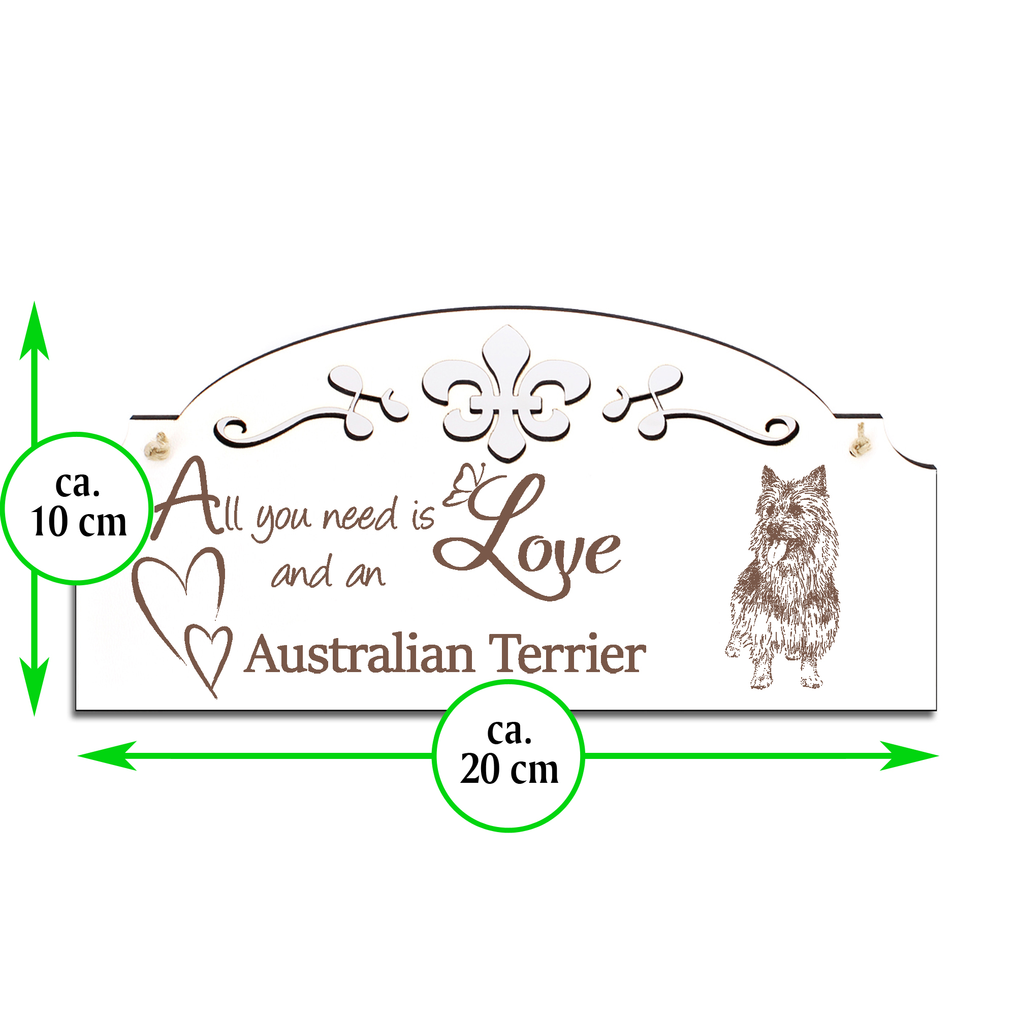 Schild Australian Terrier Deko 20x10cm - All you need is Love and an Australian Terrier - Holz