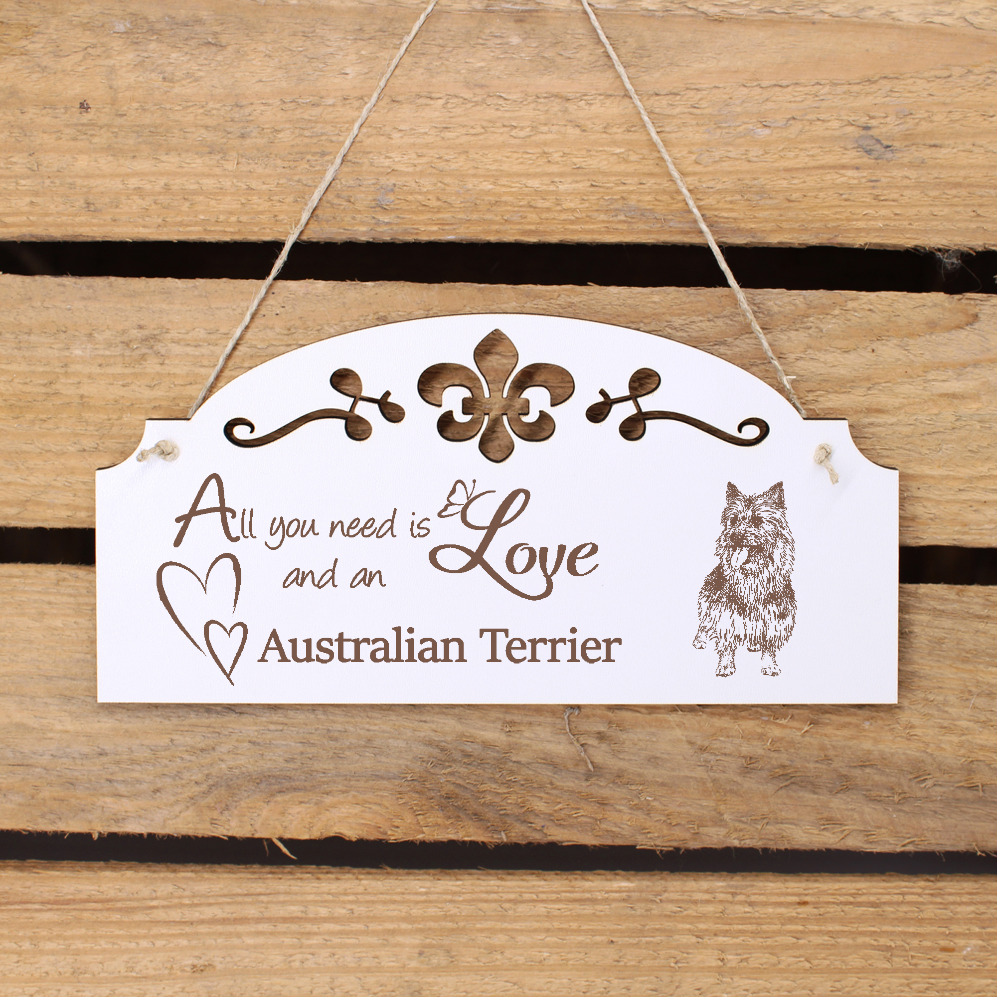 - WANDDEKO: schöne Dekoration im Retro oder Vintage Stil mit dem Spruch - All you need is Love and an Australian Terrier - die Türdeko ist nicht nur lustig, sondern auch modern