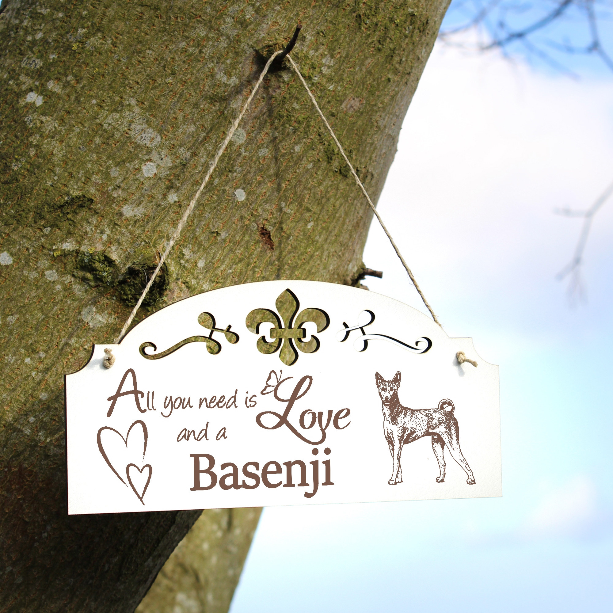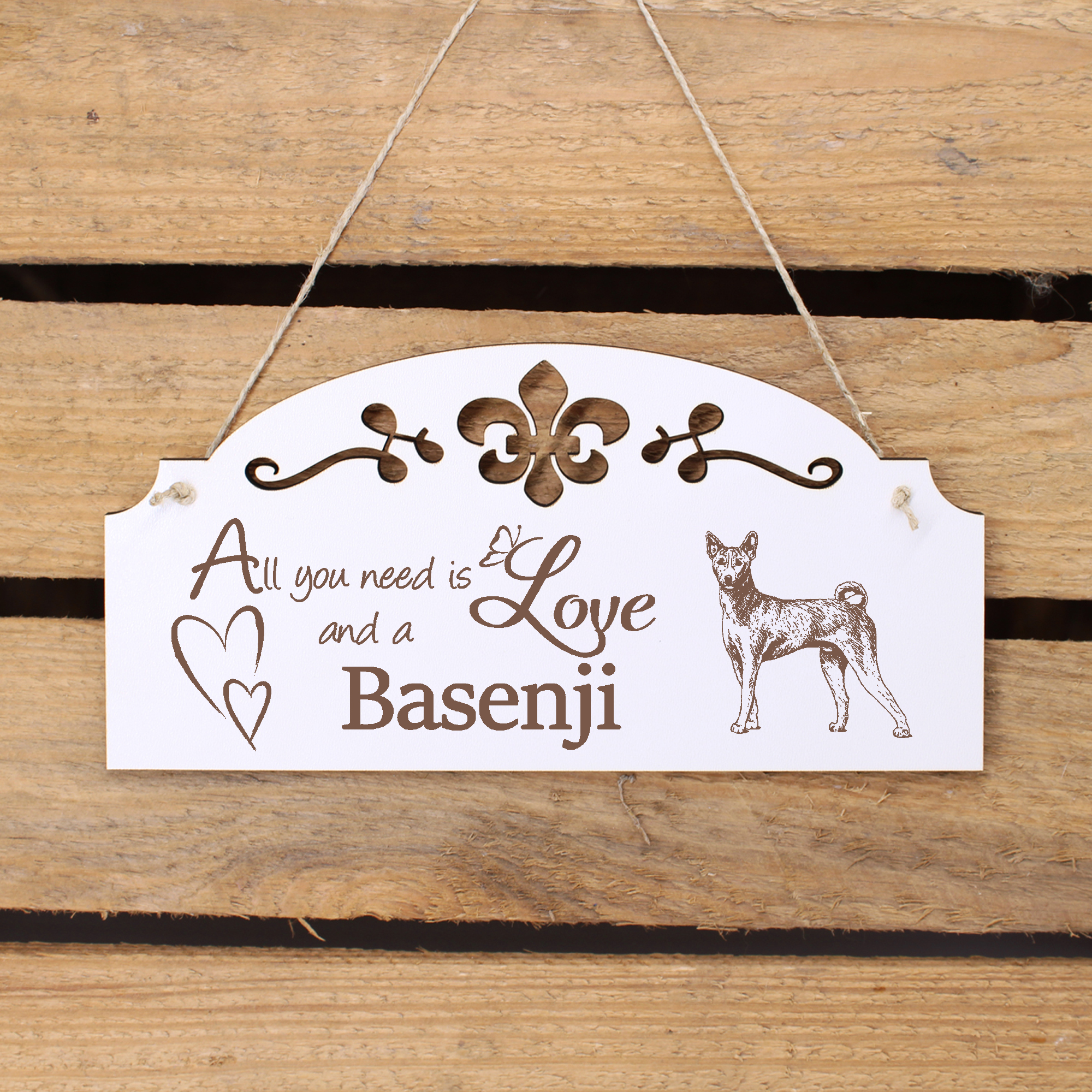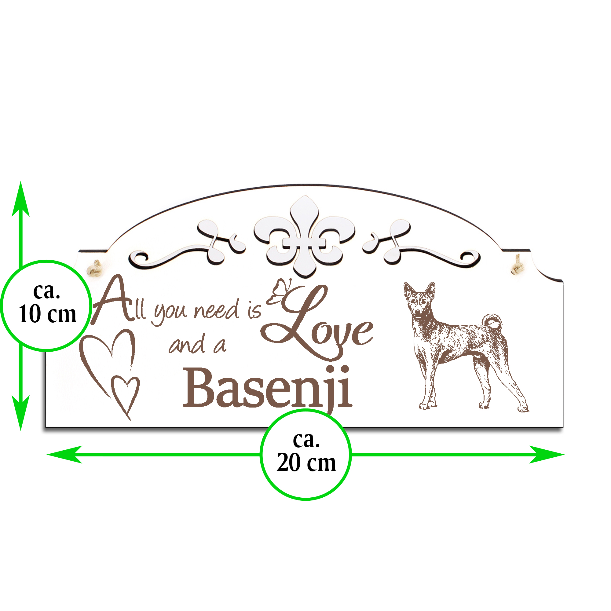 Schild Basenji Deko 20x10cm - All you need is Love and a Basenji - Holz