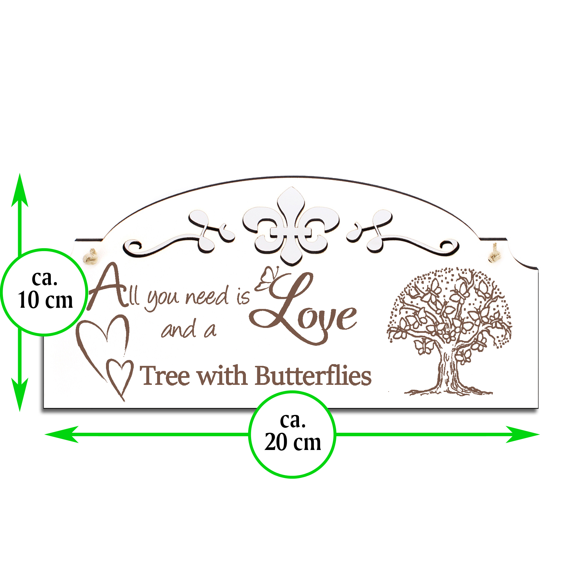 Schild Baum aus Schmetterlingen Deko 20x10cm - All you need is Love and a Tree with Butterflies - Ho