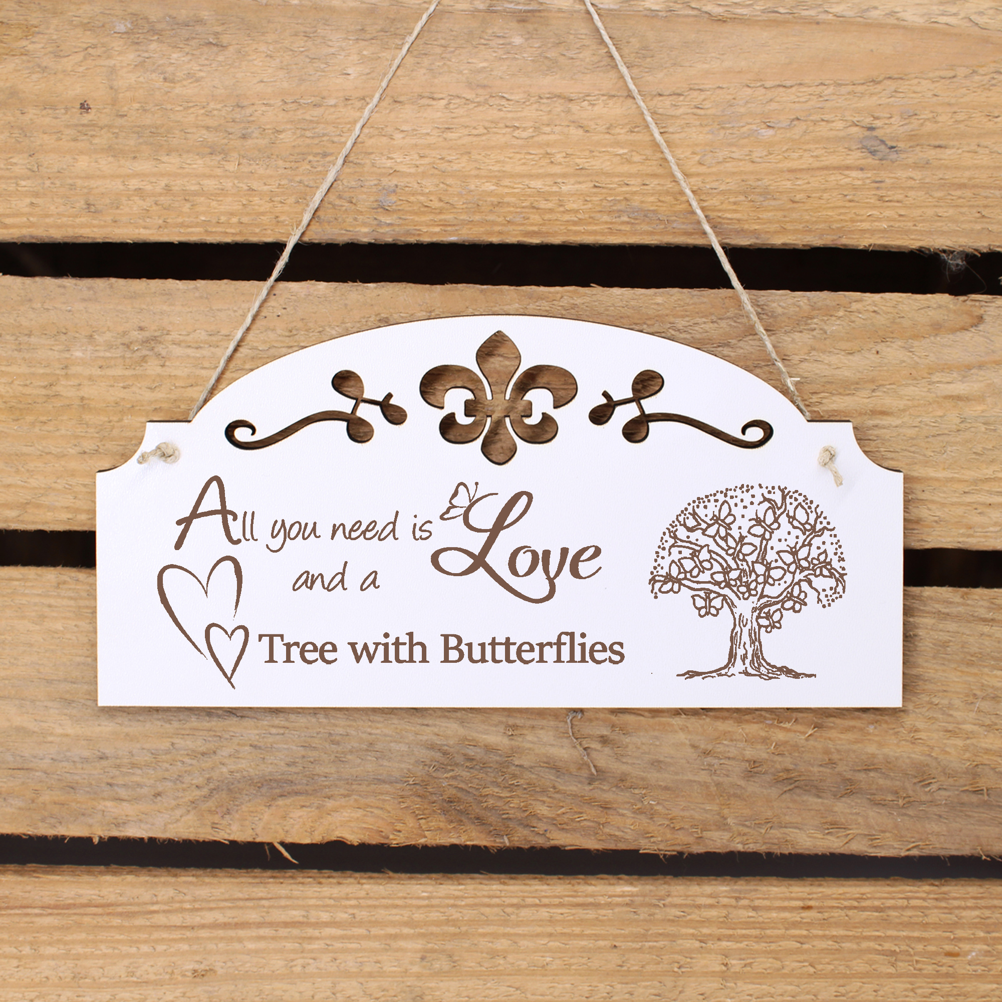 - WANDDEKO: schöne Dekoration im Retro oder Vintage Stil mit dem Spruch - All you need is Love and a Tree with Butterflies - die Türdeko ist nicht nur lustig, sondern auch modern
