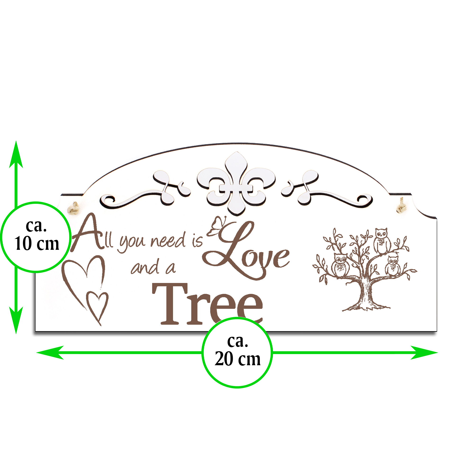 Schild Baum mit Eulen Deko 20x10cm - All you need is Love and a Tree - Holz