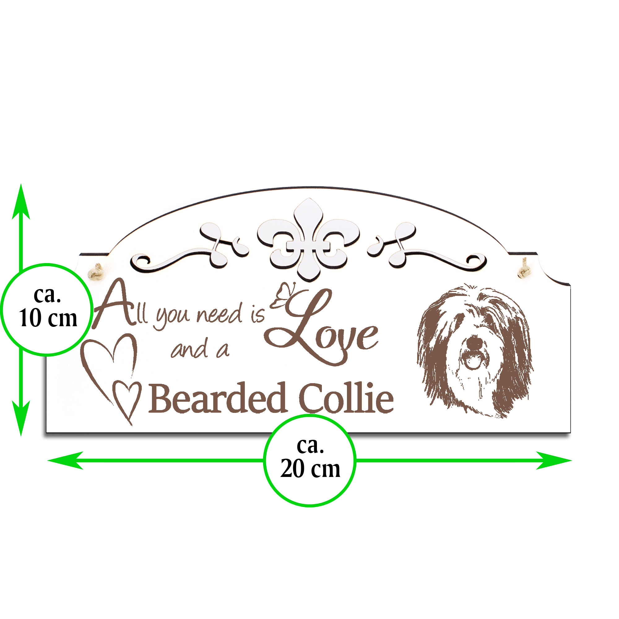 Schild Bearded Collie Deko 20x10cm - All you need is Love and a Bearded Collie - Holz