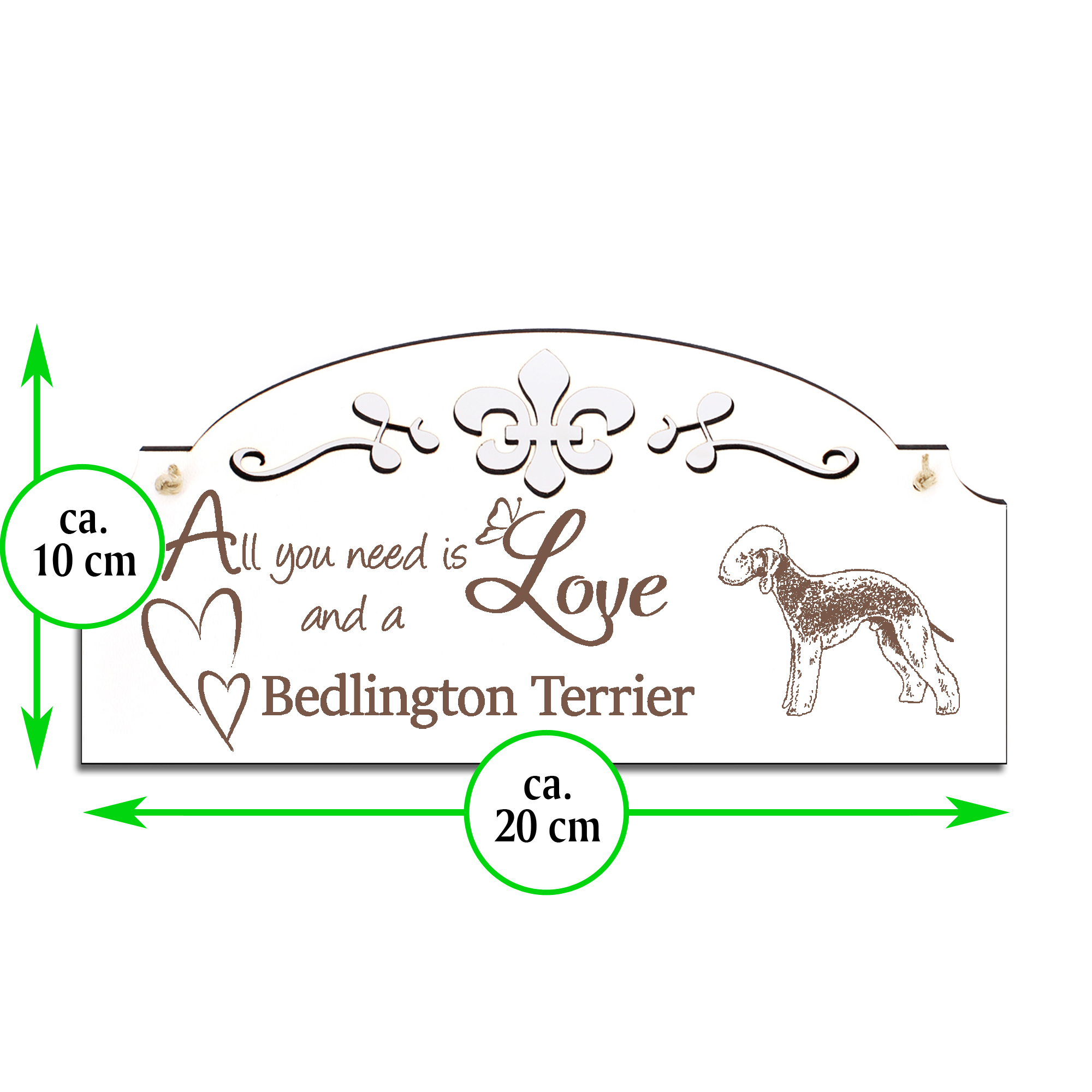 Schild Bedlington Terrier Deko 20x10cm - All you need is Love and a Bedlington Terrier - Holz