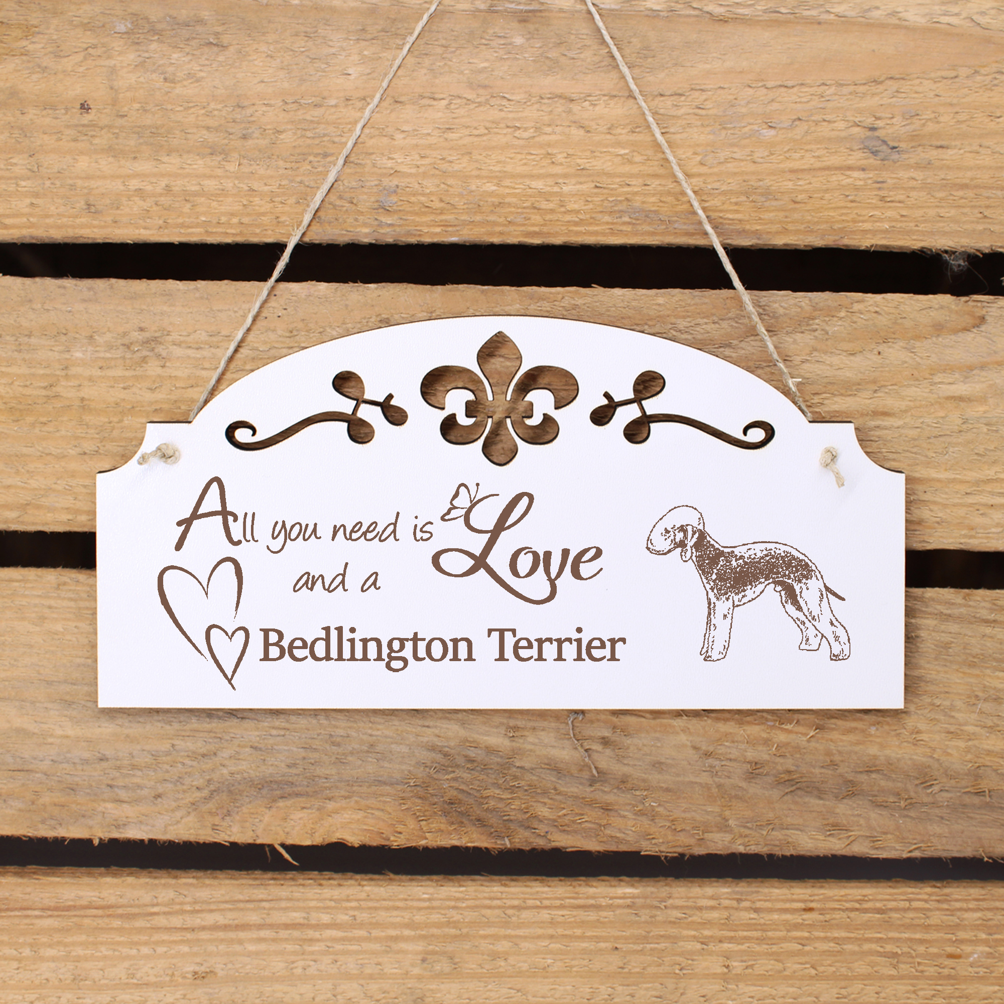 - WANDDEKO: schöne Dekoration im Retro oder Vintage Stil mit dem Spruch - All you need is Love and a Bedlington Terrier - die Türdeko ist nicht nur lustig, sondern auch modern