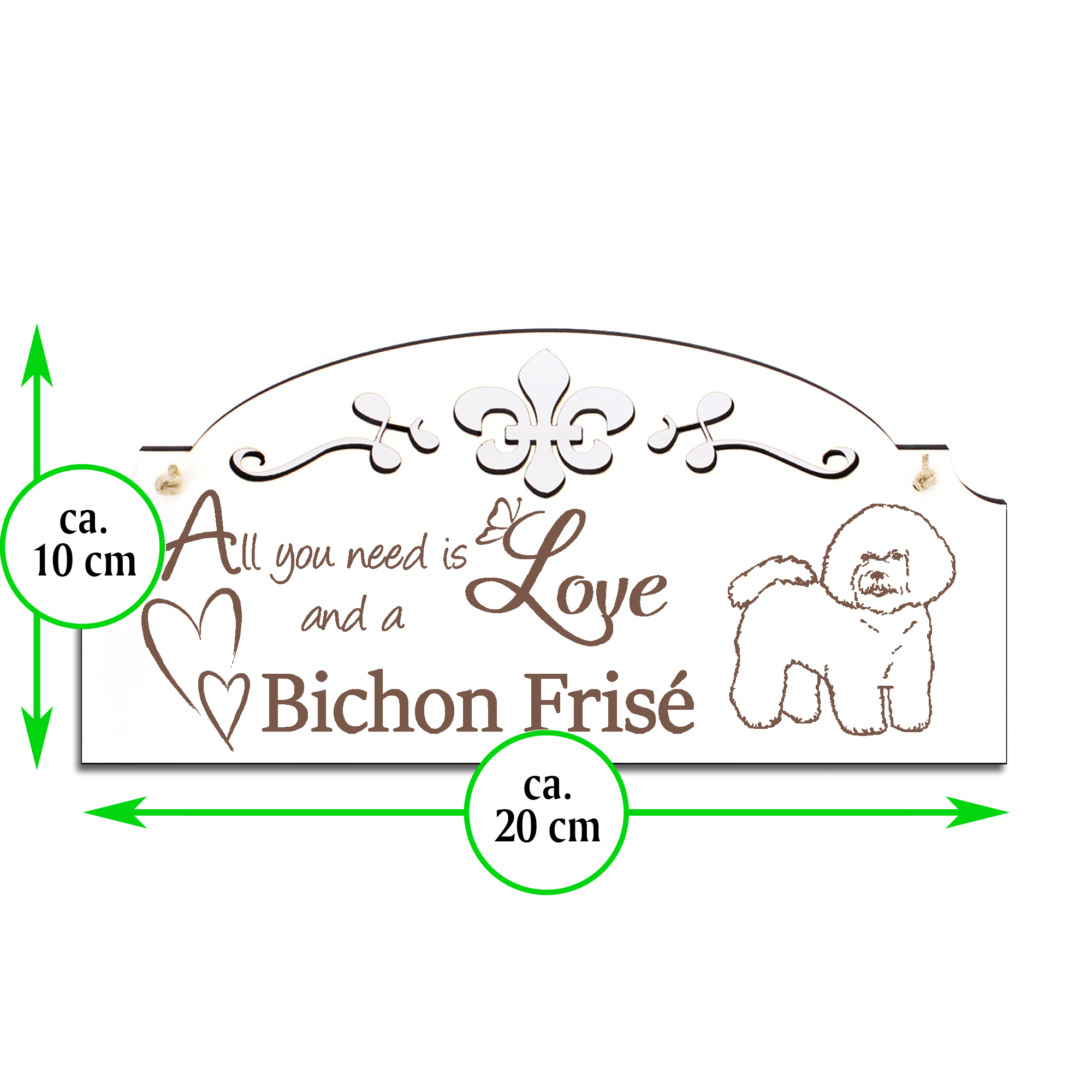 Schild Bichon Frisé Deko 20x10cm - All you need is Love and a Bichon Frisé - Holz