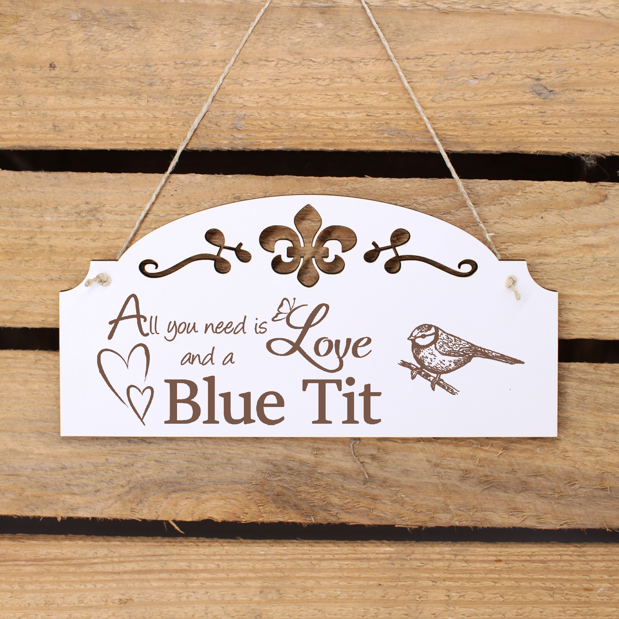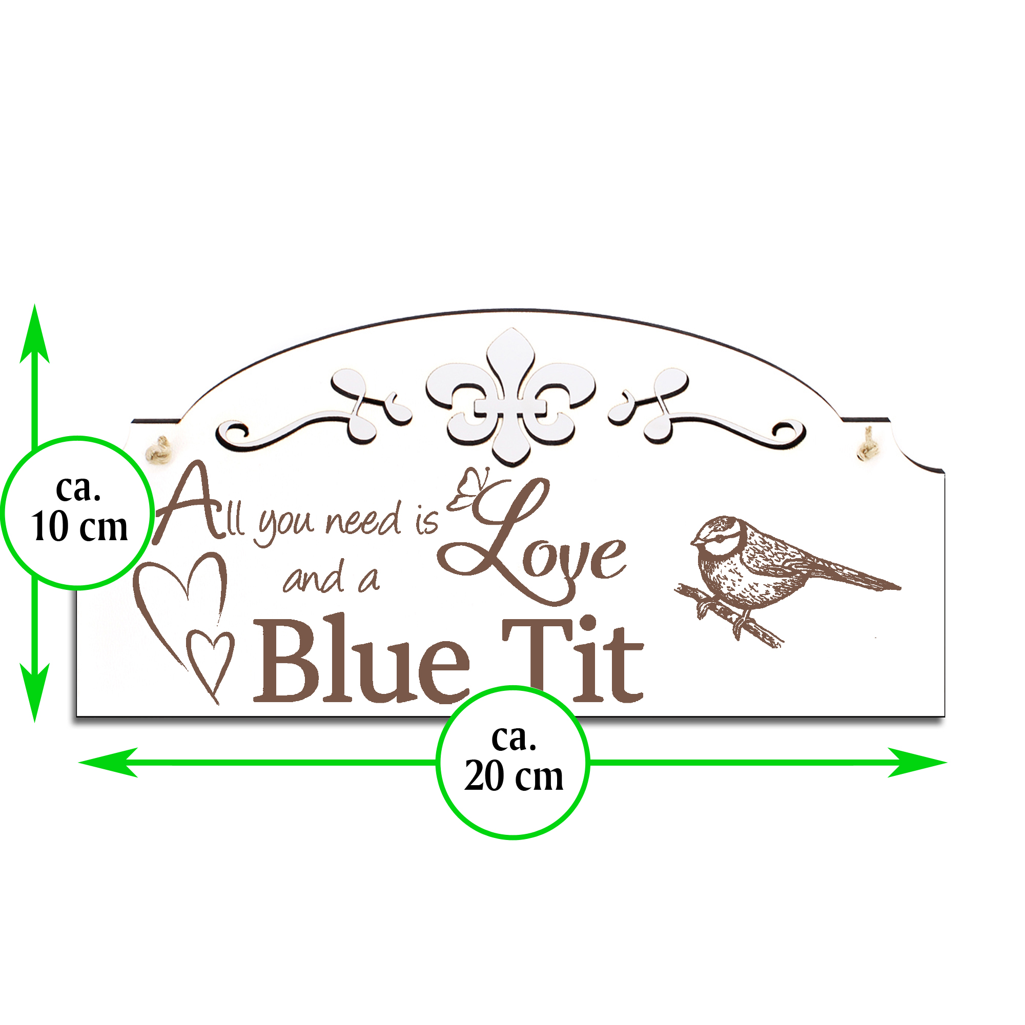 Schild Blaumeise Deko 20x10cm - All you need is Love and a Blue Tit - Holz