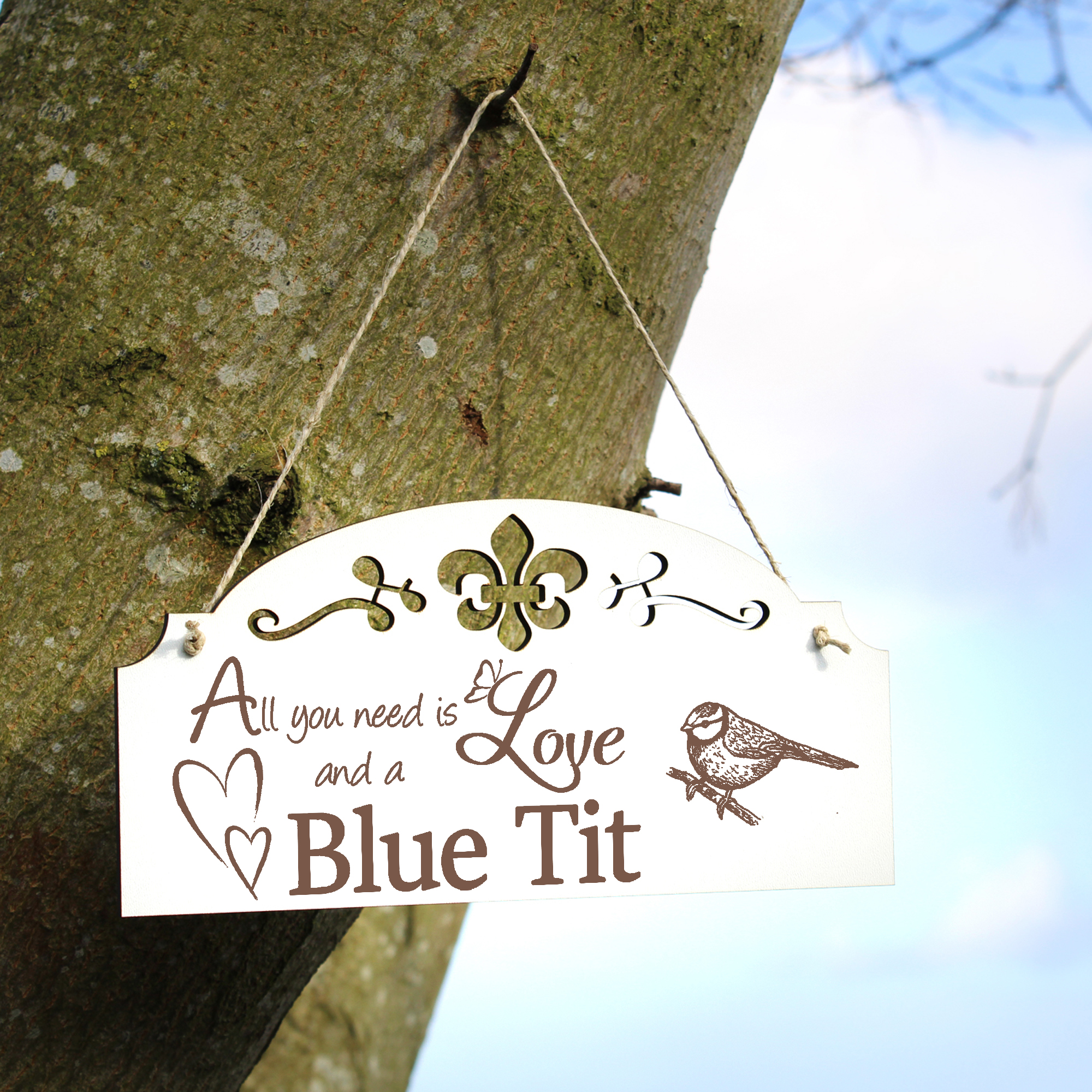 - WANDDEKO: schöne Dekoration im Retro oder Vintage Stil mit dem Spruch - All you need is Love and a Blue Tit - die Türdeko ist nicht nur lustig, sondern auch modern