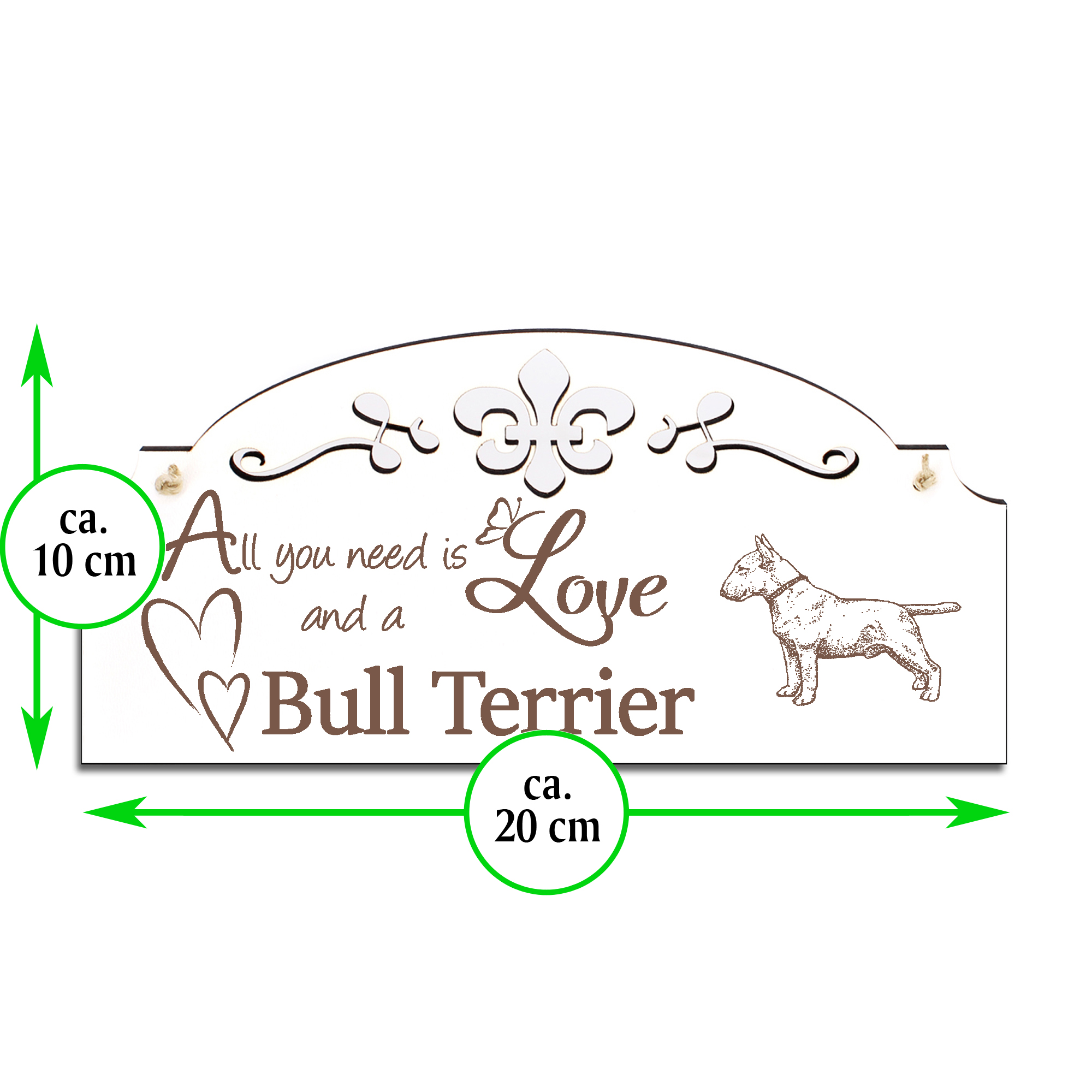 Schild Bullterrier Deko 20x10cm - All you need is Love and a Bull Terrier - Holz