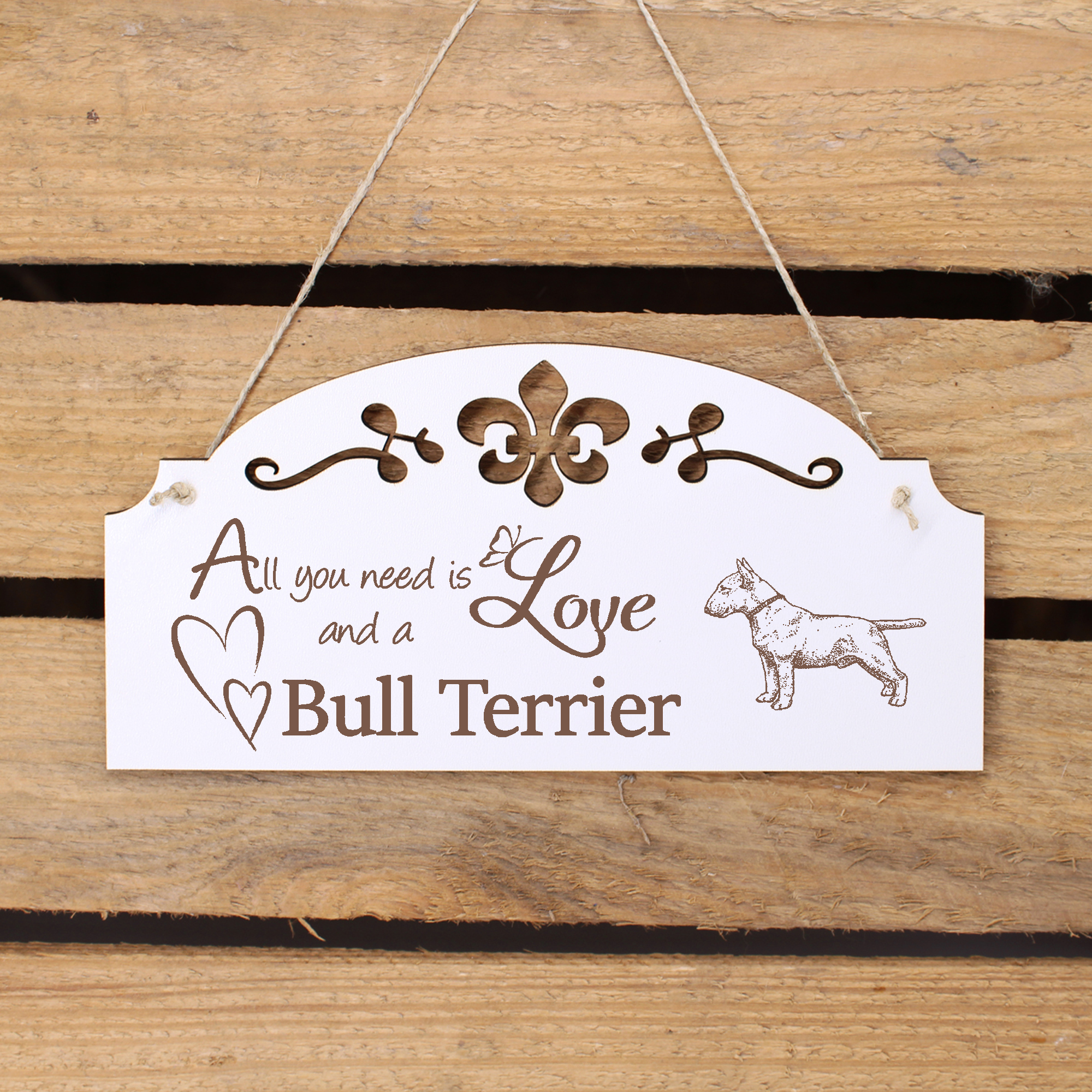- WANDDEKO: schöne Dekoration im Retro oder Vintage Stil mit dem Spruch - All you need is Love and a Bull Terrier - die Türdeko ist nicht nur lustig, sondern auch modern