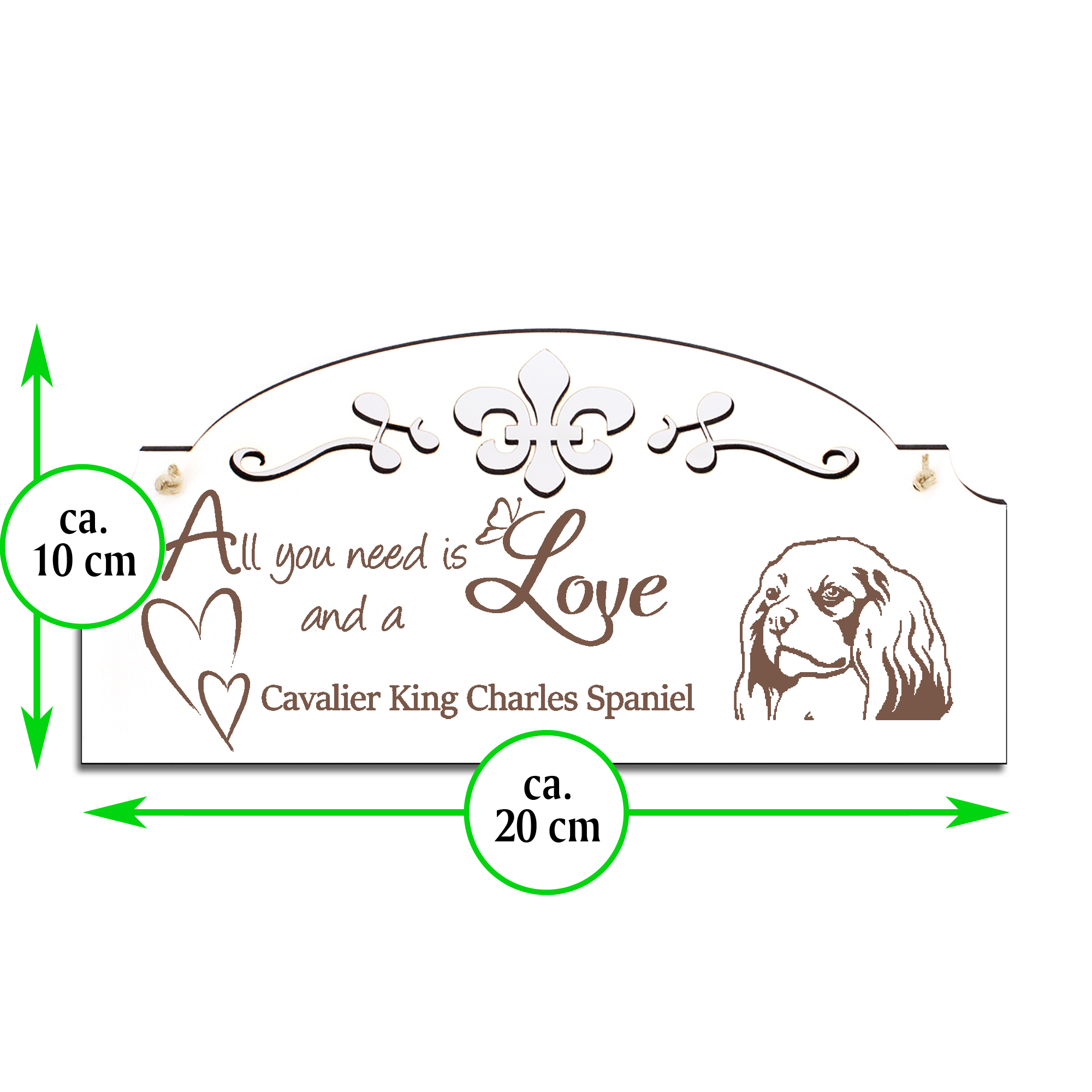 Schild Cavalier King Charles Spaniel Deko 20x10cm - All you need is Love and a Cavalier King Charles