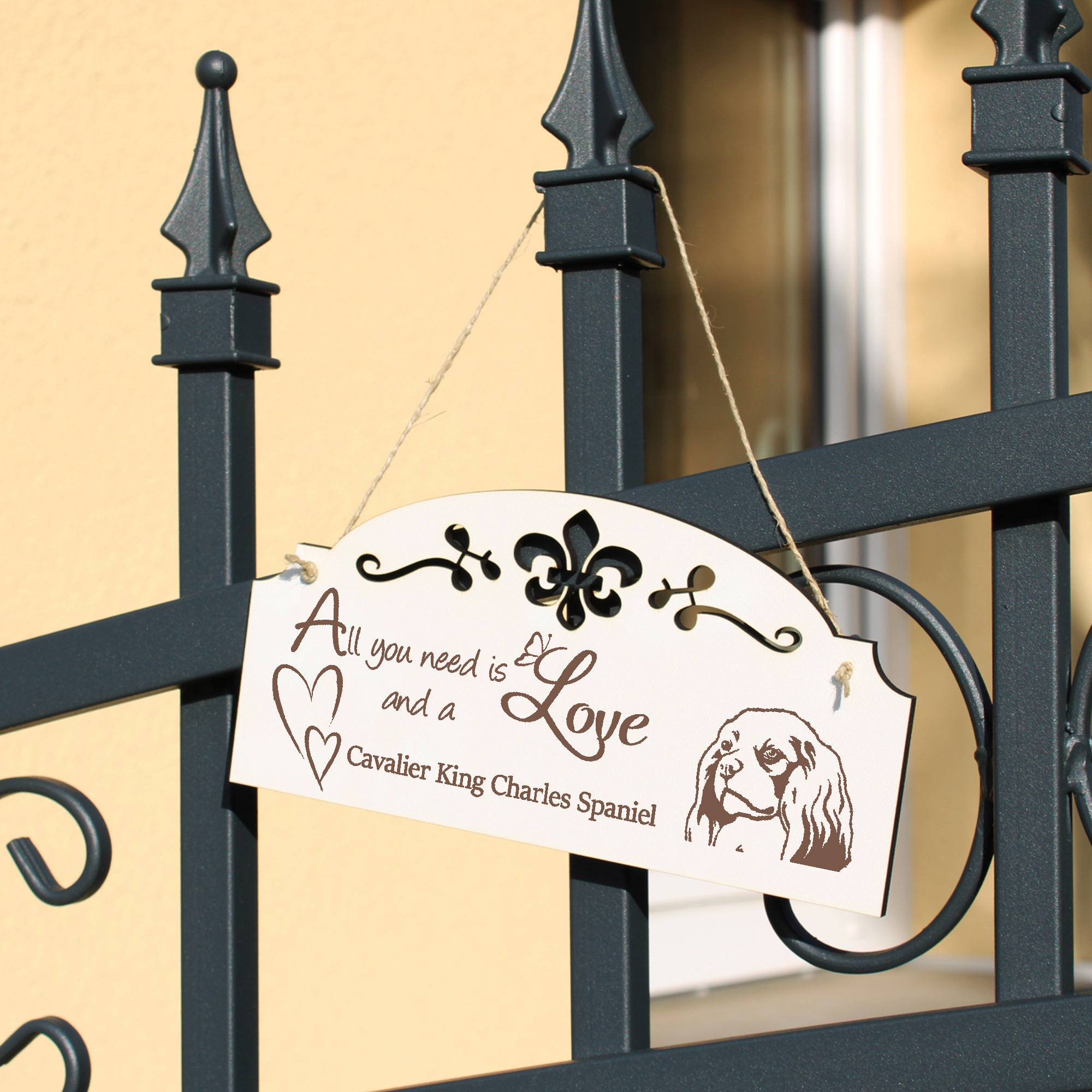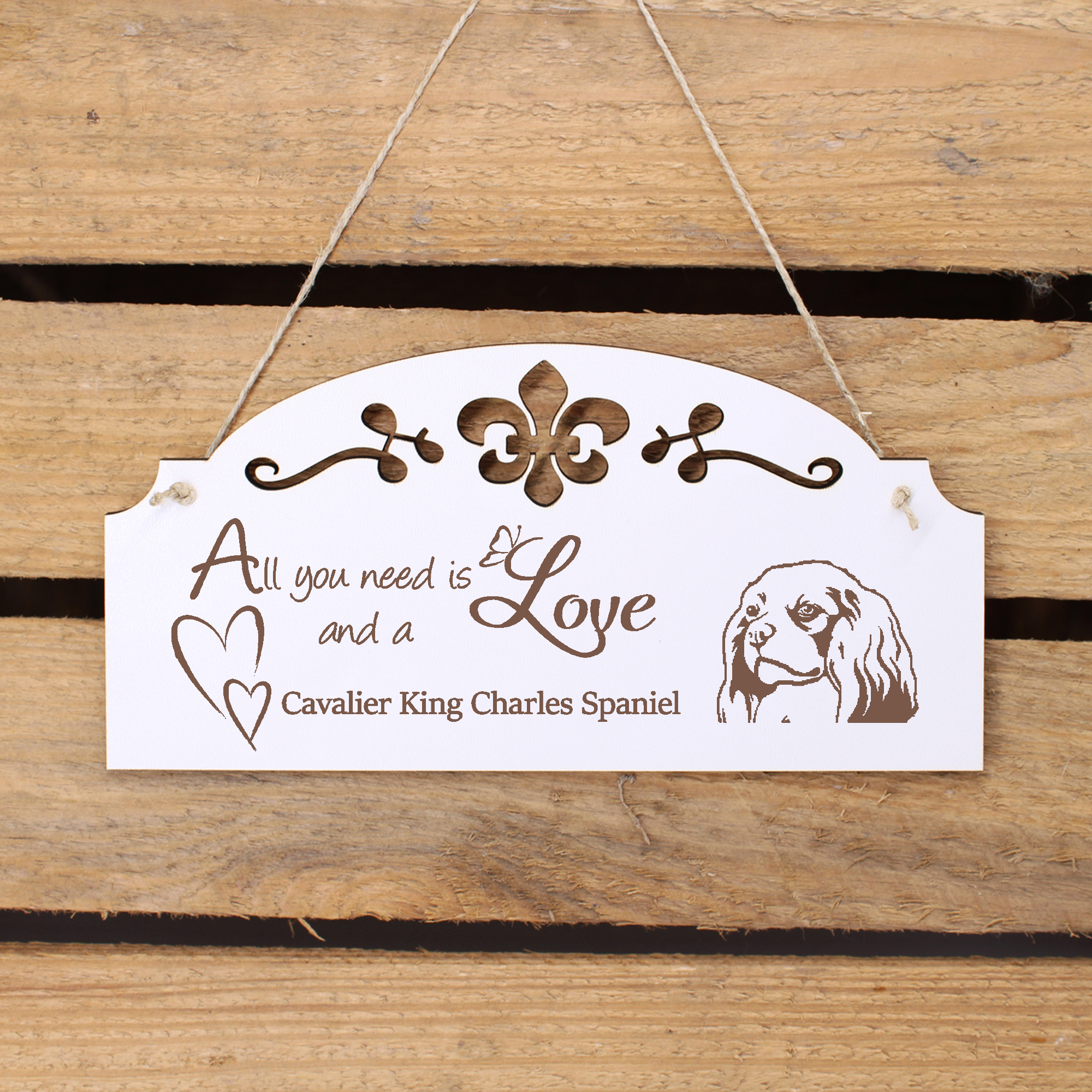 - WANDDEKO: schöne Dekoration im Retro oder Vintage Stil mit dem Spruch - All you need is Love and a Cavalier King Charles Spaniel - die Türdeko ist nicht nur lustig, sondern auch modern