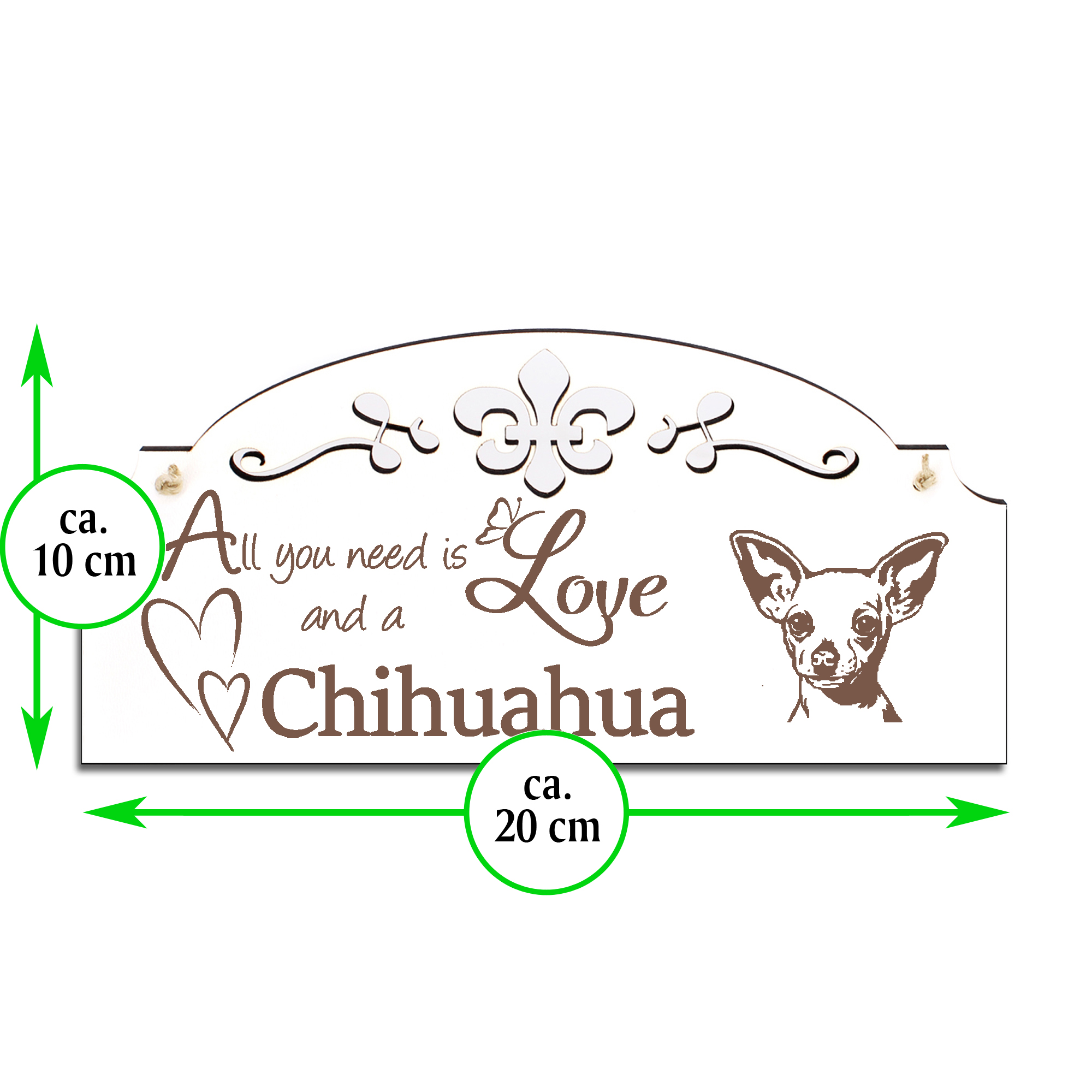 Schild Chihuahua Kopf Deko 20x10cm - All you need is Love and a Chihuahua - Holz