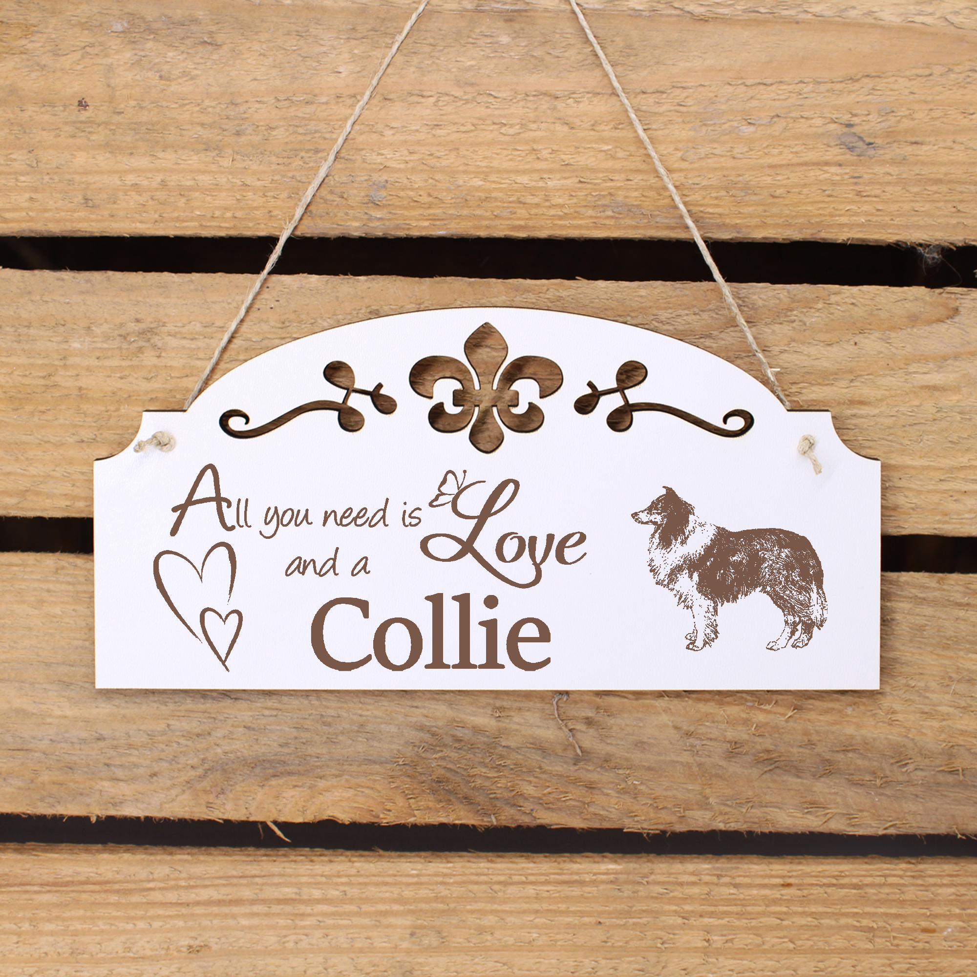 - WANDDEKO: schöne Dekoration im Retro oder Vintage Stil mit dem Spruch - All you need is Love and a Collie - die Türdeko ist nicht nur lustig, sondern auch modern