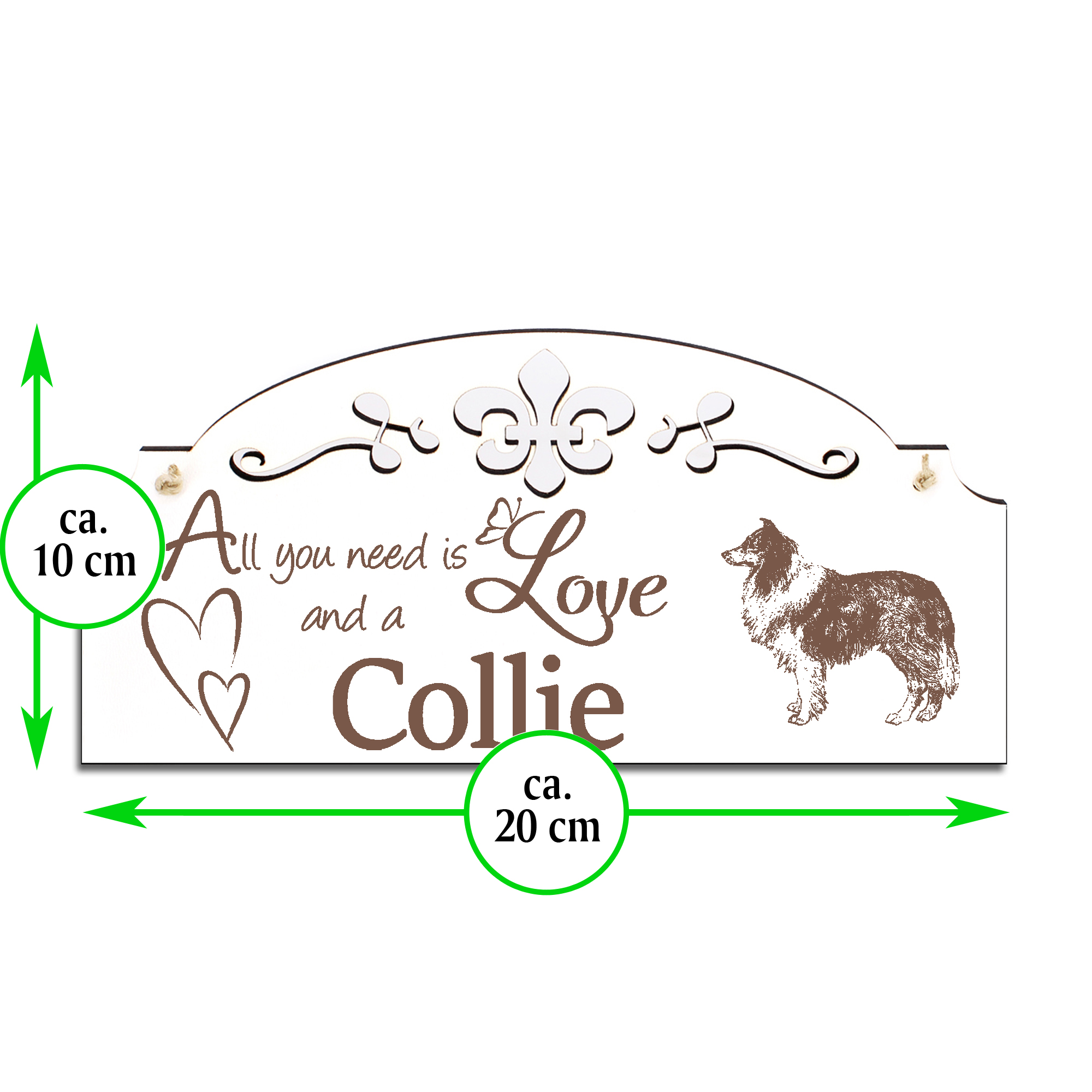 Schild Collie Deko 20x10cm - All you need is Love and a Collie - Holz