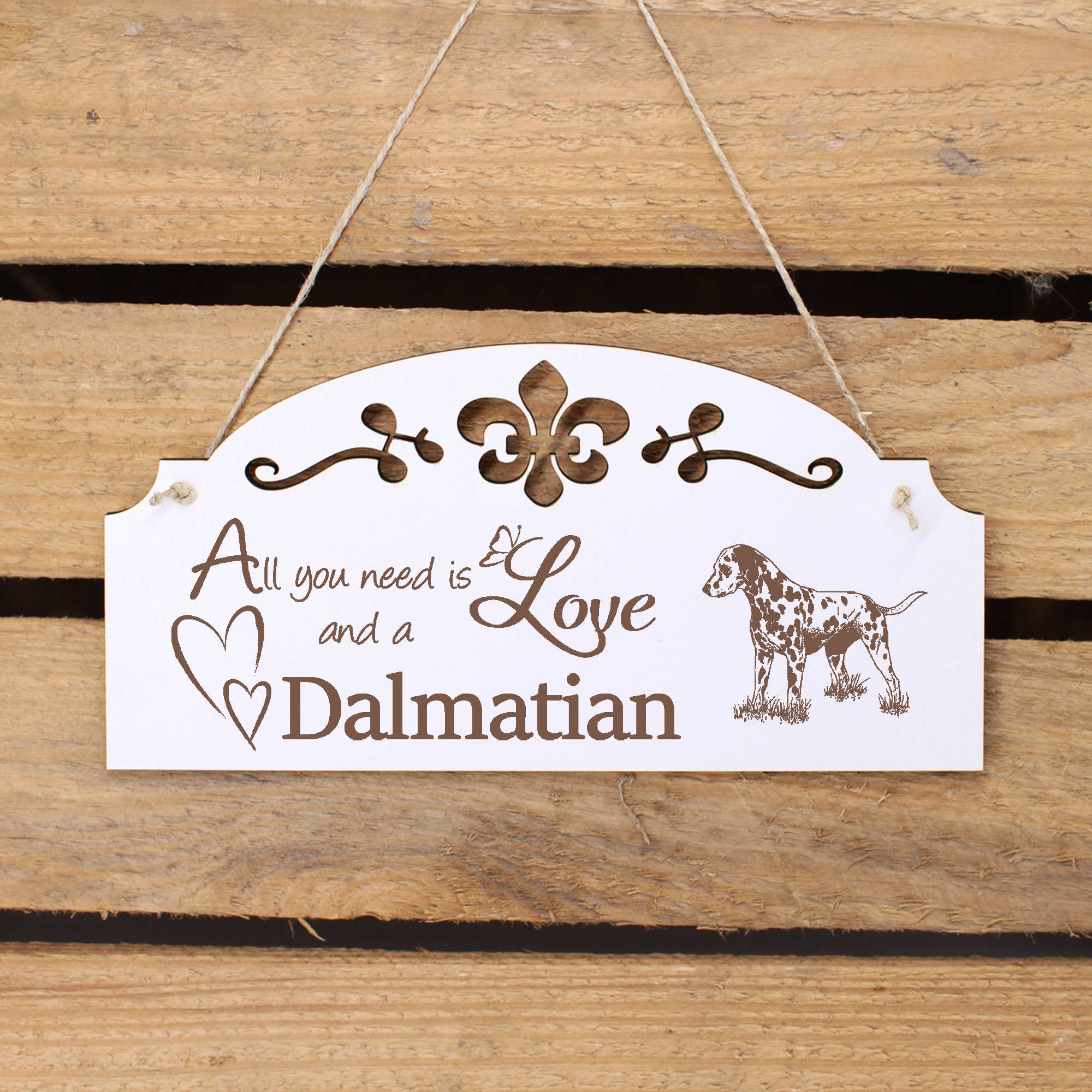 - WANDDEKO: schöne Dekoration im Retro oder Vintage Stil mit dem Spruch - All you need is Love and a Dalmatian - die Türdeko ist nicht nur lustig, sondern auch modern