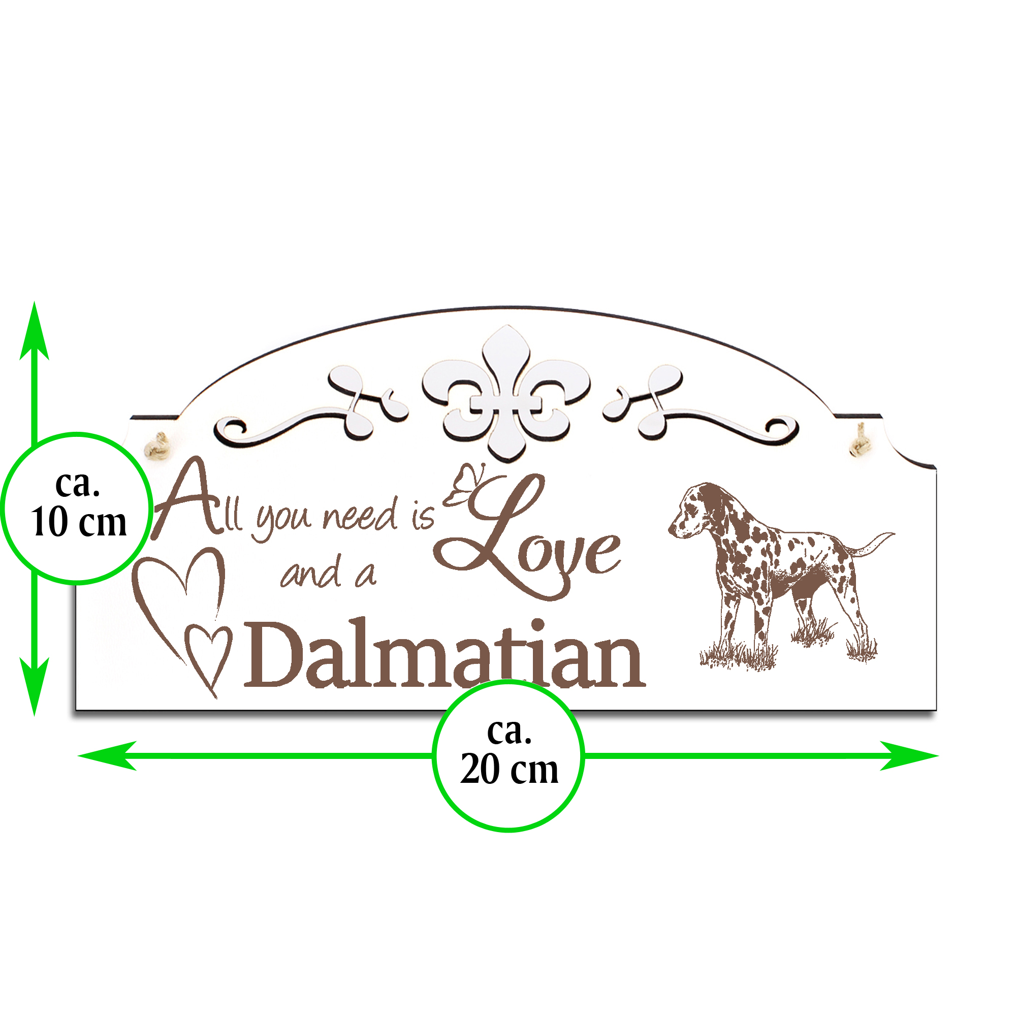 Schild Dalmatiner Deko 20x10cm - All you need is Love and a Dalmatian - Holz