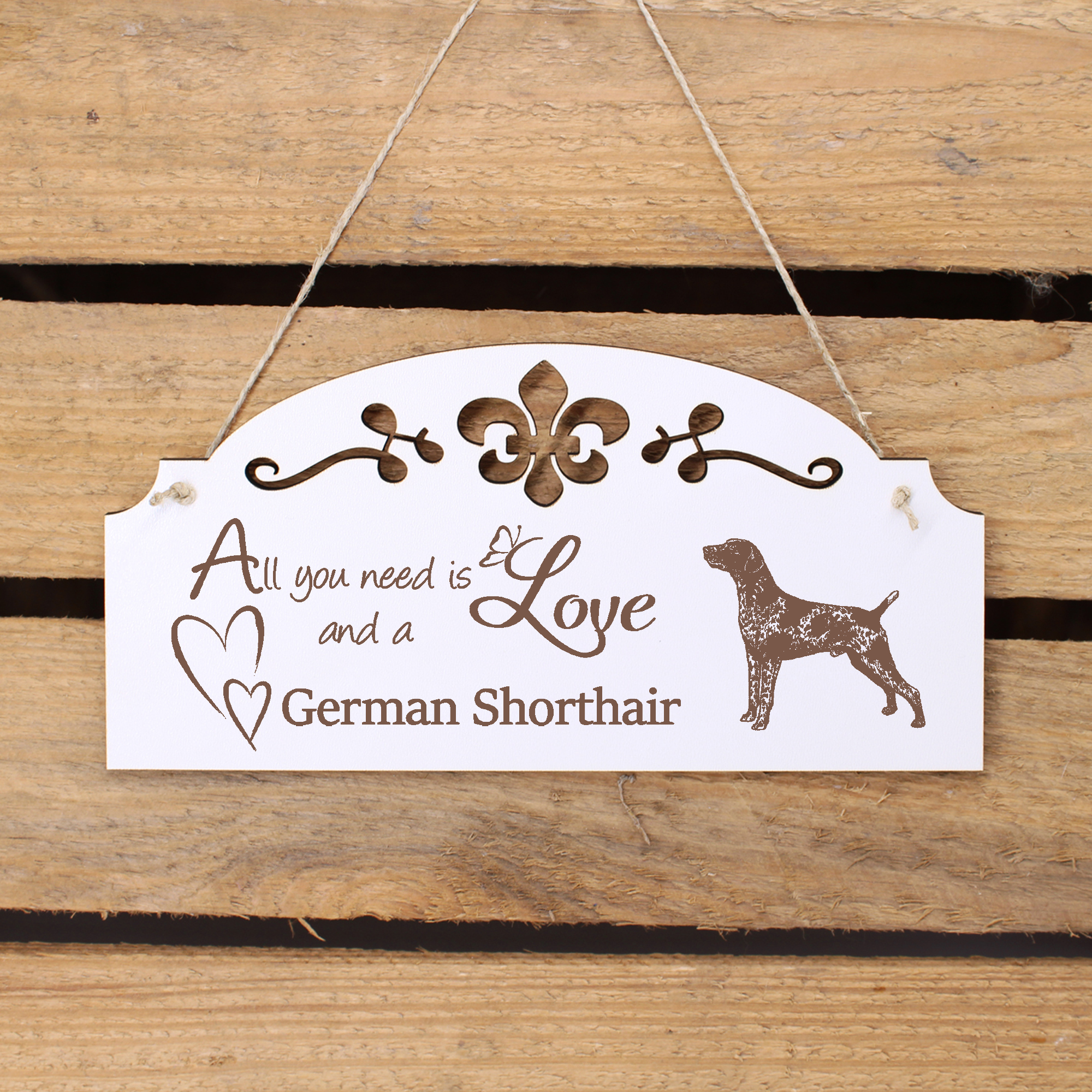 - WANDDEKO: schöne Dekoration im Retro oder Vintage Stil mit dem Spruch - All you need is Love and a German Shorthair - die Türdeko ist nicht nur lustig, sondern auch modern
