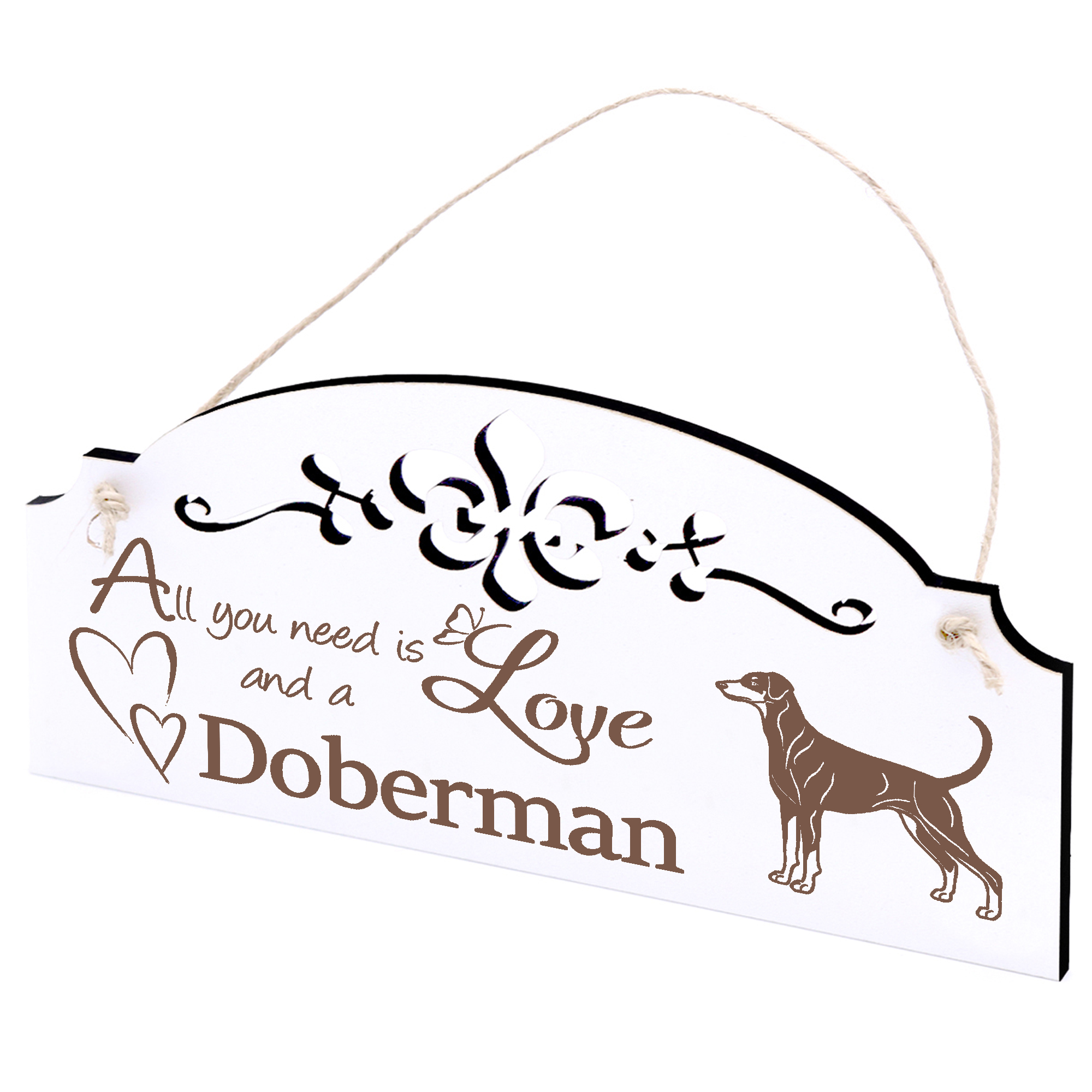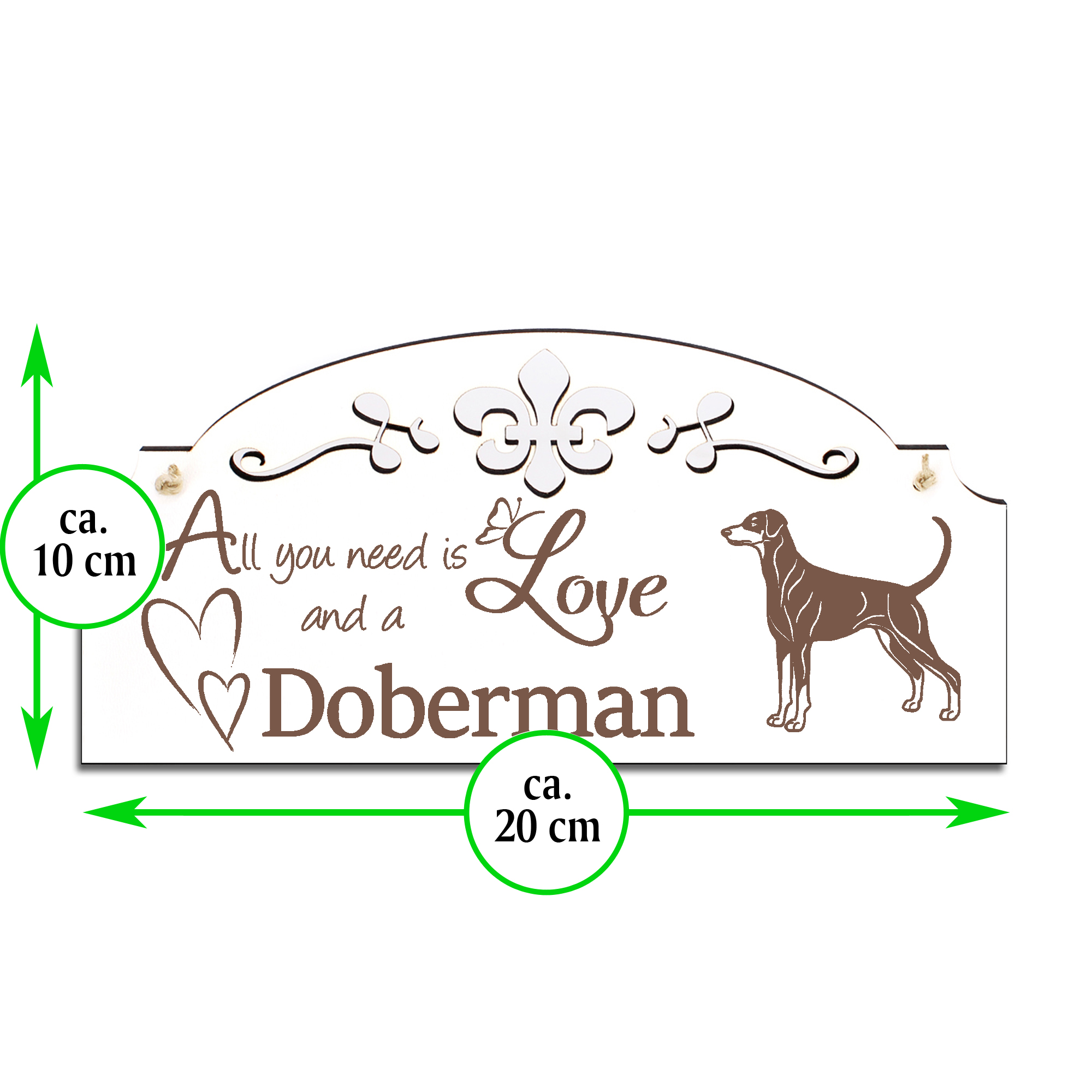 Schild Dobermann Deko 20x10cm - All you need is Love and a Doberman - Holz