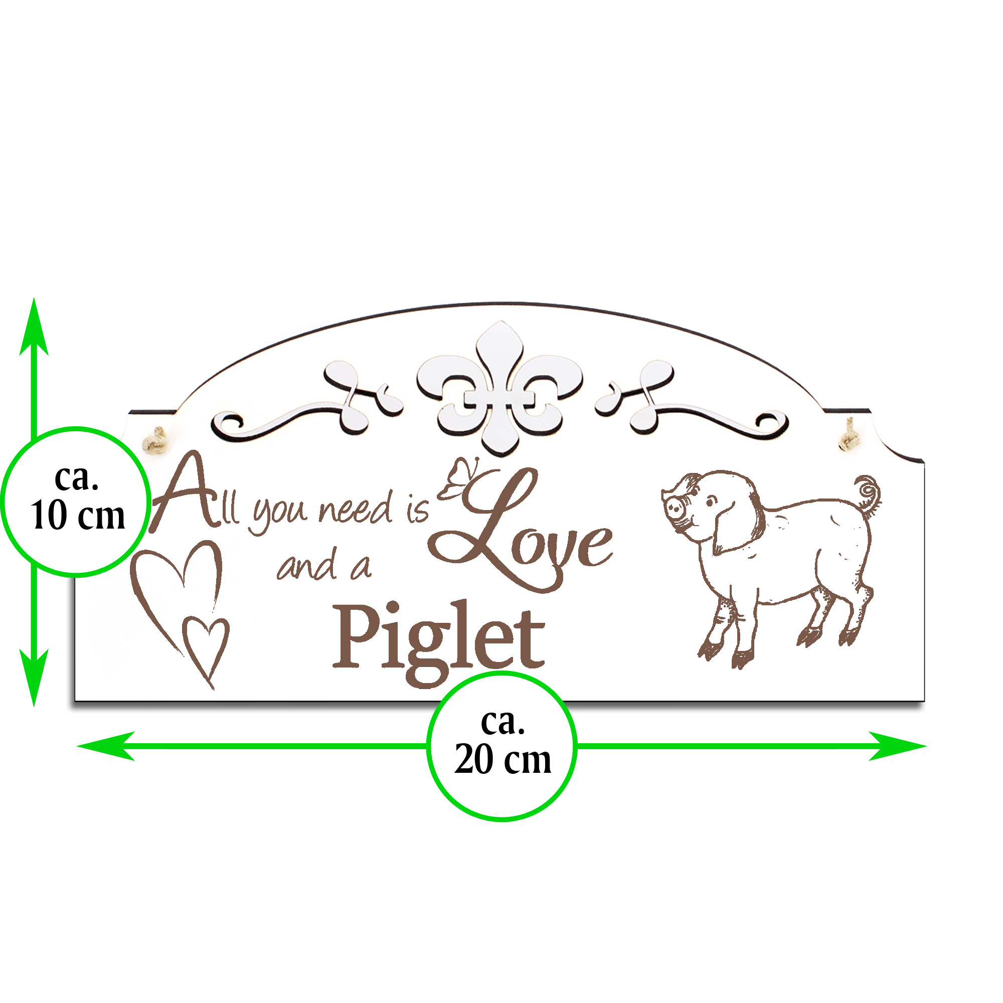 Schild Ferkel Deko 20x10cm - All you need is Love and a Piglet - Holz