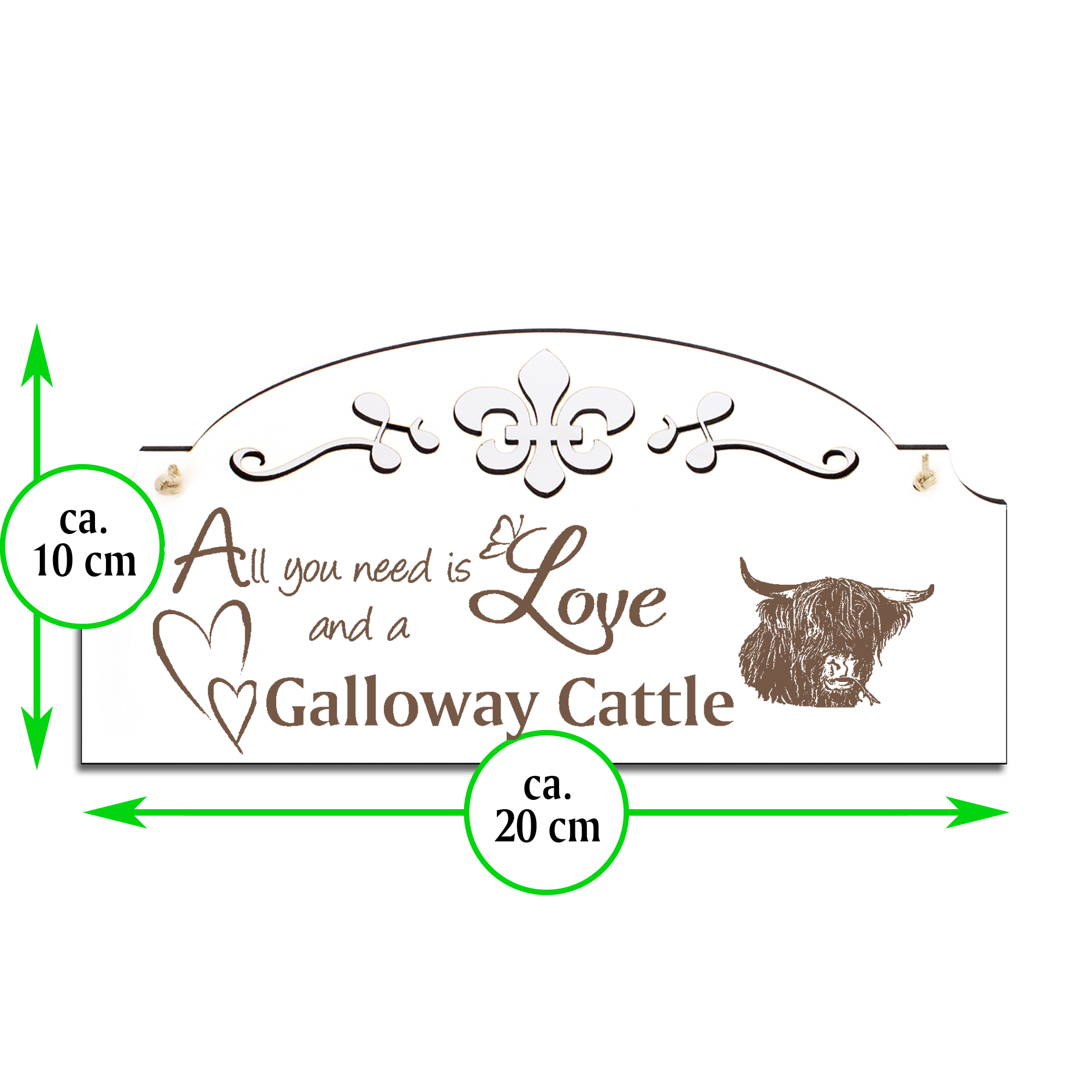 Schild Galloway Rind Deko 20x10cm - All you need is Love and a Galloway Cattle - Holz