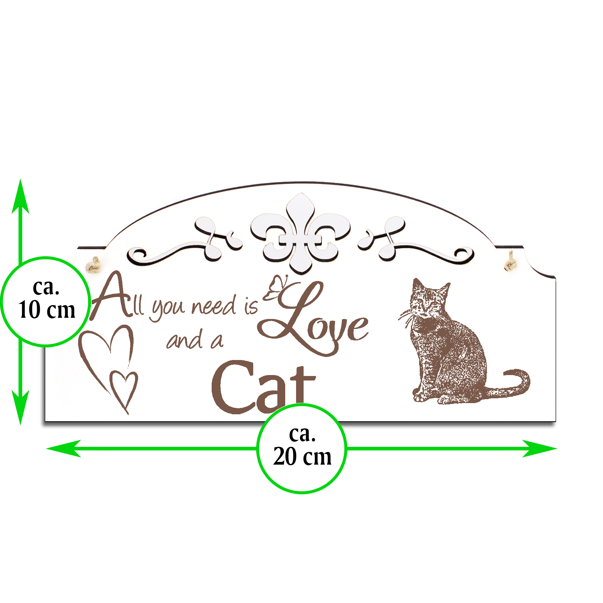 Schild Hauskatze Deko 20x10cm - All you need is Love and a Cat - Holz