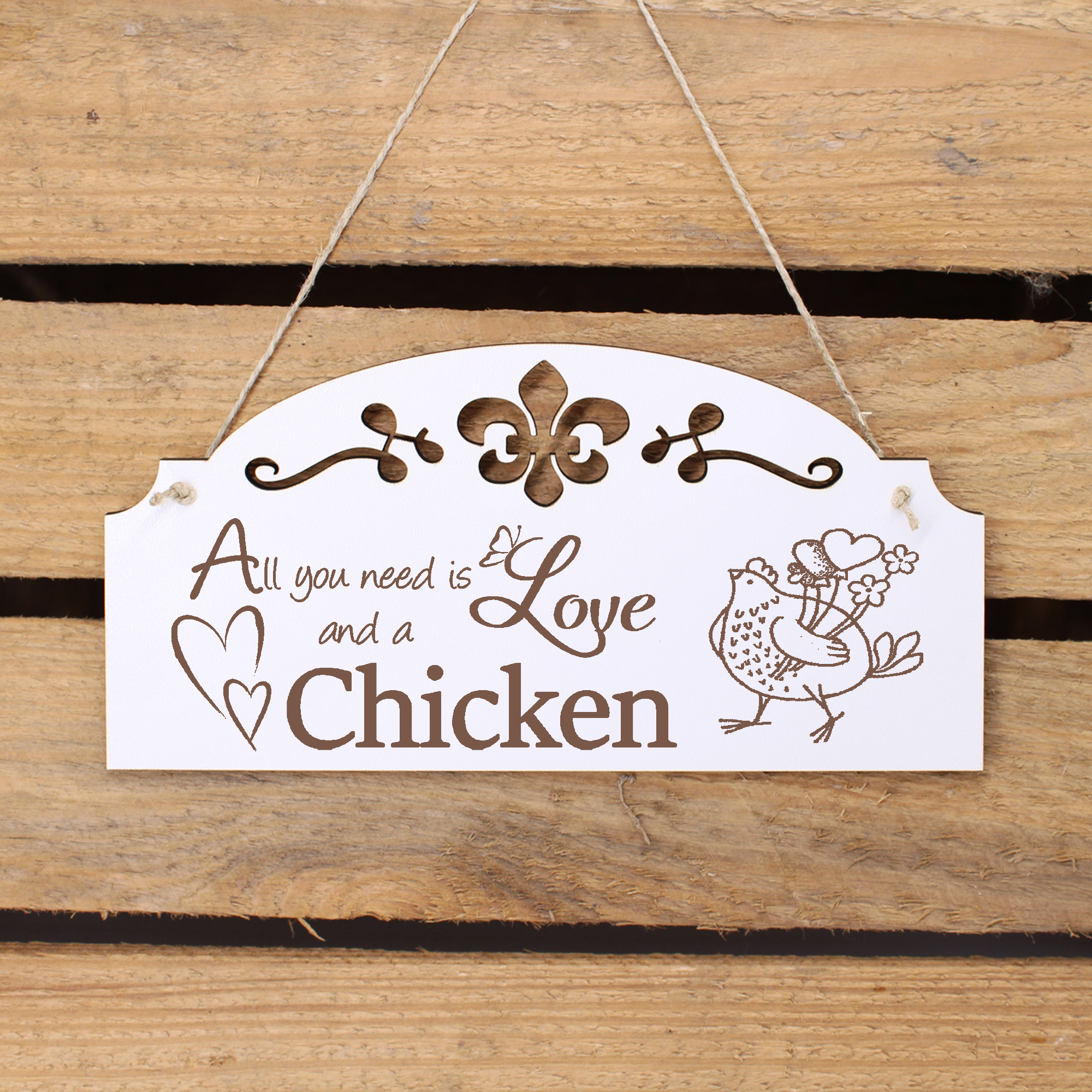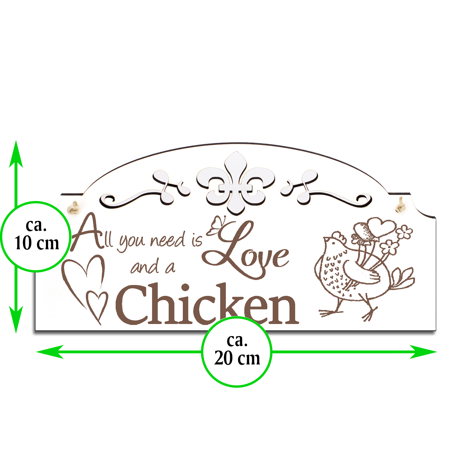 Schild Henne mit Herzen Deko 20x10cm - All you need is Love and a Chicken - Holz