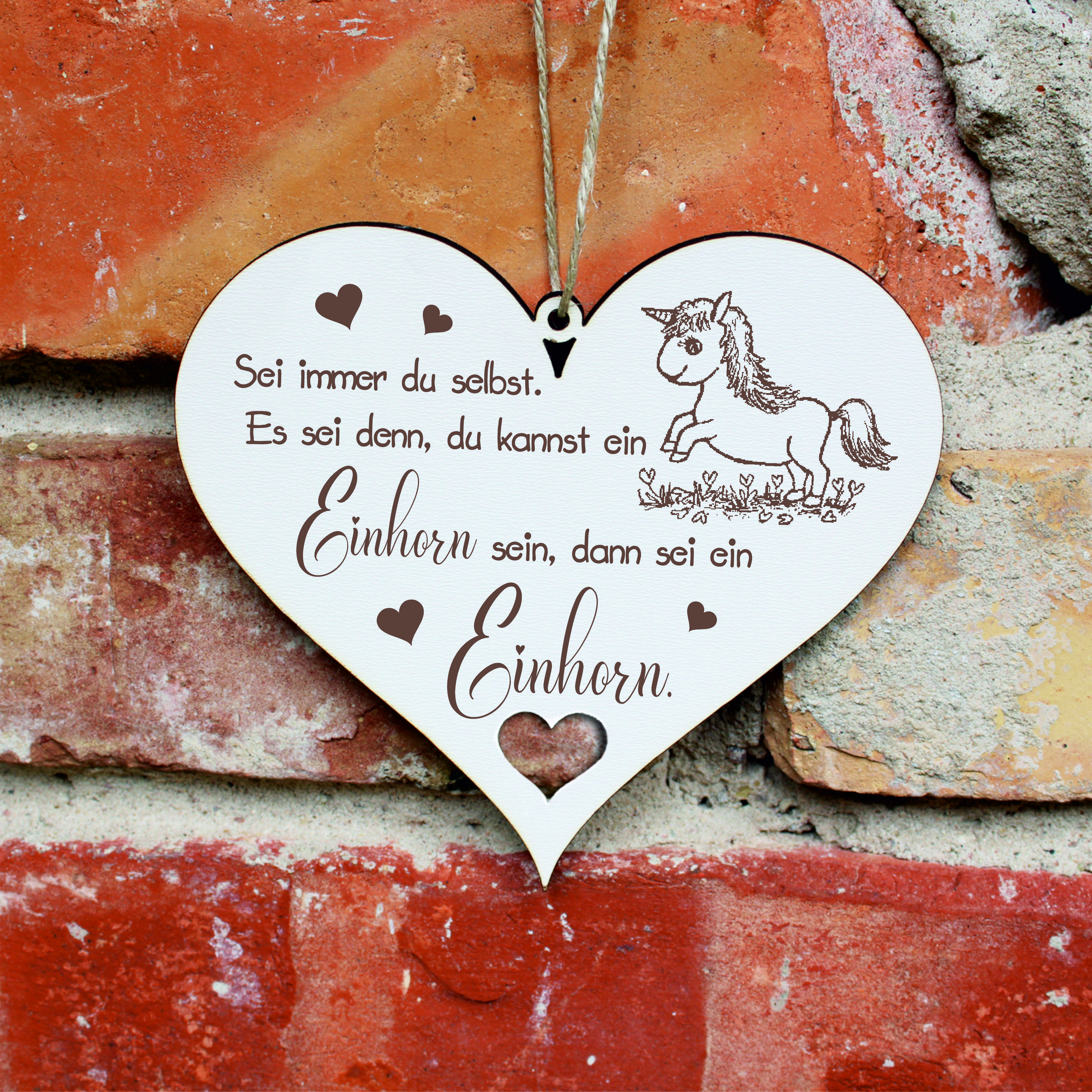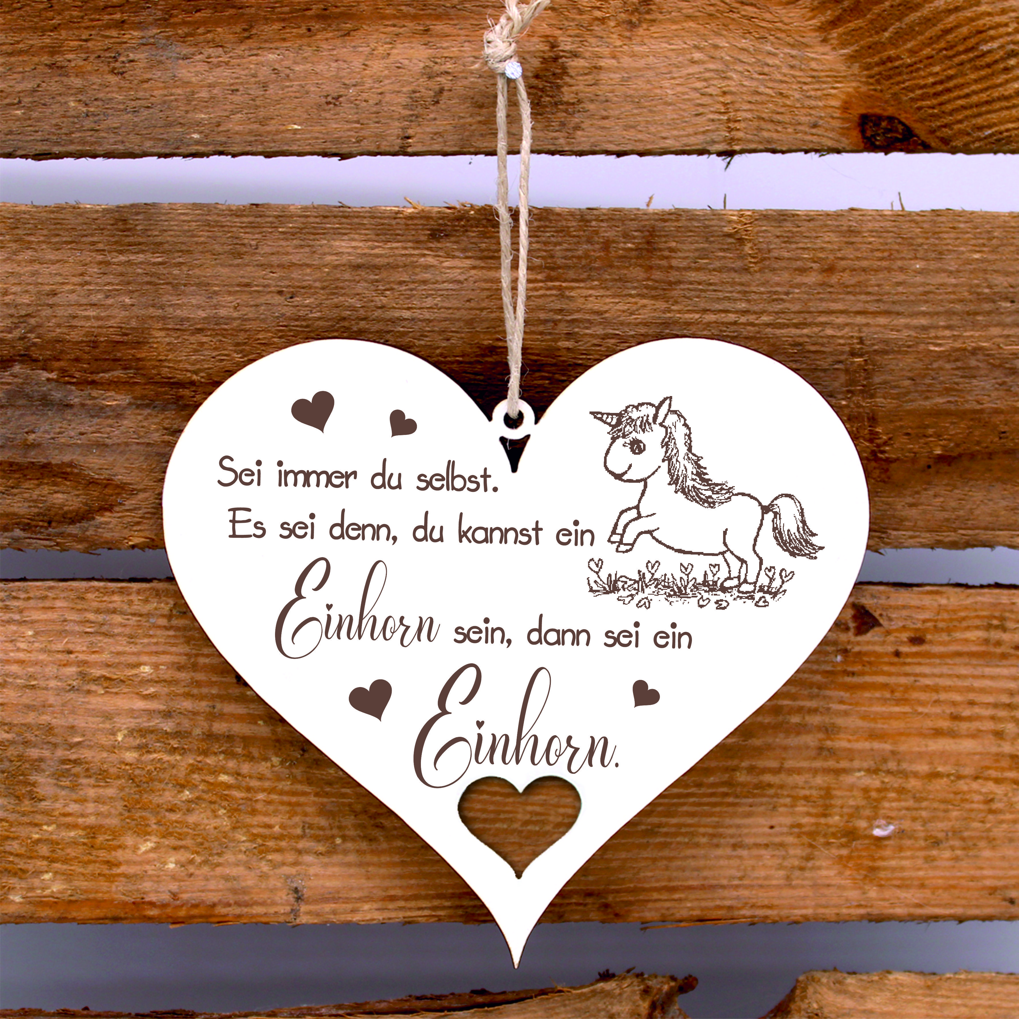Schild Herz Holz Spruch - Sei immer du selbst. Es sei denn, du kannst ein Einhorn sein - 20 x 18 cm