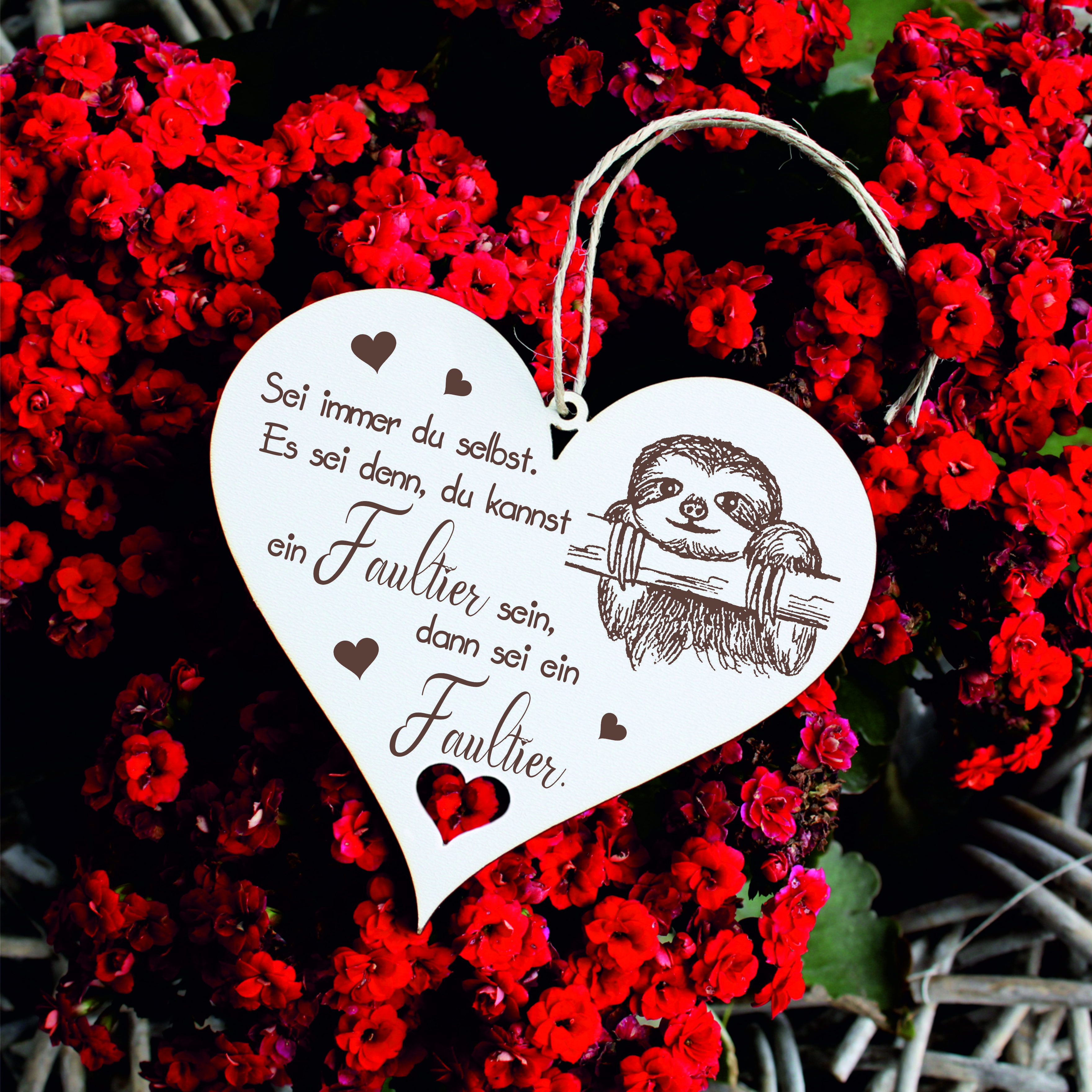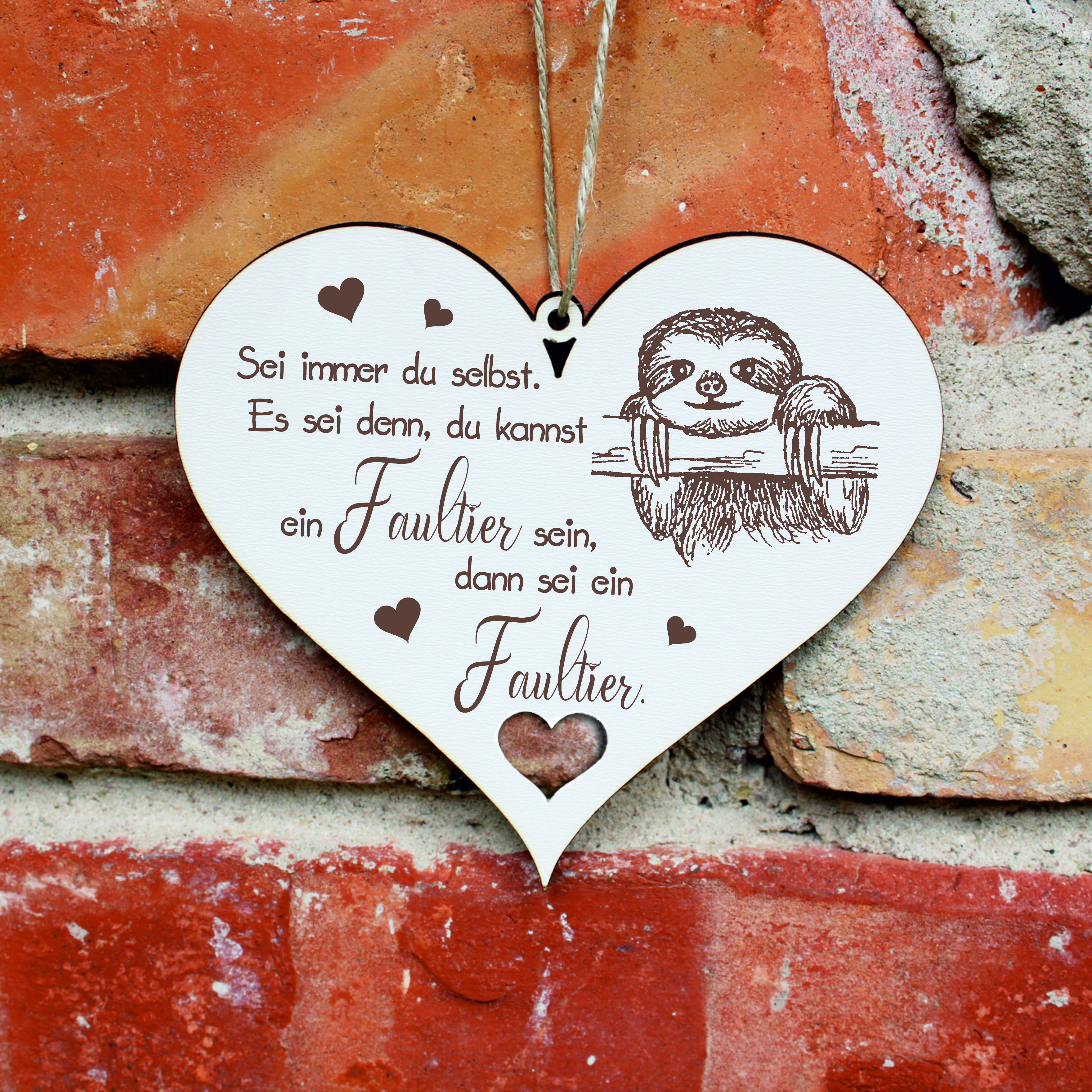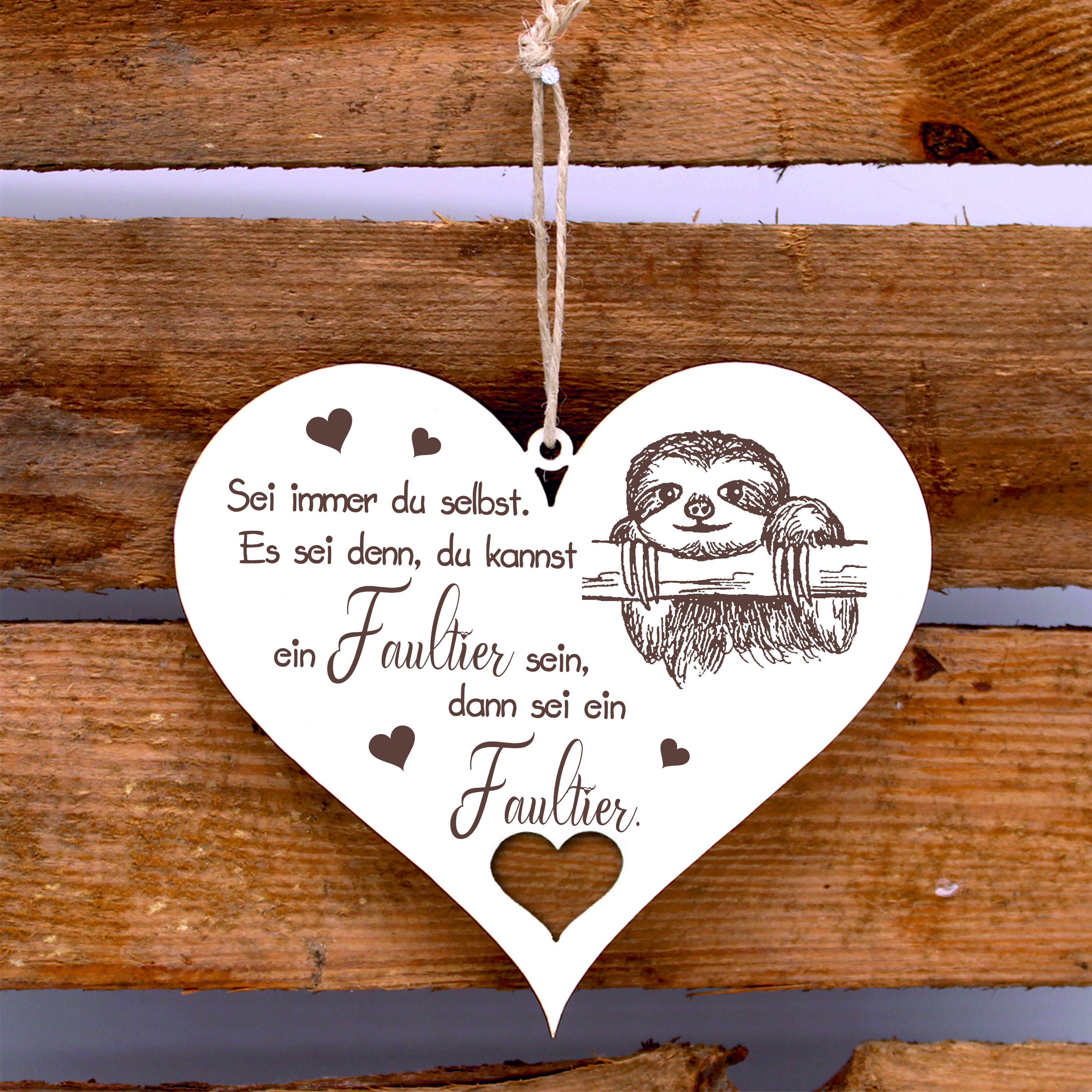 Schild Herz Holz Spruch - Sei immer du selbst. Es sei denn, du kannst ein Faultier sein - 20x18cm