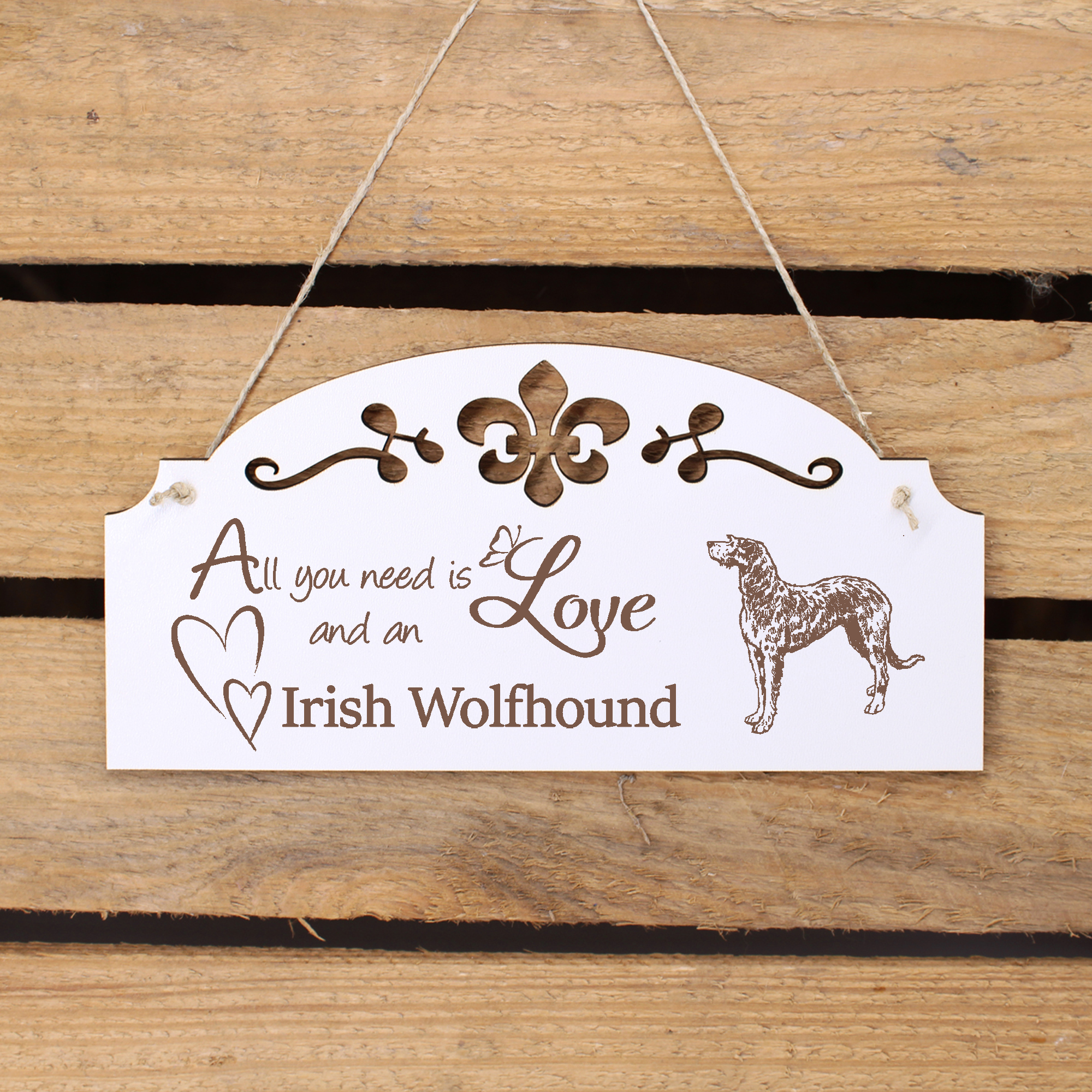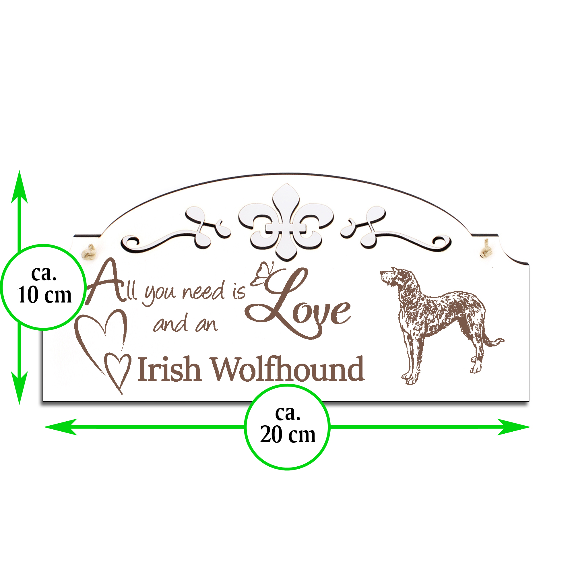 Schild Irischer Wolfshund Deko 20x10cm - All you need is Love and an Irish Wolfhound - Holz